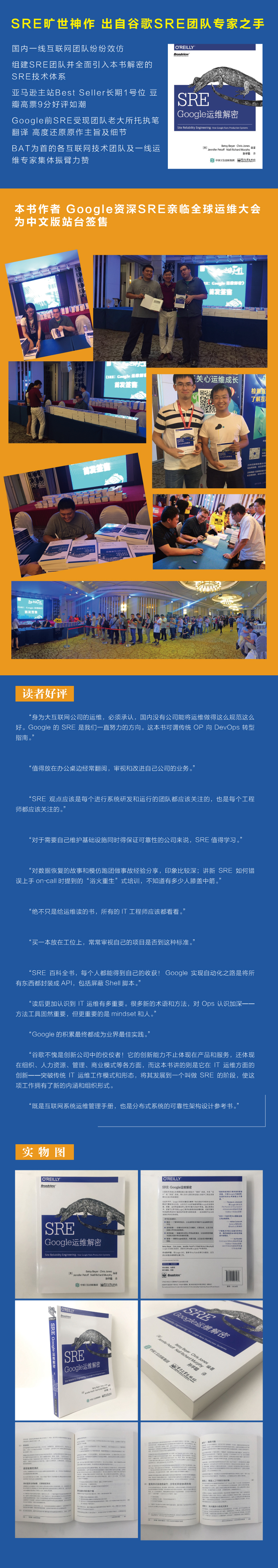 Besty Beyer 是Google 纽约负责SRE 的一名技术文档作家。她之前曾为遍布全球的Google 数据中心与Mountain View 硬件运维团队编写文档。在搬到纽约之前,Betsy 是Stanford 技术性写作课程的讲师。她曾经学习国际关系与英文文学,并在Stanford 和Tulane 获得学历。Chris Jones 是Google App Engine 的一名SRE。Google App Engine 是一个PaaS 服务,每天处理超过280 亿个请求。他的办公室在旧金山,他之前的工作包括Google 广告统计、数据仓库,以及用户支持系统的维护。在之前,Chris 曾经在学校IT 行业任职,同时参与过竞选数据分析,以及一些BSD 内核的修改。他有计算机工程、经济学,以及技术政策学的学位。同时他也是一名有执照的职业工程师。Jennifer Petoff 是Google SRE 团队的一名项目经理,工作地点在都柏林,爱尔兰。她曾经负责管理大型全球项目,包括:科学研究、工程、人力资源,以及广告等。Jennifer在加入Google 之前,曾在化工行业任职八年。她具有Stanford 大学的化学博士与学士学位,同时她还拥有Rochester 大学的心理学学位。Niall Murphy 是Google 爱尔兰团队广告SRE 的负责人。他拥有20 年互联网行业经验,目前是INEX(爱尔兰网络互联枢纽)的主席。他曾经写作以及参与写作很多科技文章与书籍,包括O’Reilly 出版的IPv6 Network Administration,以及很多RFC。他目前在参与书写爱尔兰互联网发展史。他拥有计算机科学、数学,以及诗歌学的学历(他当时一定是想错了!)。他目前与妻子和两个儿子居住在都柏林。