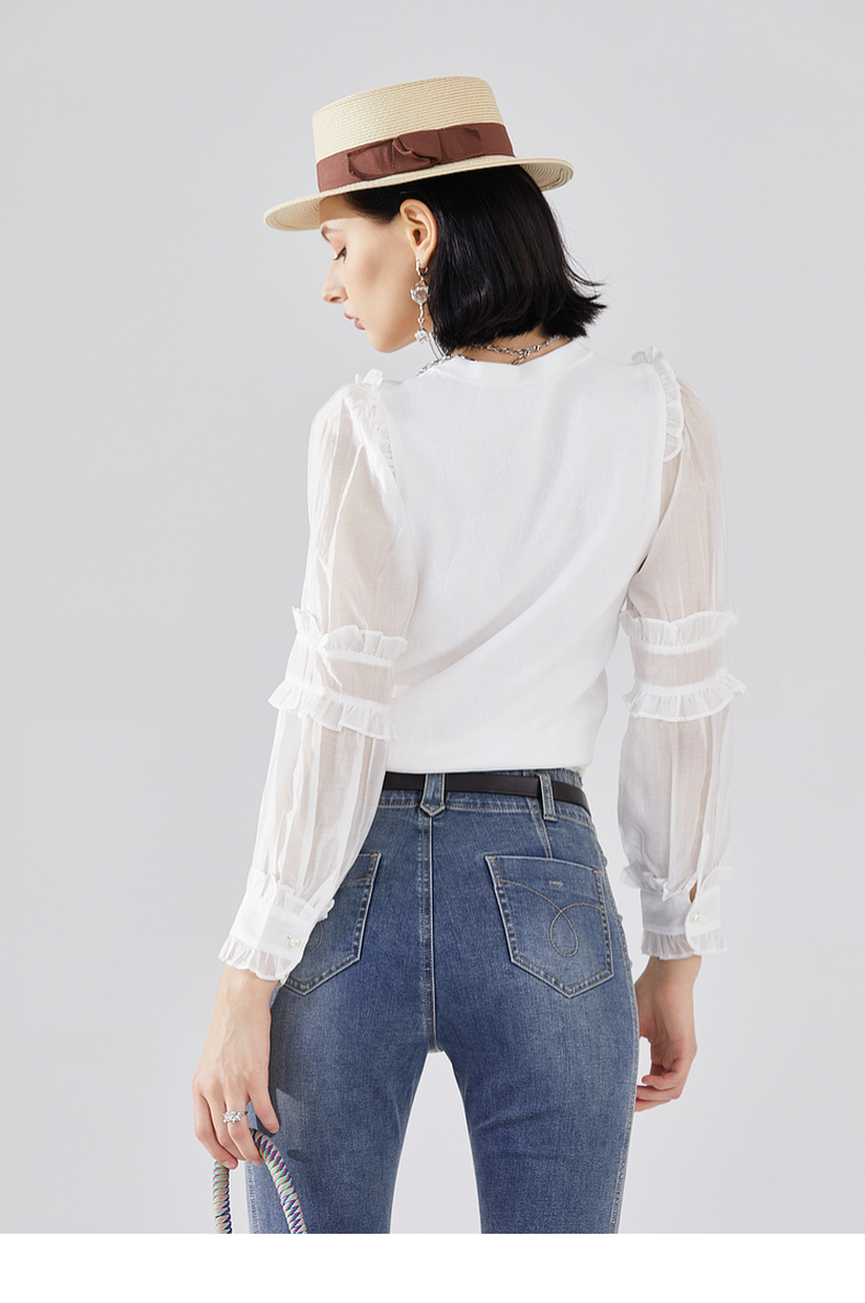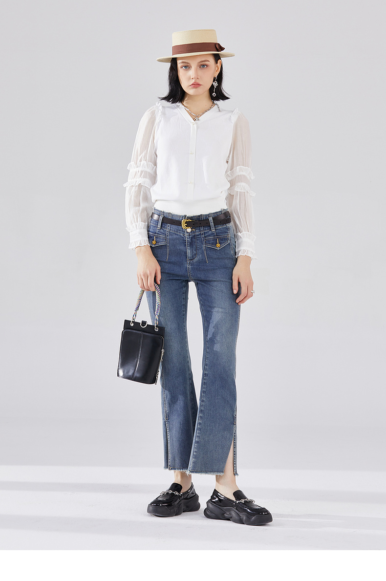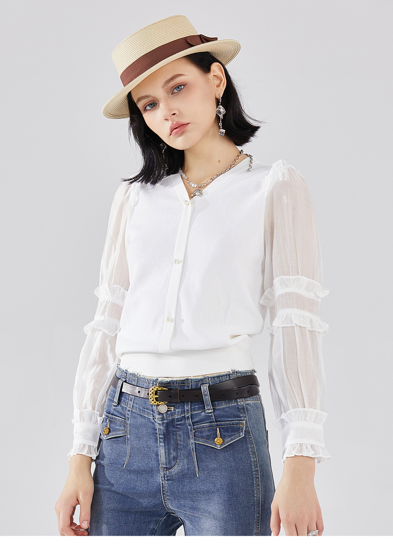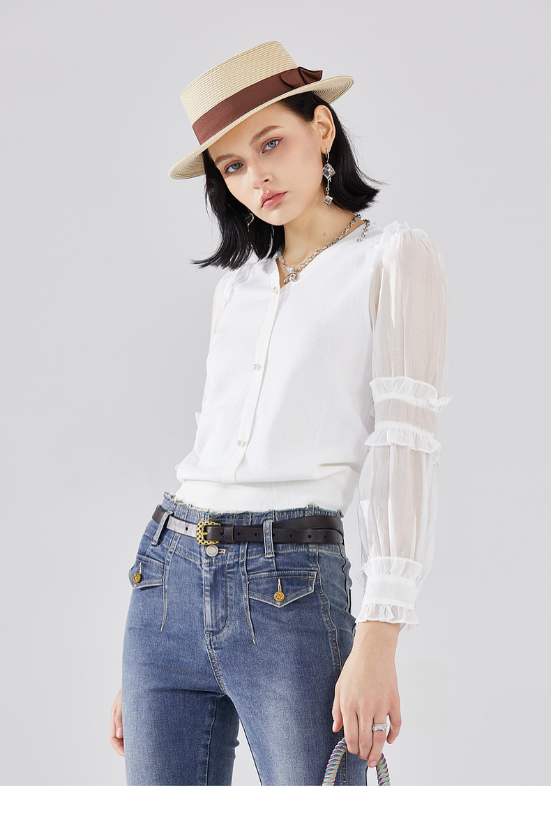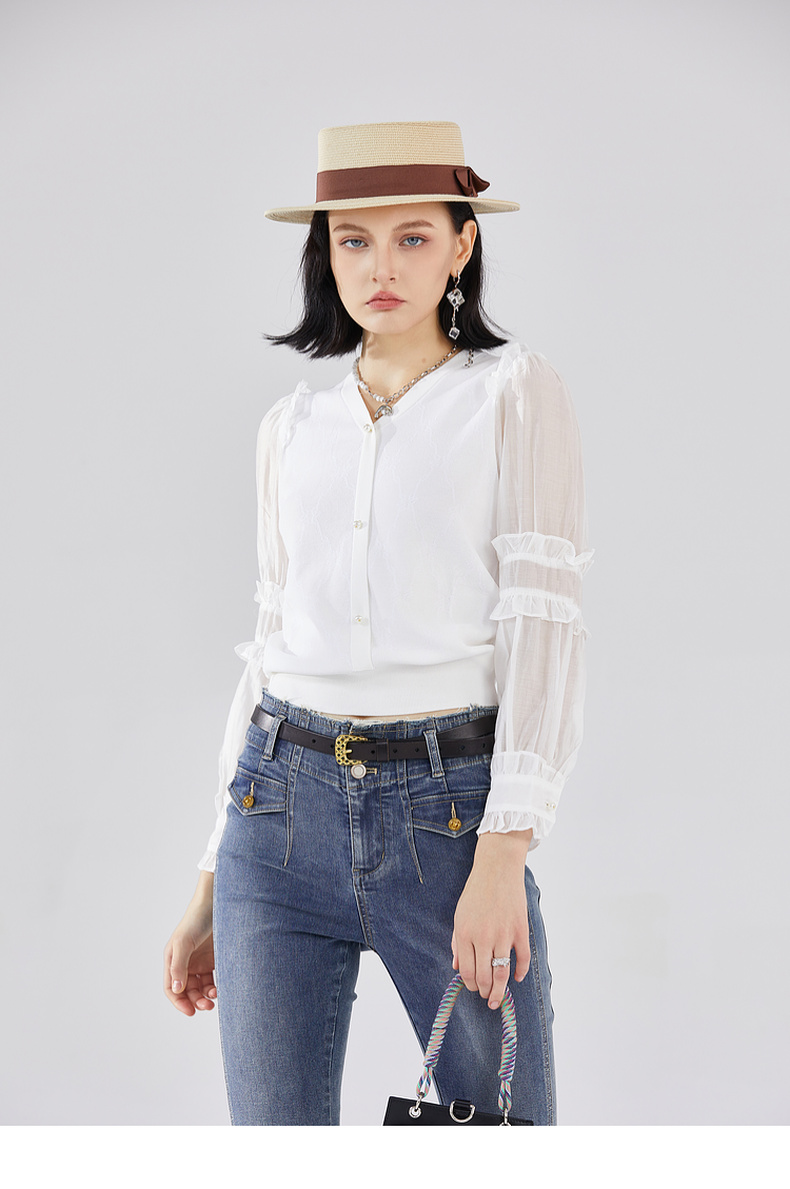 谜底拼接套头针织衫女2023秋款小香风短款修身百搭毛衫233MZ1282