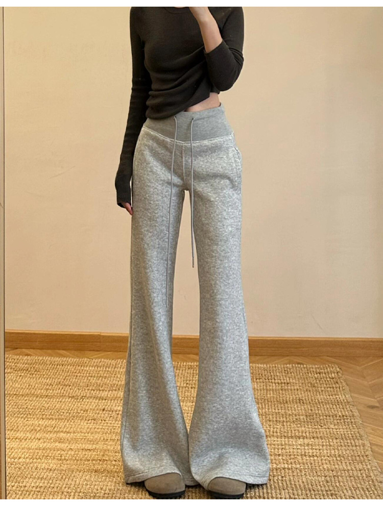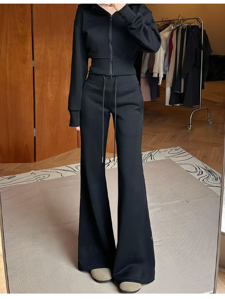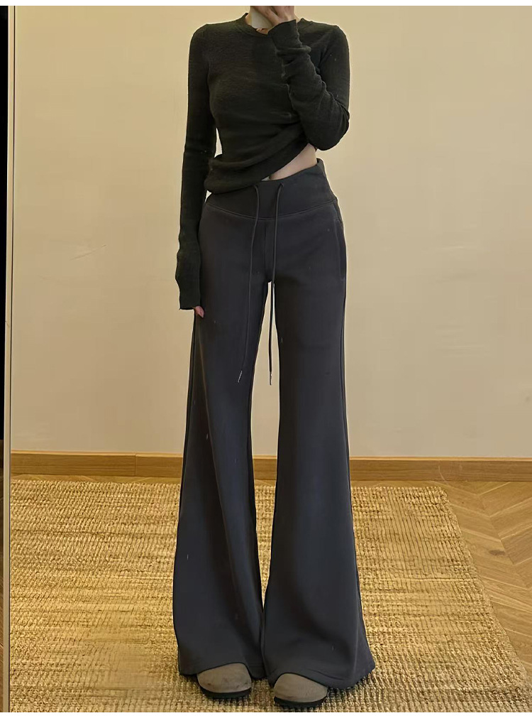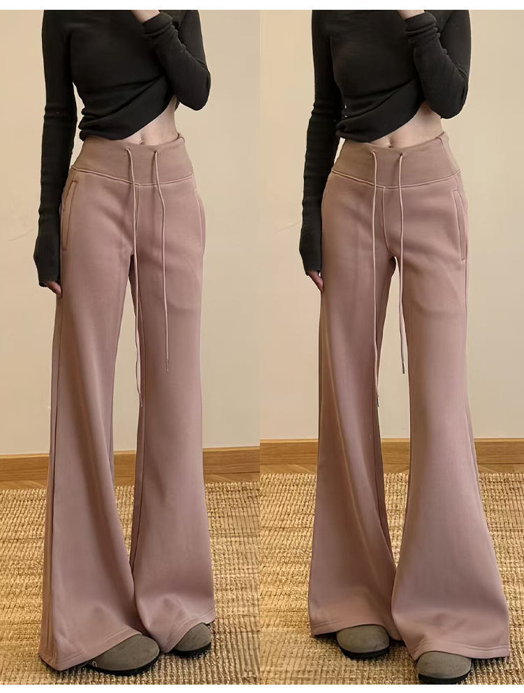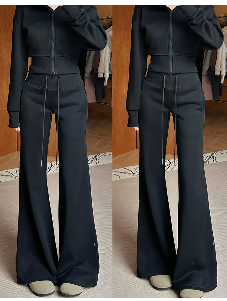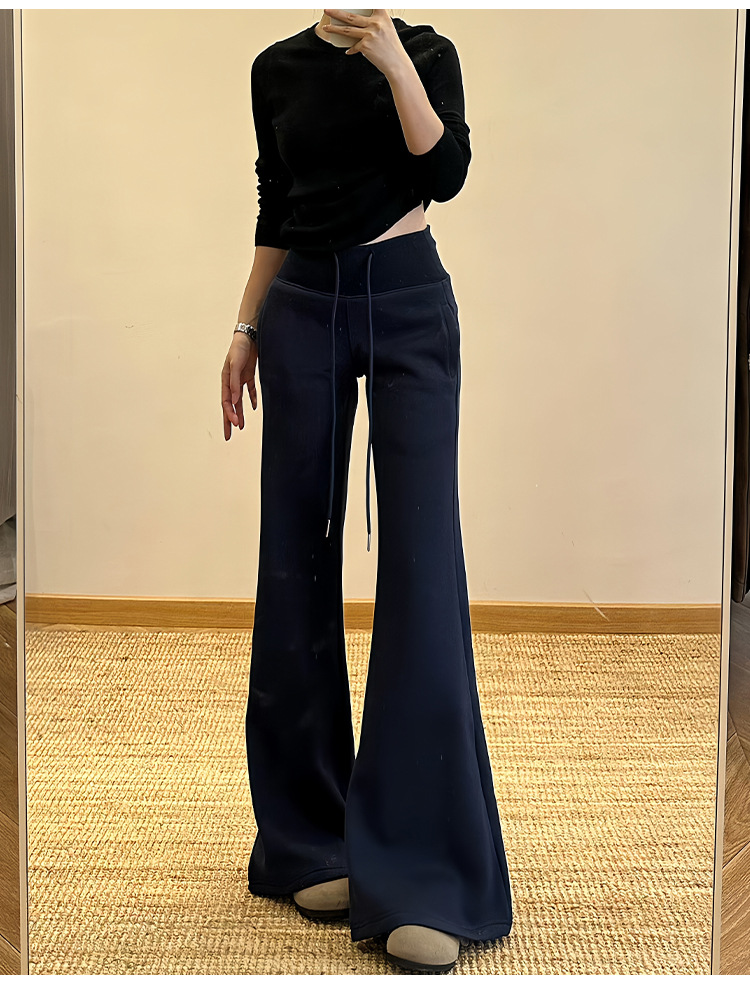 加绒lulu喇叭运动裤女2025秋新款高腰显瘦修身垂感小个子微喇卫裤