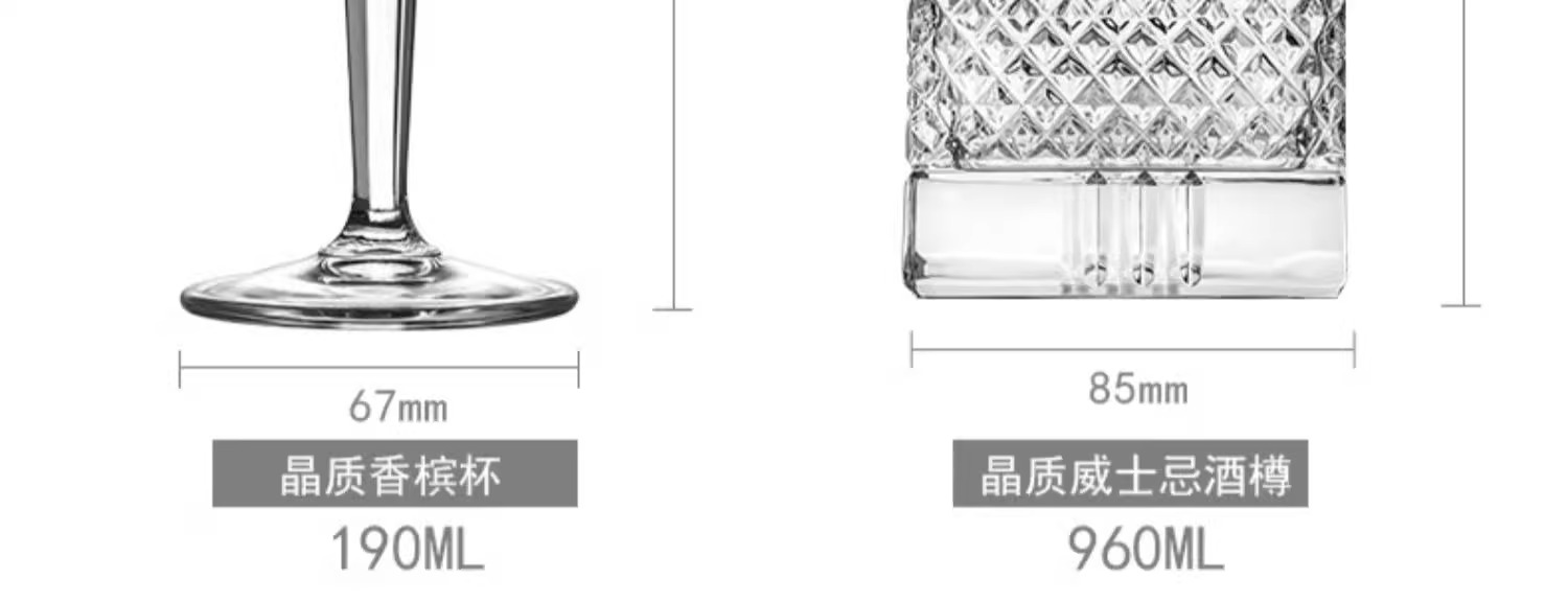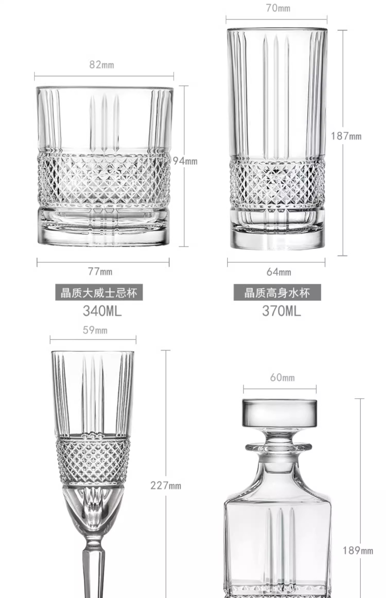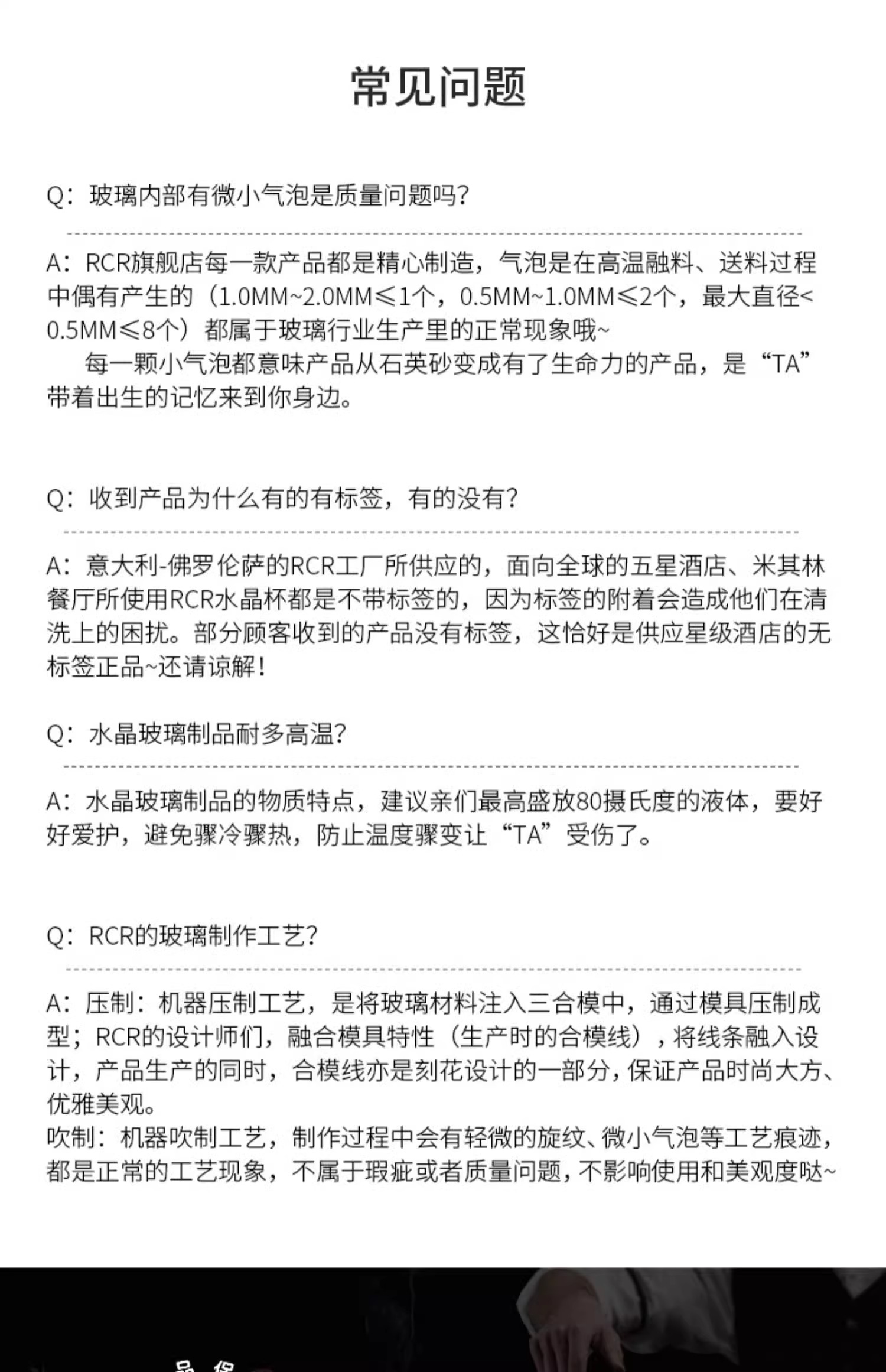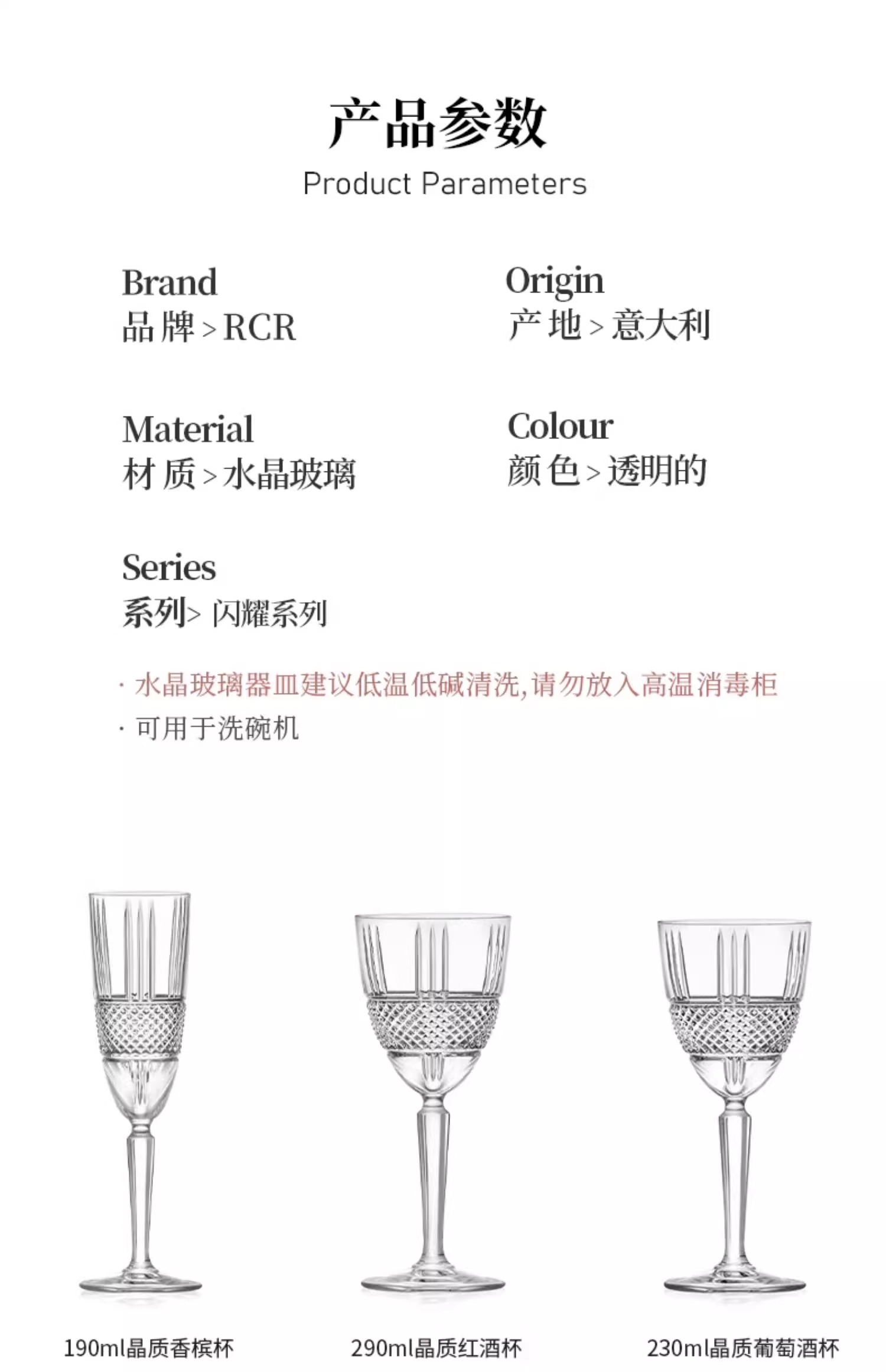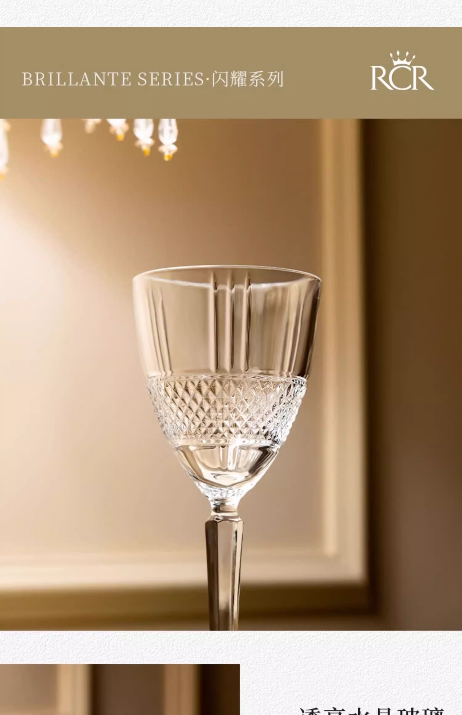 rcr水晶玻璃红酒杯高脚杯起泡酒香槟杯奢华葡萄酒杯家用结婚礼物闪耀威士忌/水杯通用6只装