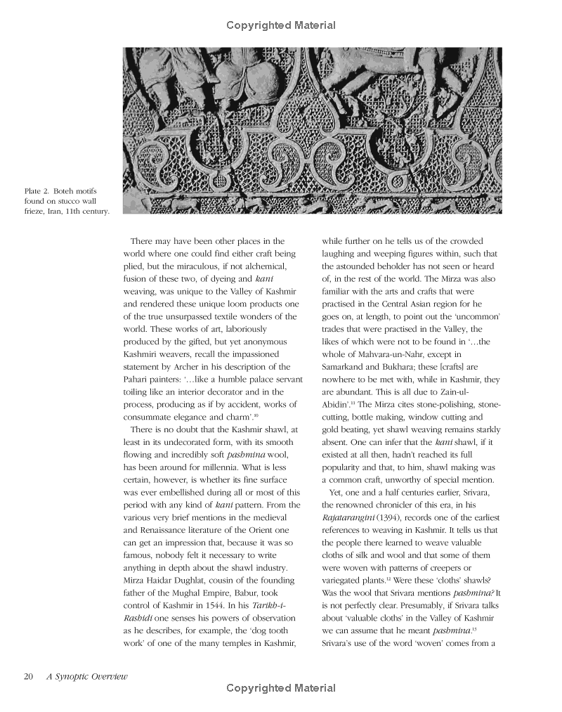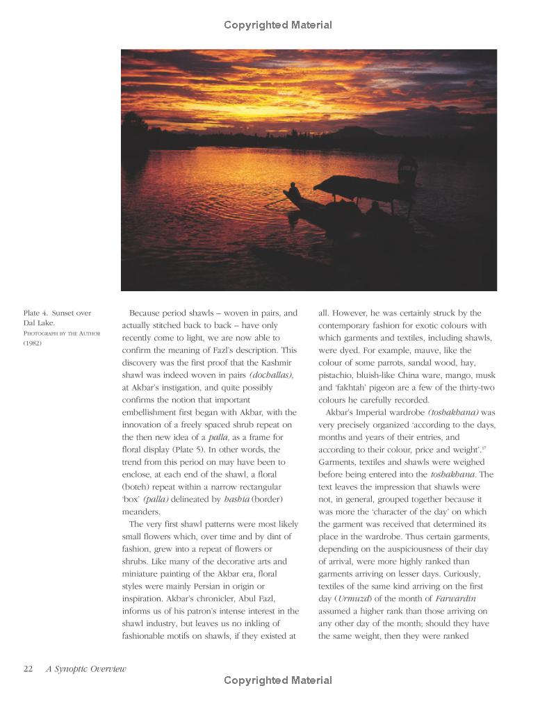 虽然有很多关于克什米尔披肩的书籍和文章,涵盖了它的历史和制造,但到目前为止,很少有关于披肩风格演变的最重要历史时期的书籍。本书正是基于作者30年来参与克什米尔披肩的最好和最罕见的设计,通过探索印度北部和山国的微型绘画,克什米尔手稿,斯里阿迪格兰特和贾纳姆萨基斯的锡克教圣经,以及世界收藏品中独特披肩的插图,埃姆斯以他一贯的爱好描述了这些定义锡克教时期的神秘图案的性质和来源。此外,纺织爱好者将在专门介绍莫卧儿时期,漆画和印度 - 波斯披肩影响和贸易的章节中发现新材料。
