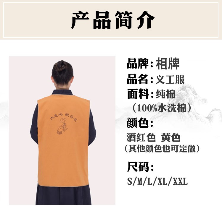 【相牌】定制订做寺院全棉义工服 20件起订 寺庙工作服小马甲