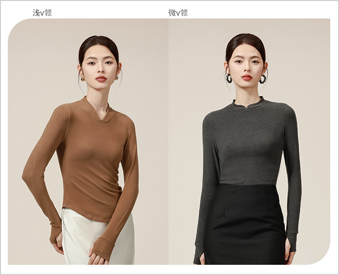 而且是有两种领口:一个是微V领;另一个是浅V领。