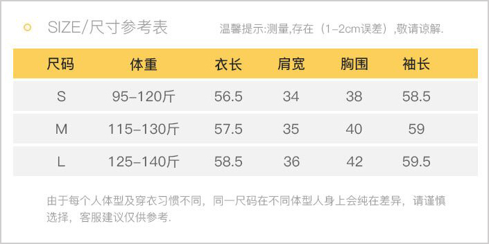 这里简单放下其他几个款式的上身图和尺码表,方便大家挑选哈: