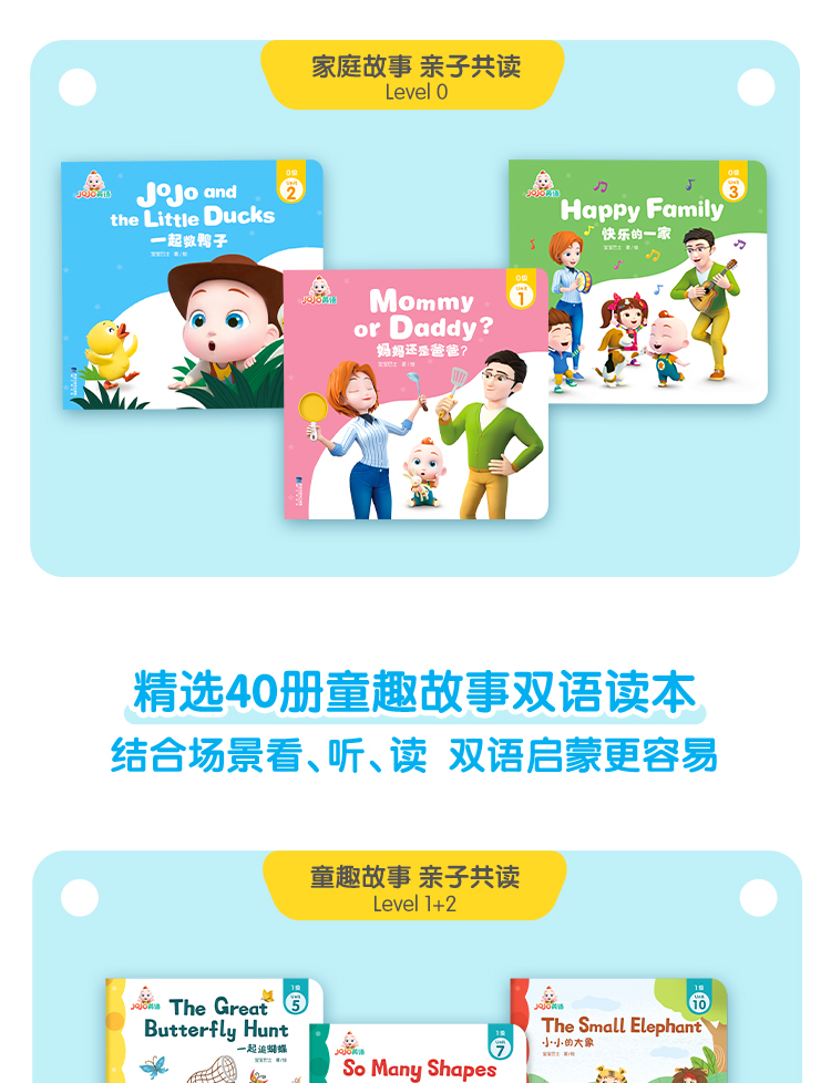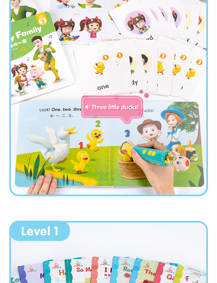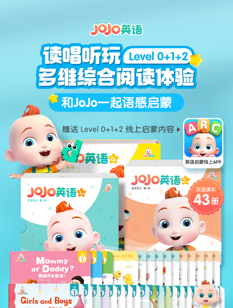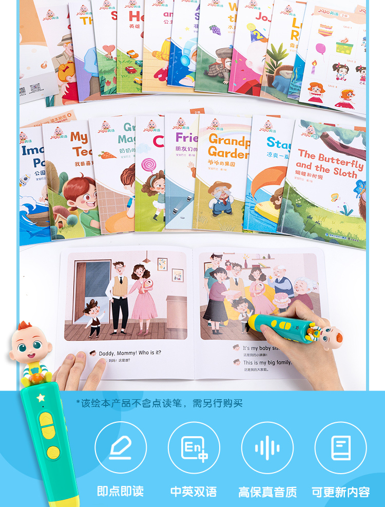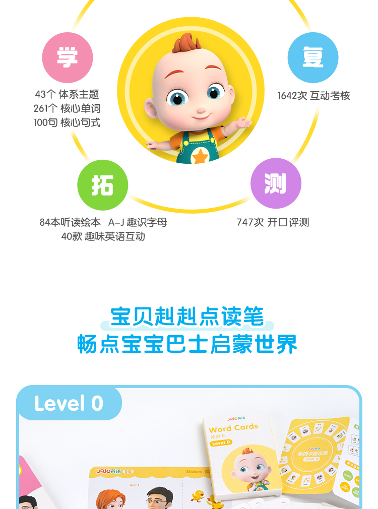 【JoJo英语】1-6岁英语启蒙全家桶 WiFi版G4点读笔+英语L0-2+英文唱玩大书+卡片机+字母卡+赳赳毛绒背包