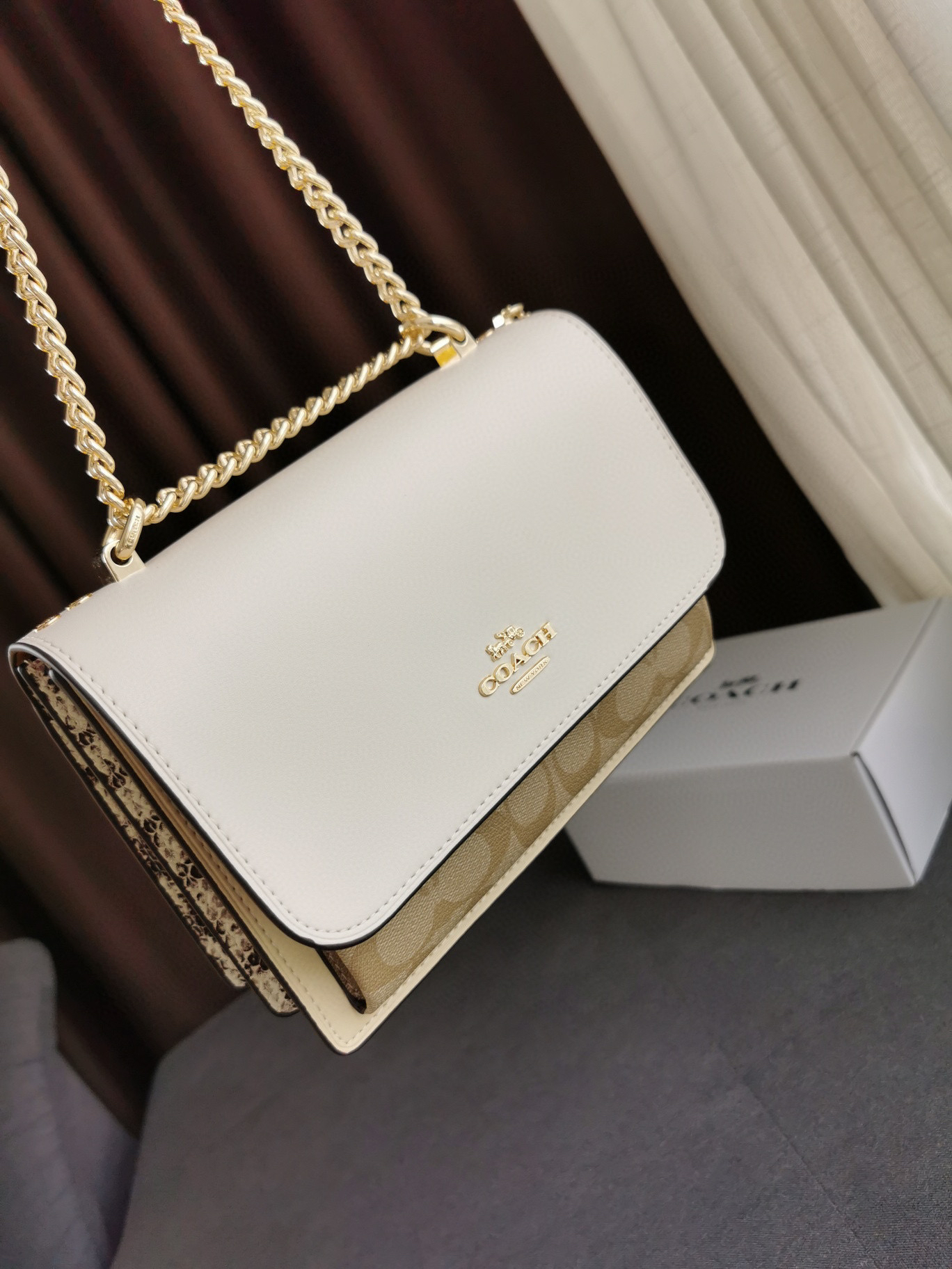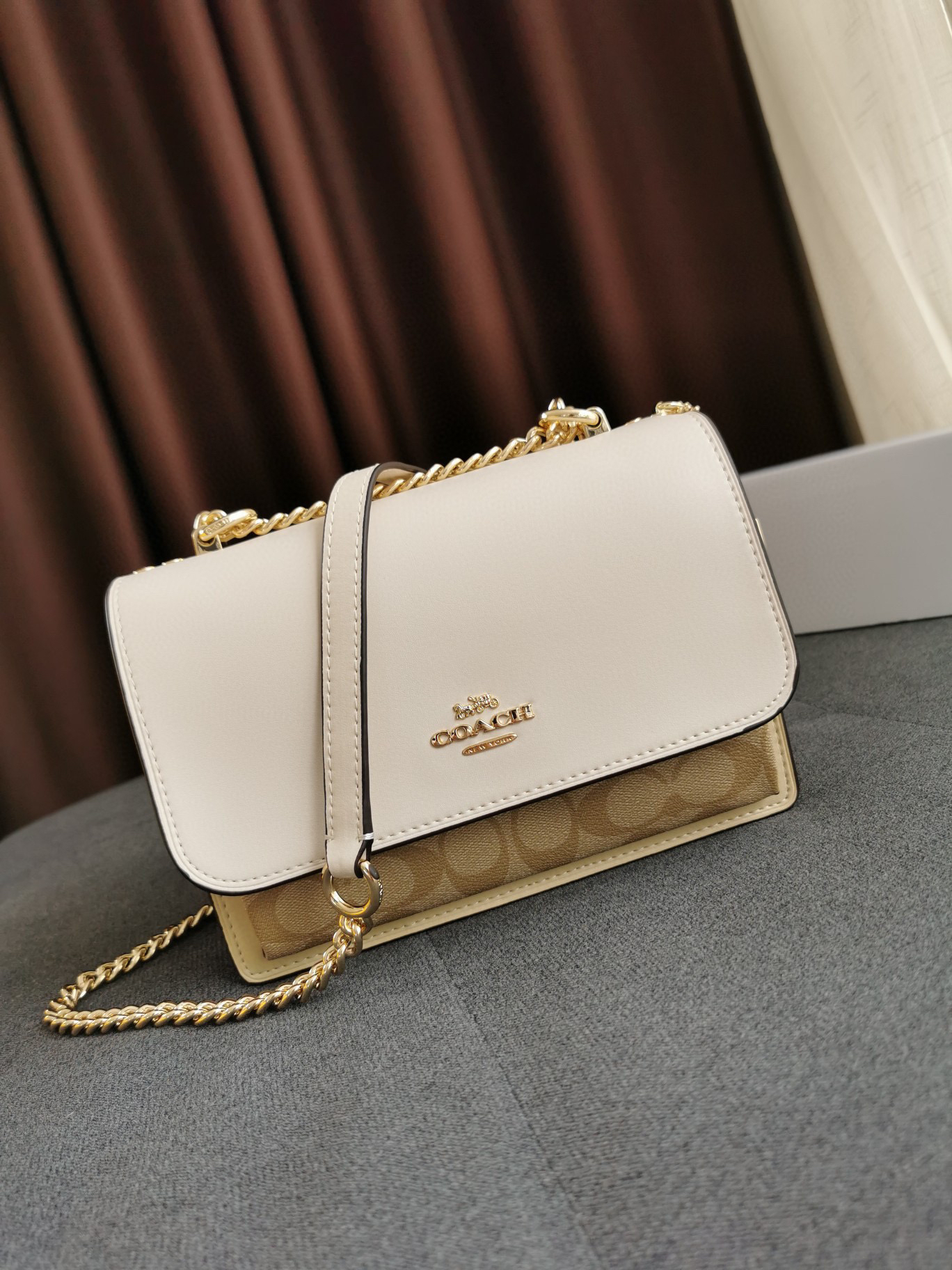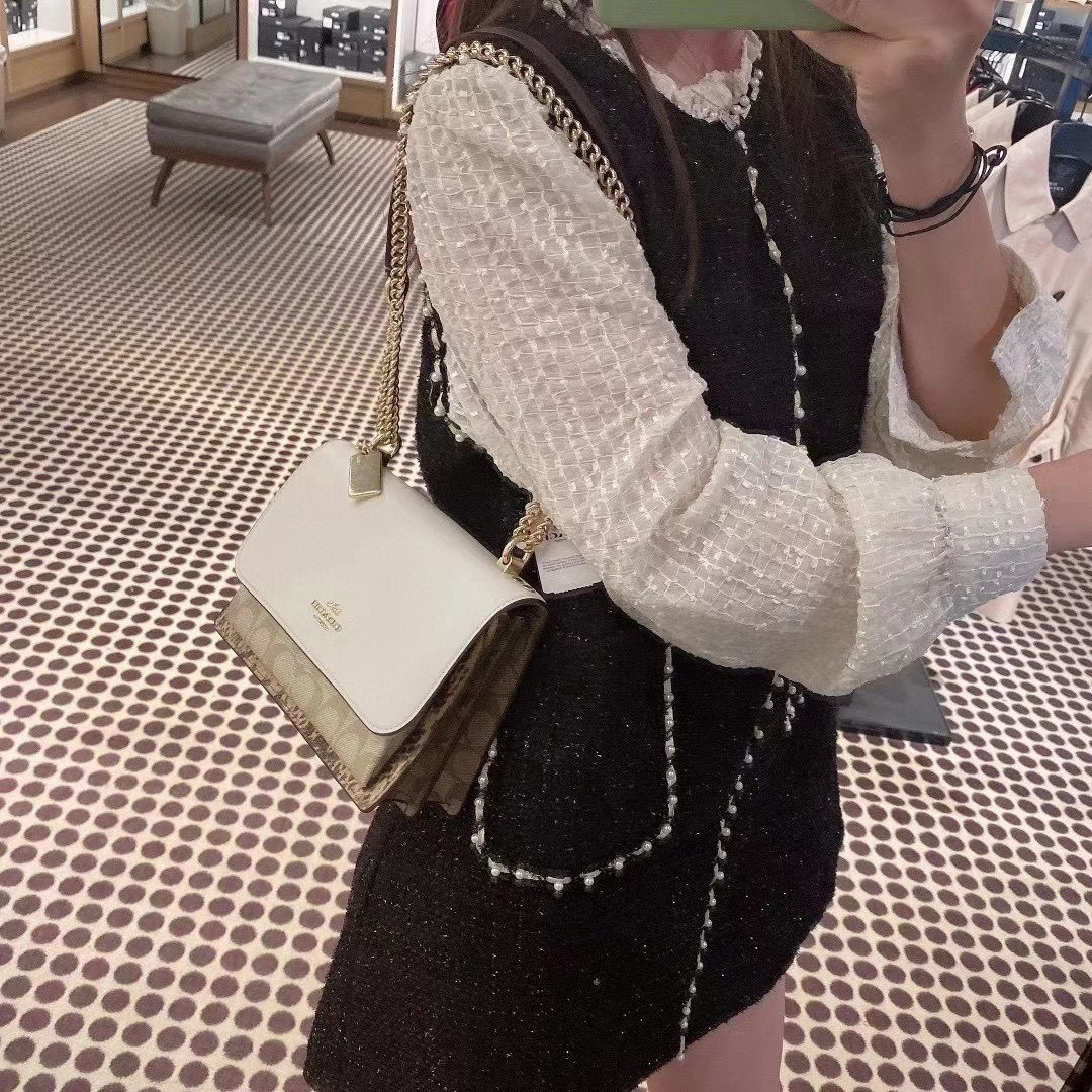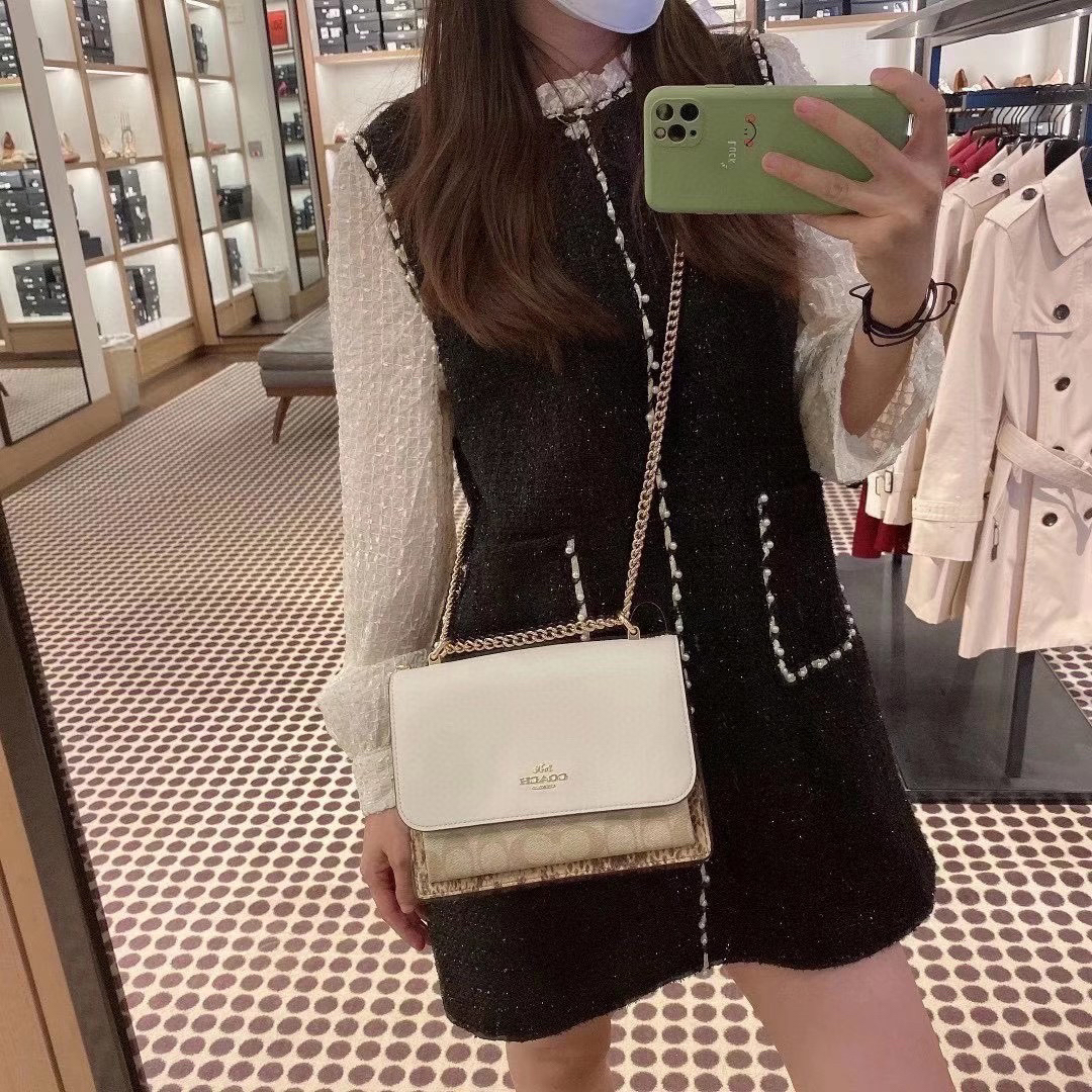 细节实拍/白色Coach Klare风琴包
