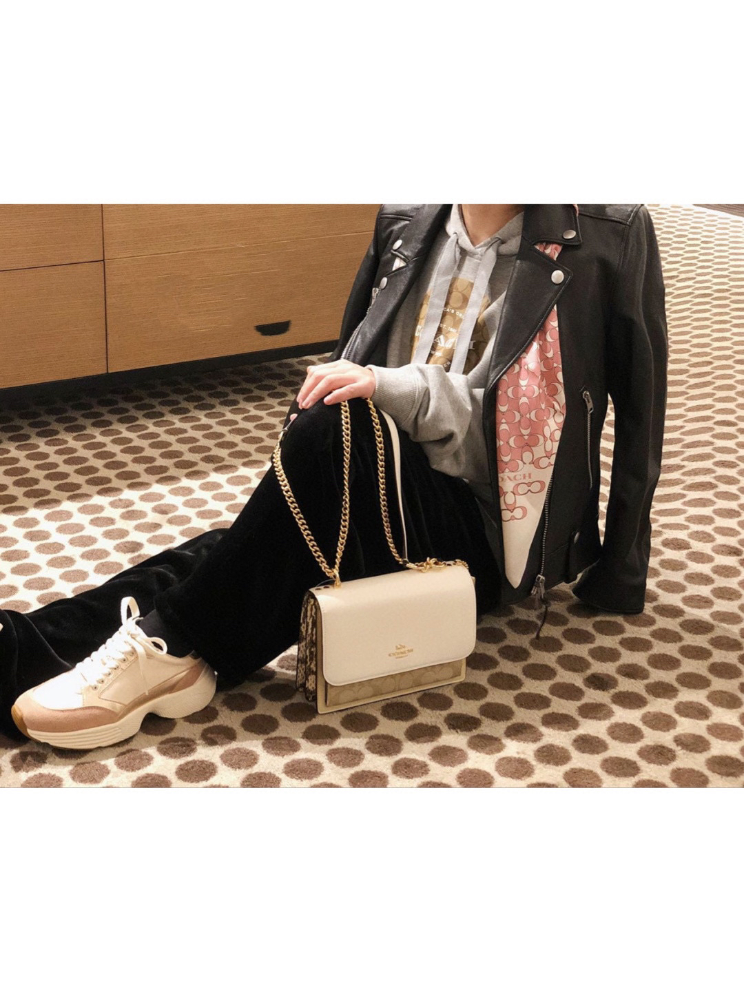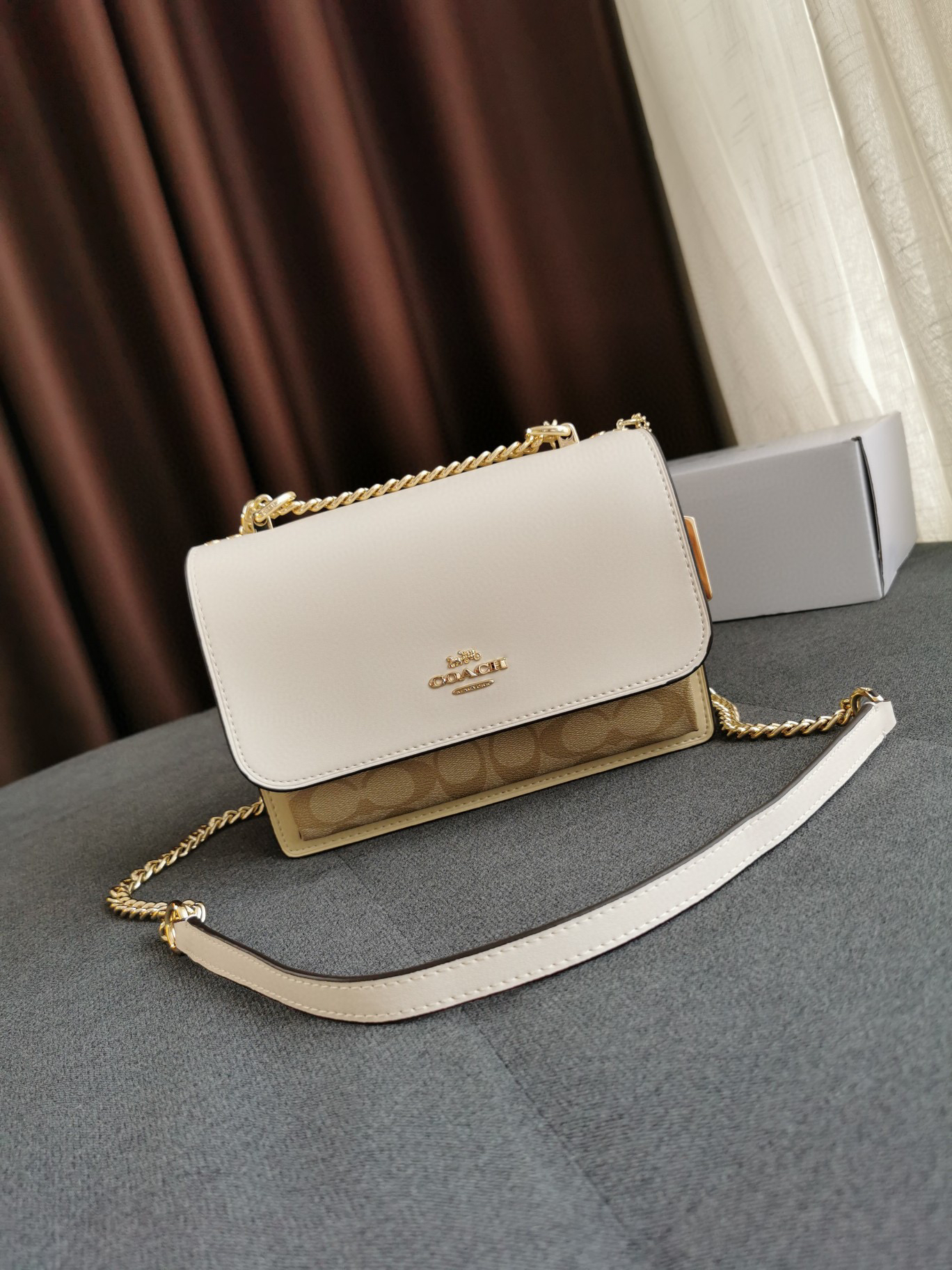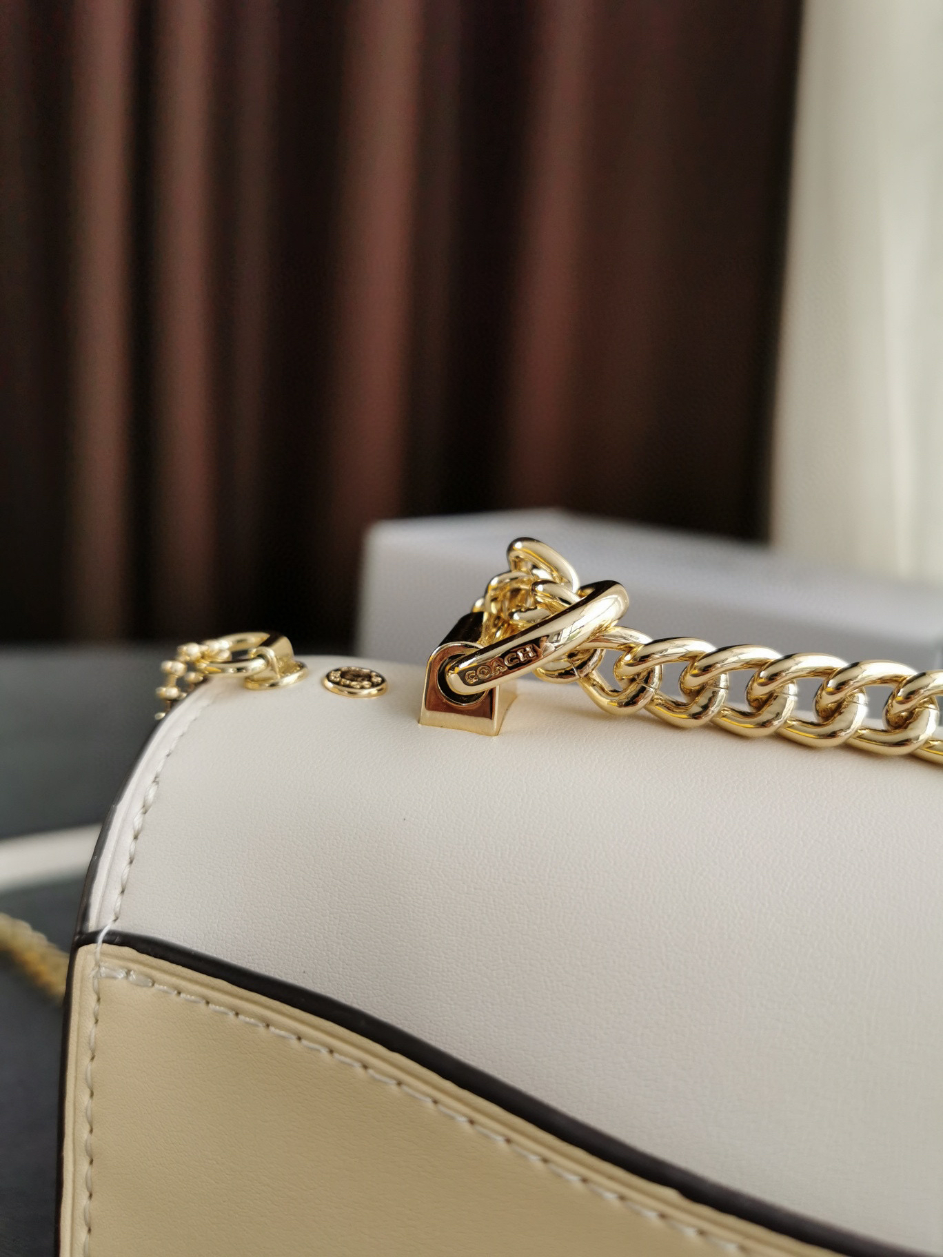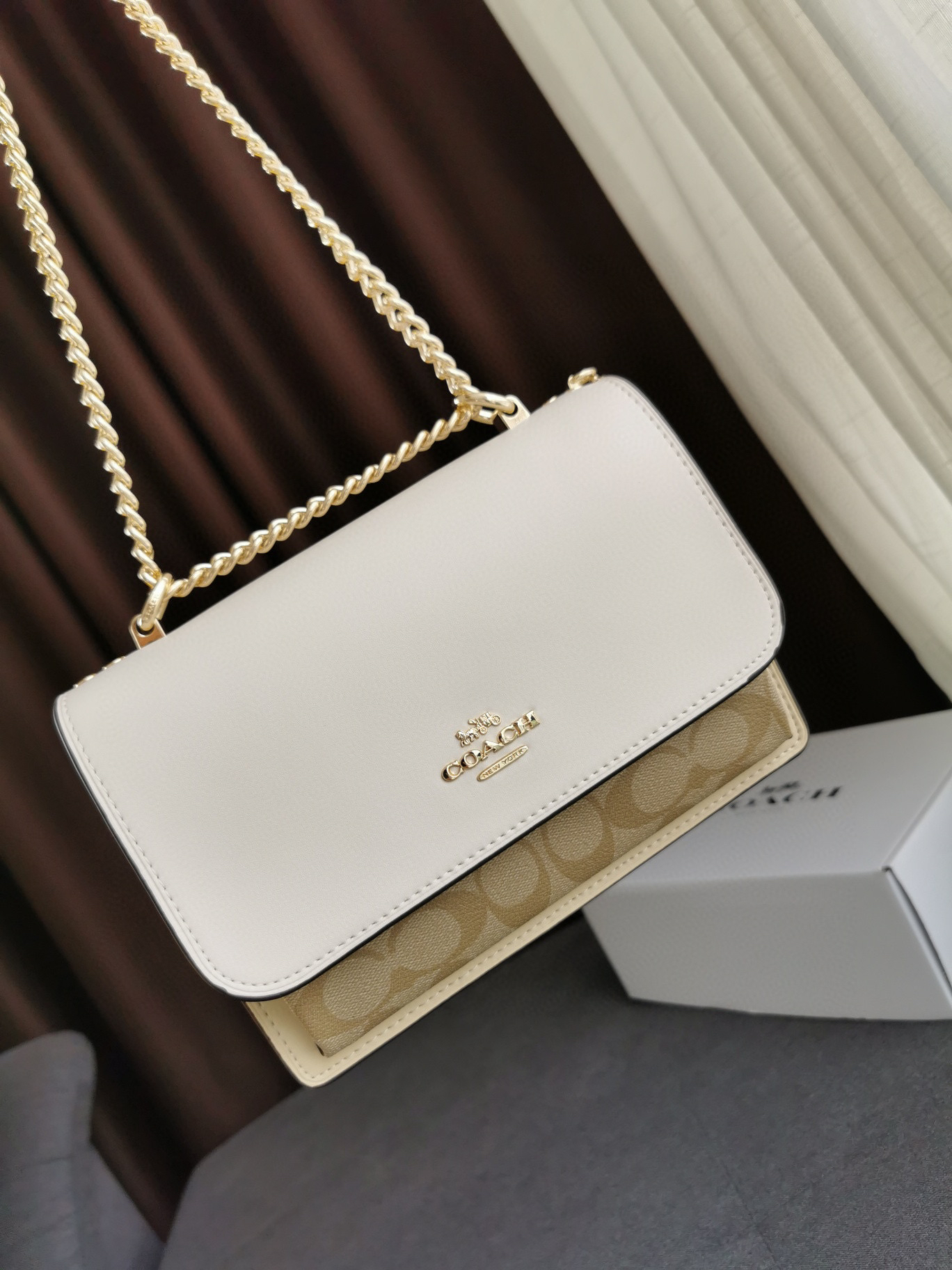 细节实拍/白色Coach Klare风琴包
