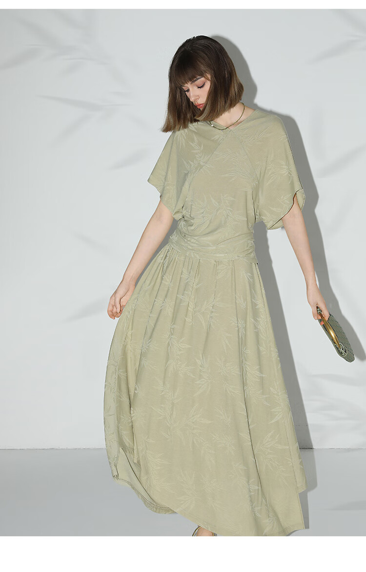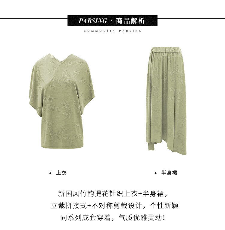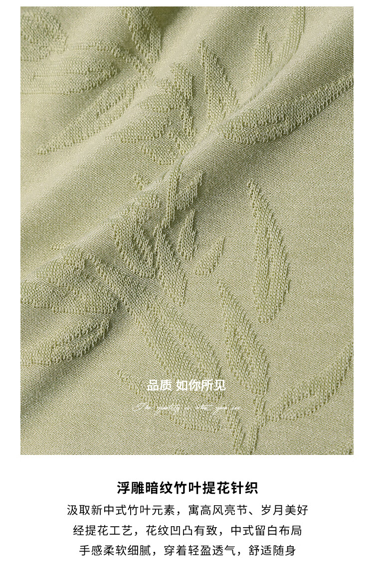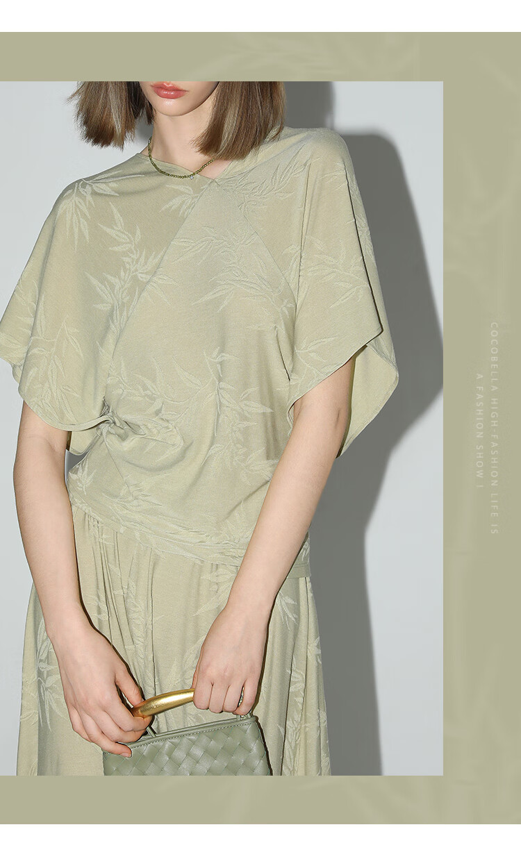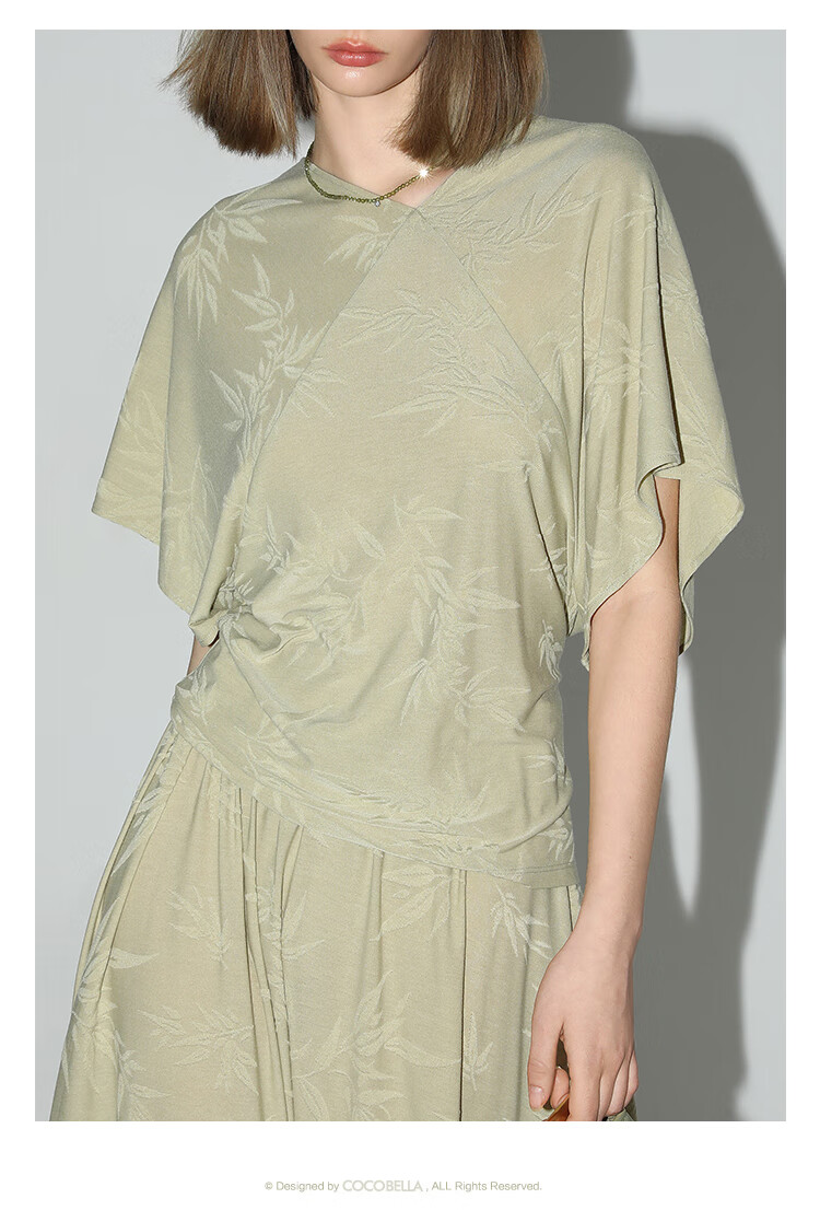 COCOBELLA[竹叶提花]新中式国风蝙蝠袖针织衫松弛感上衣TS7019-2