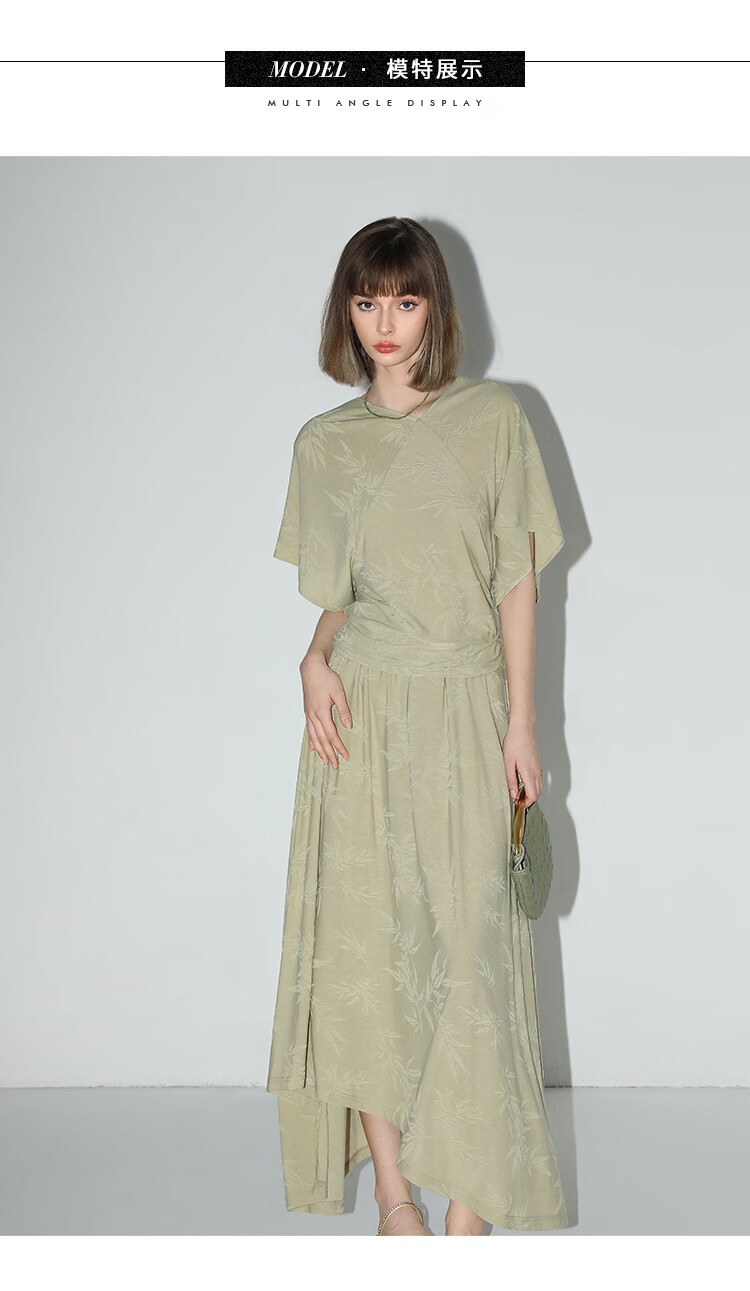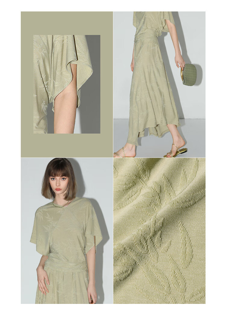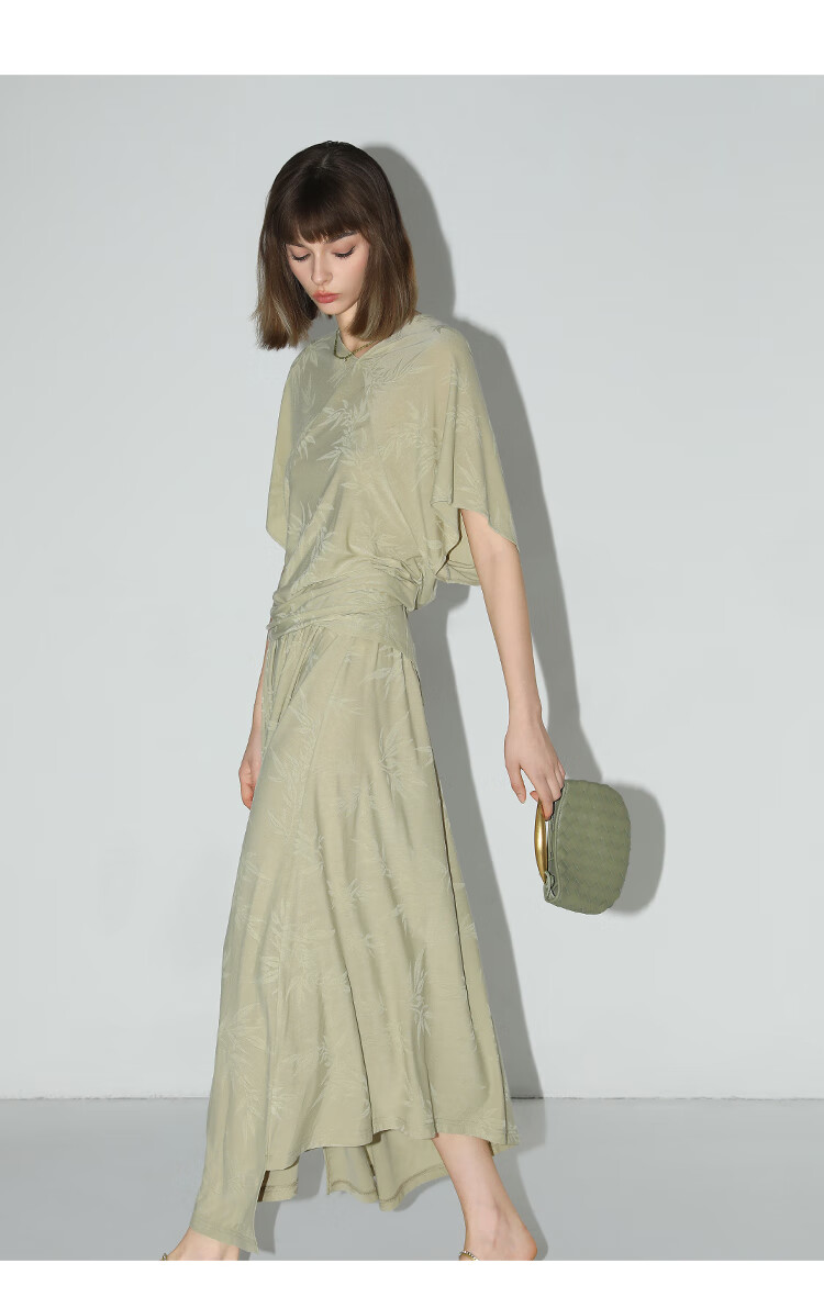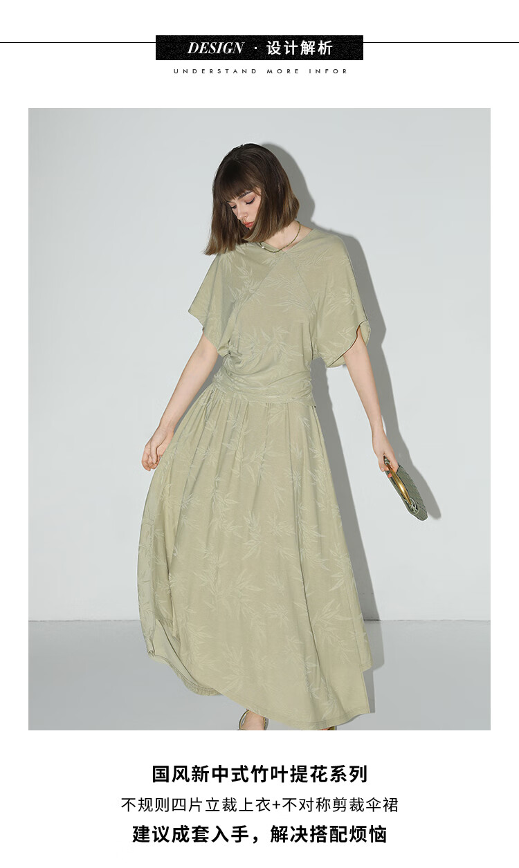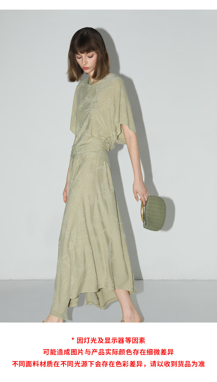 COCOBELLA[竹叶提花]新中式国风蝙蝠袖针织衫松弛感上衣TS7019-2