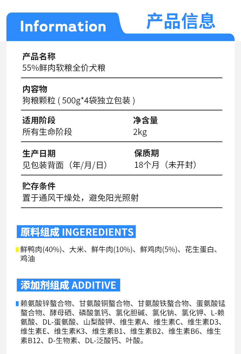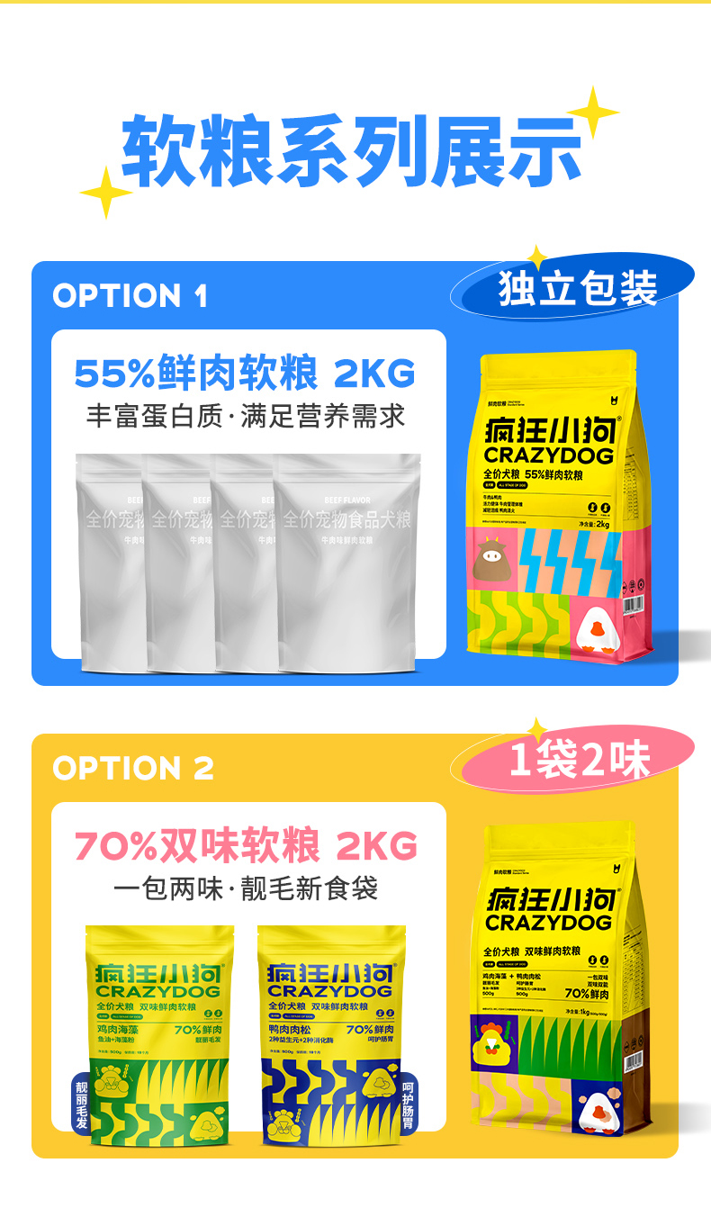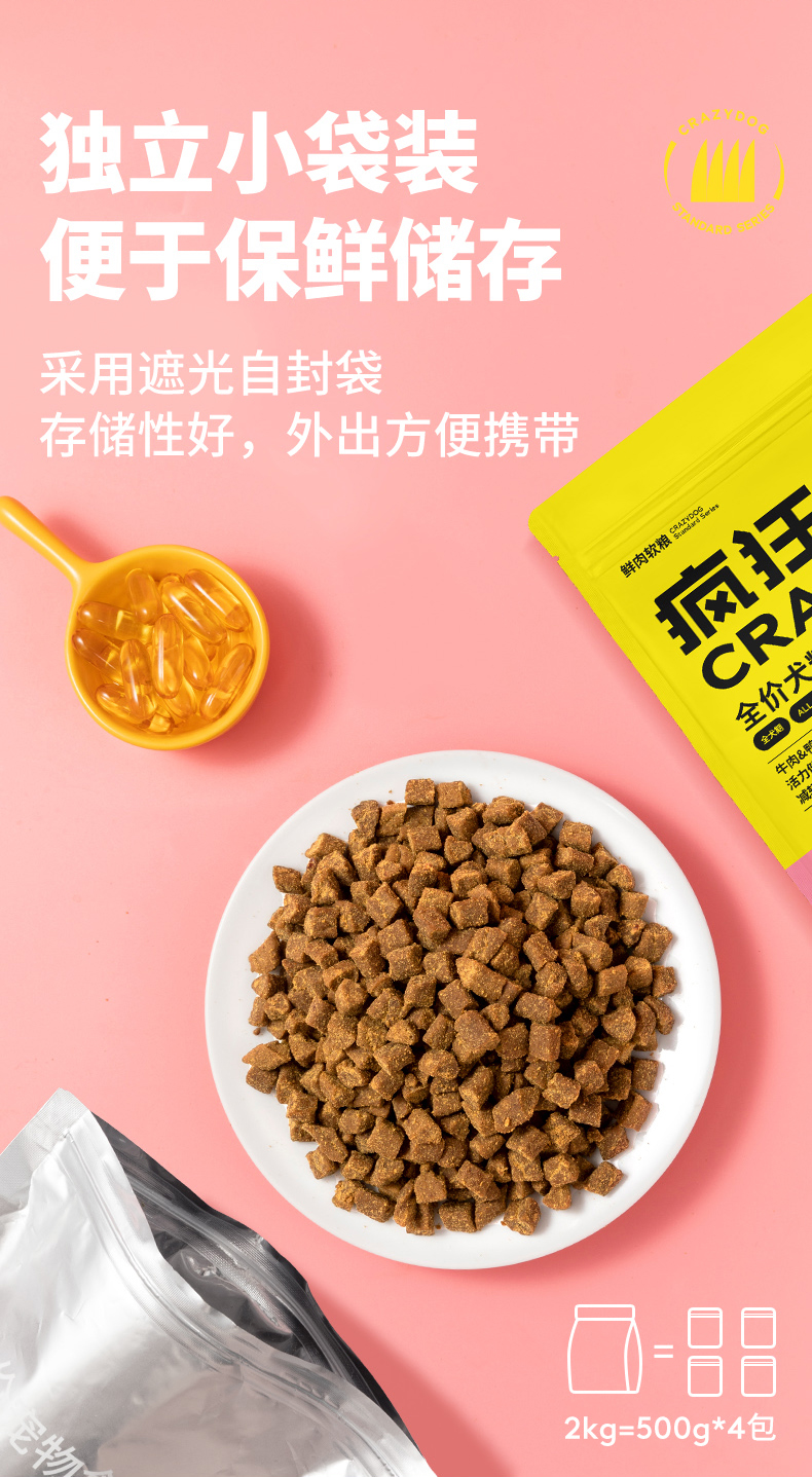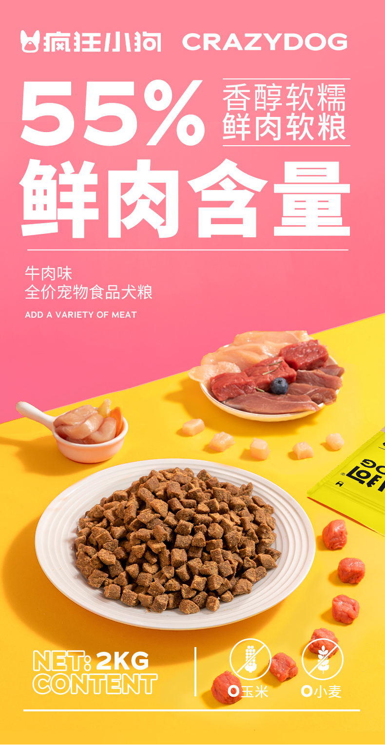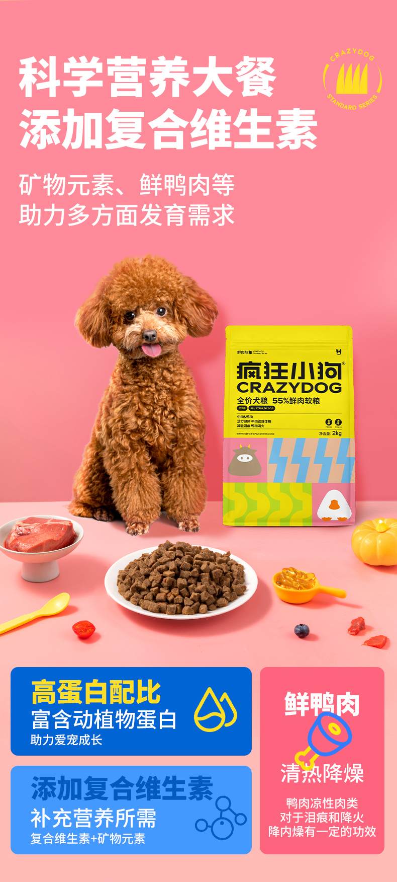 【双12囤粮热卖】疯狂小狗 55%鲜肉软粮2kg*5包 全犬通用全价犬粮