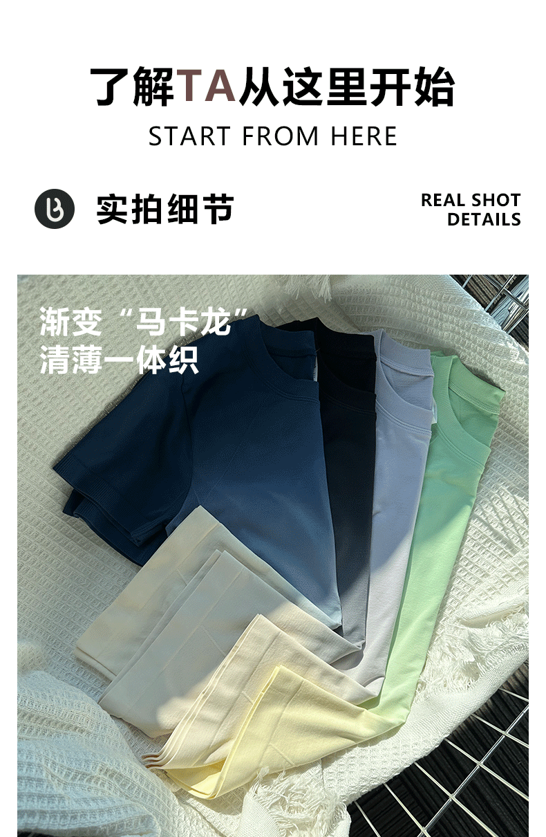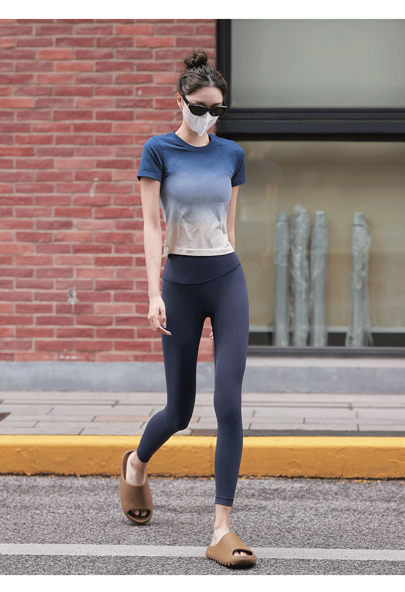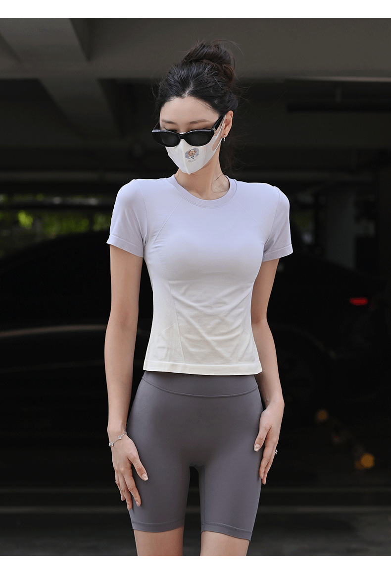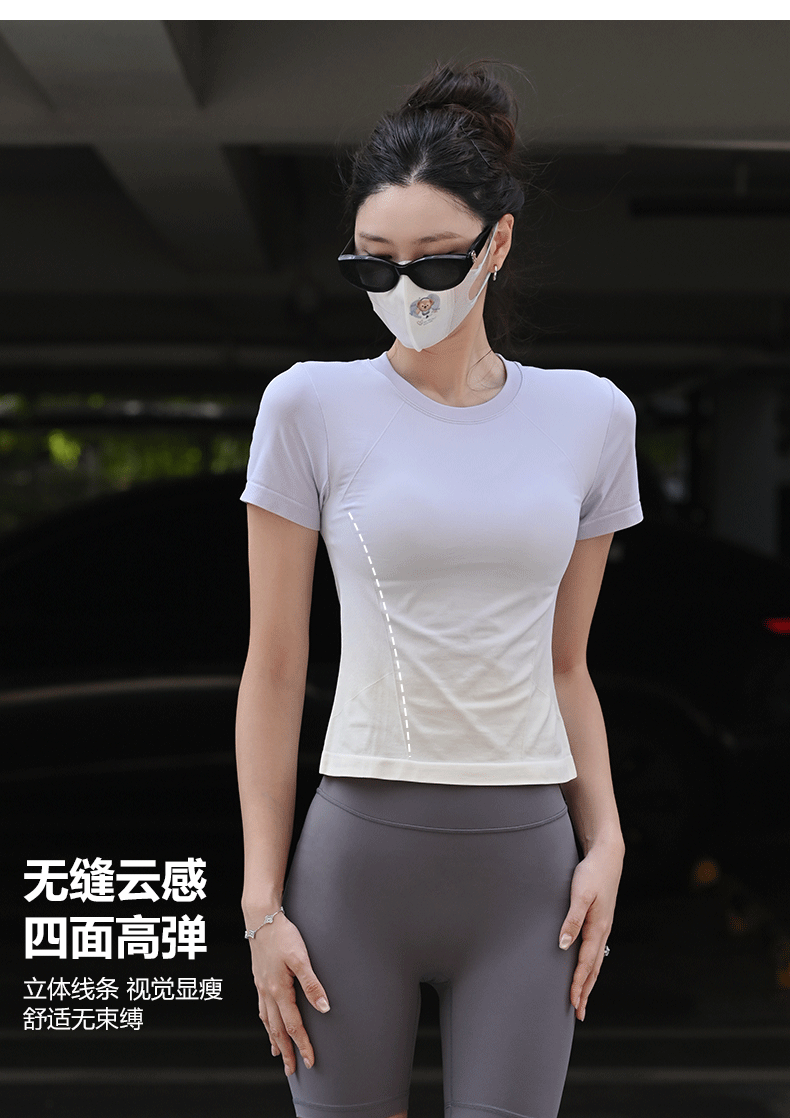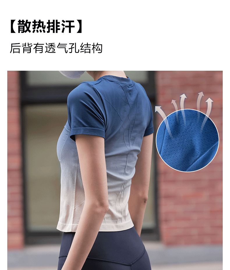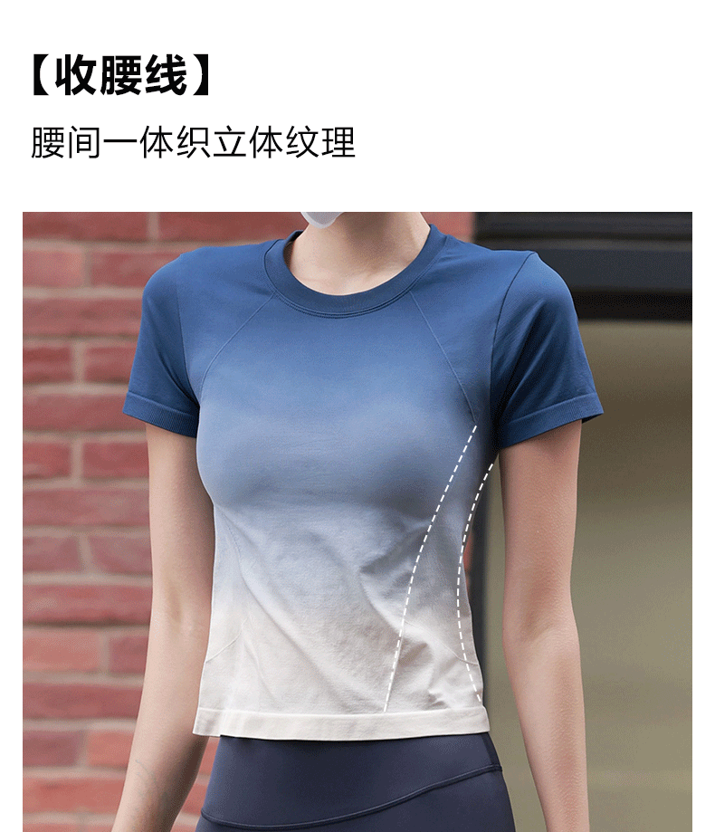 beemen时尚渐变色 运动短袖 无缝一体织 软糯轻薄 透气 瑜伽健身T恤