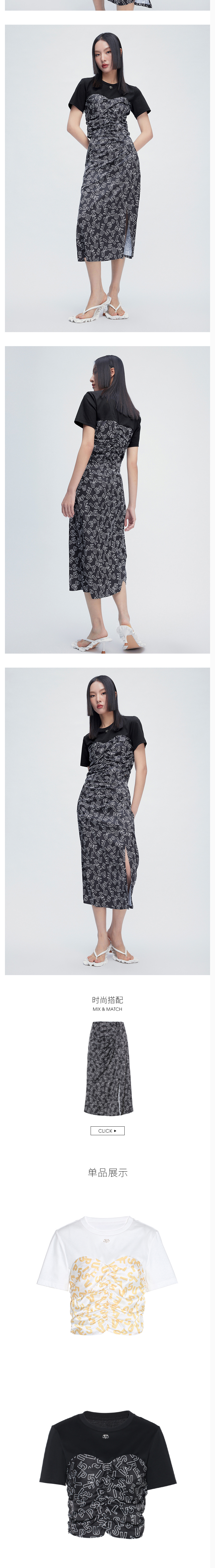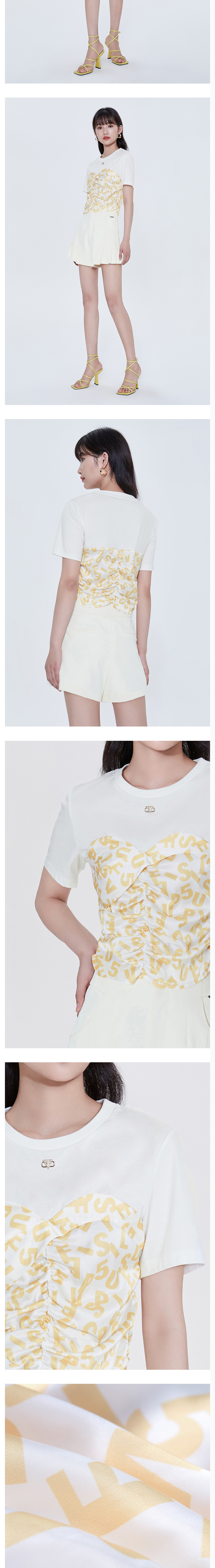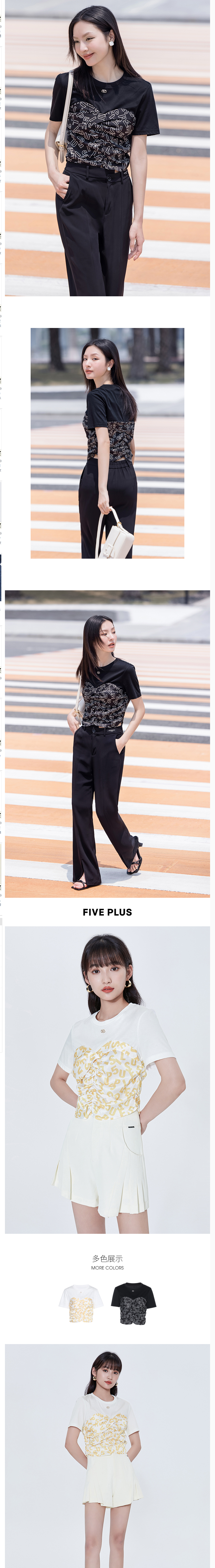 FIVE PLUS2022新款女夏装假两件短袖T恤女宽松字母设计感上衣2WN2021200