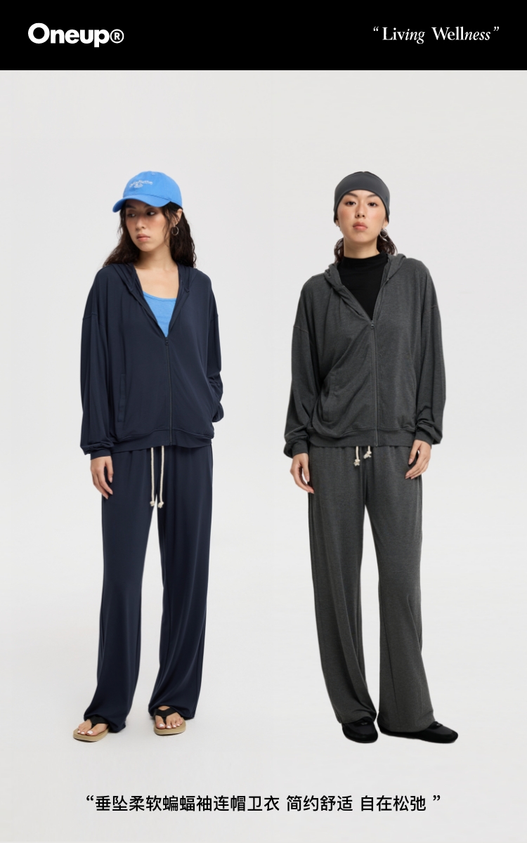 oneup垂坠柔软蝙蝠袖连帽卫衣