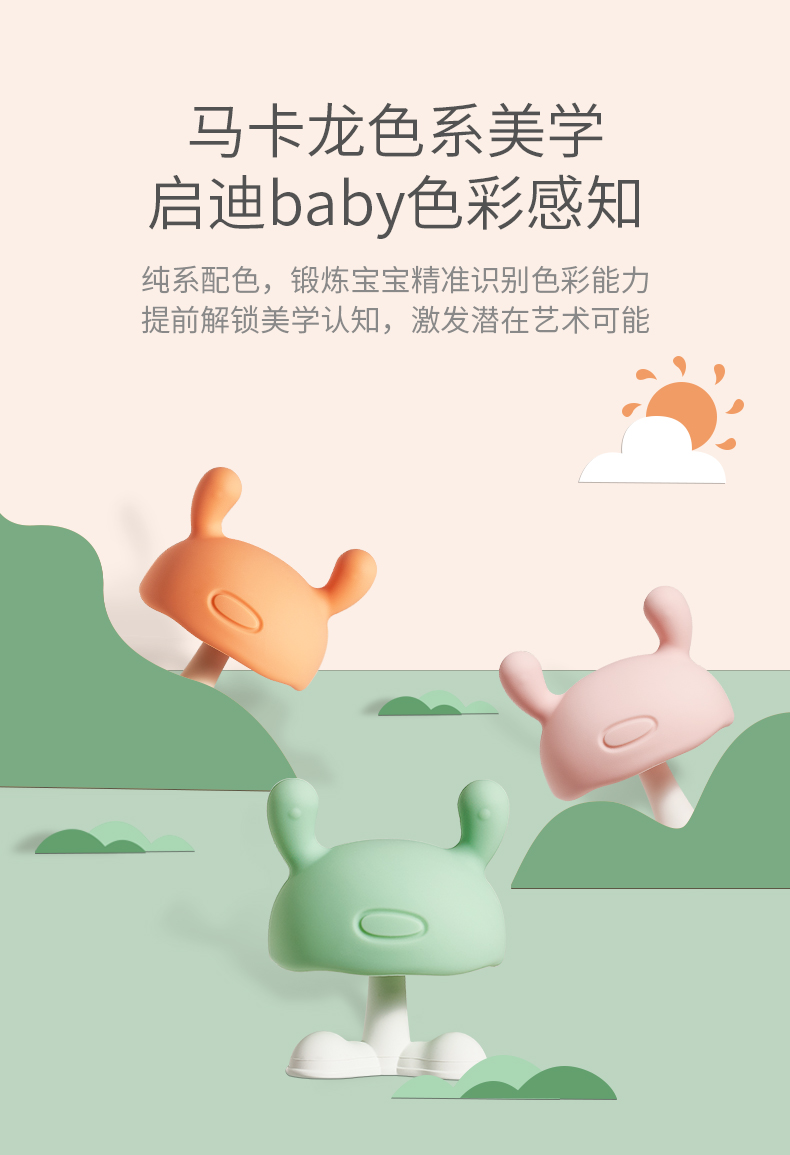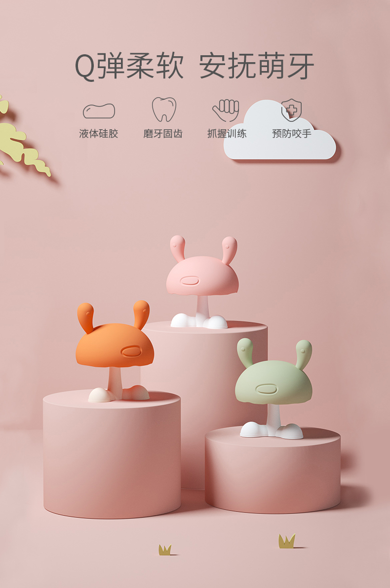 科巢小蘑菇安抚牙胶磨牙棒婴儿硅胶玩具宝宝防吃手神器咬胶可水煮