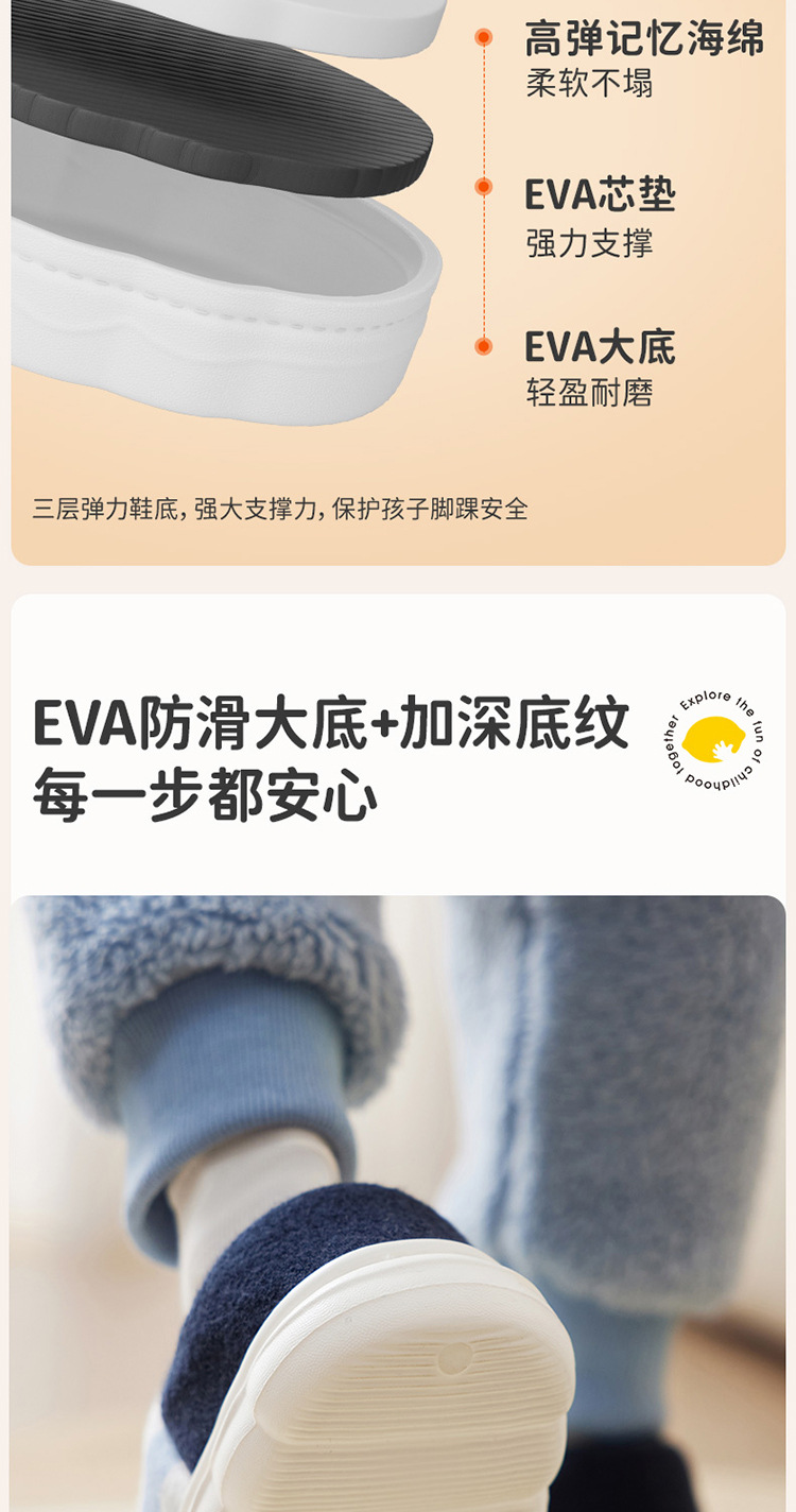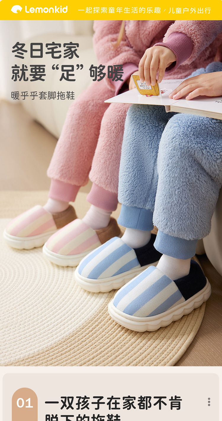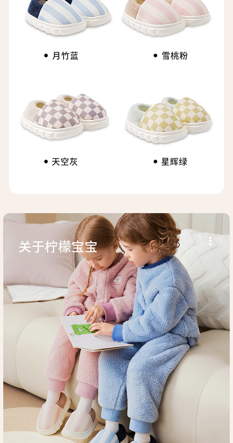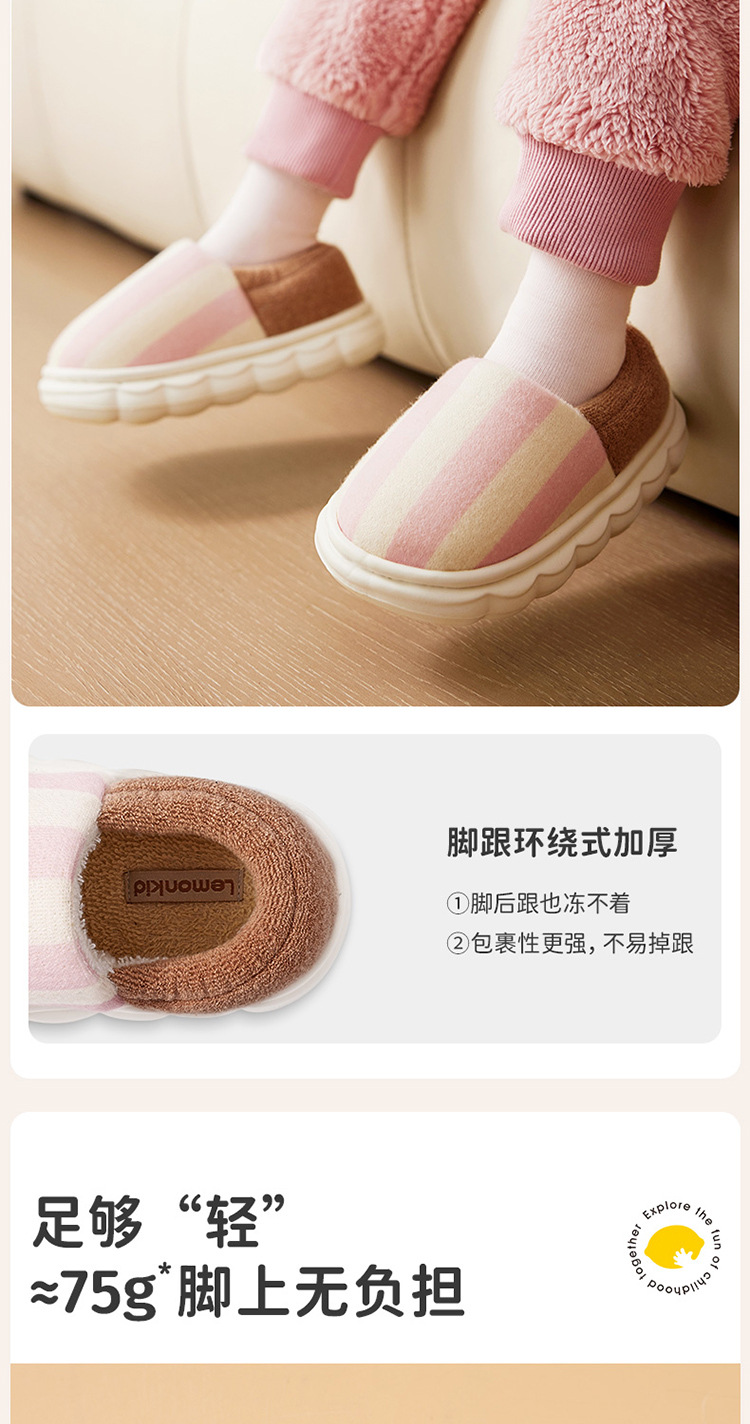 【柠檬宝宝清仓33.9】儿童棉拖鞋冬季男女童室内家居鞋包跟防滑加绒保暖棉鞋聚