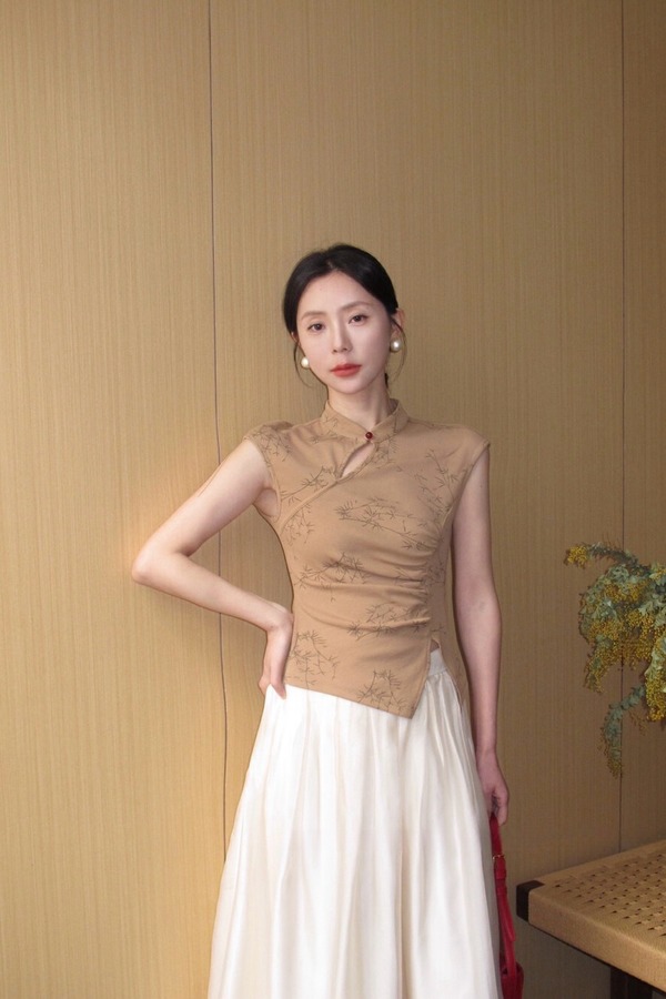 ELLA JADE 新中式立领提花针织上衣 20255