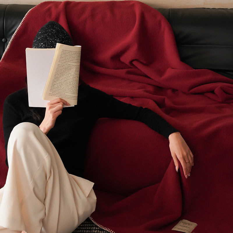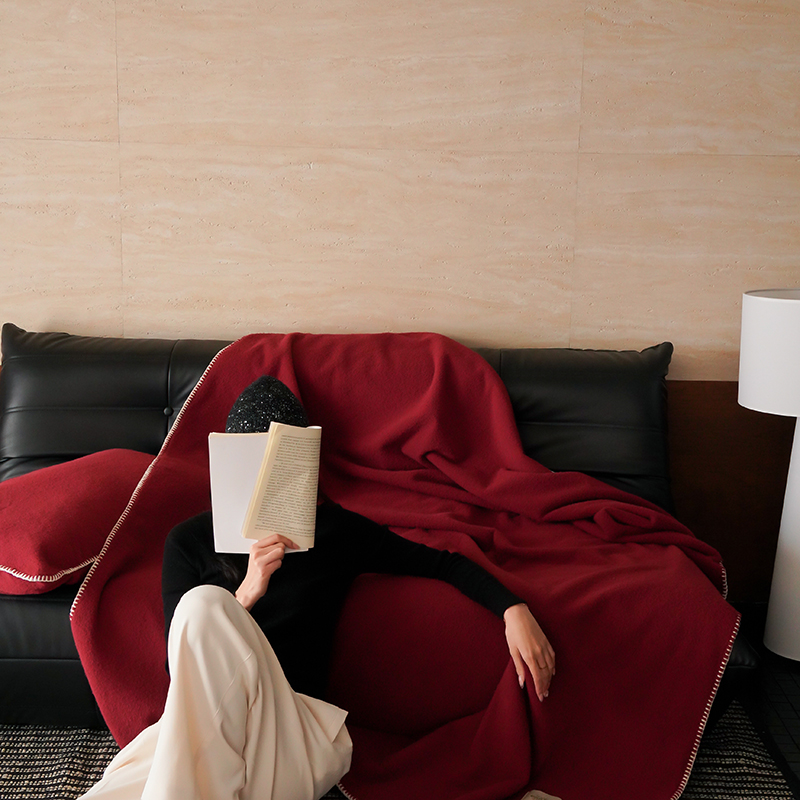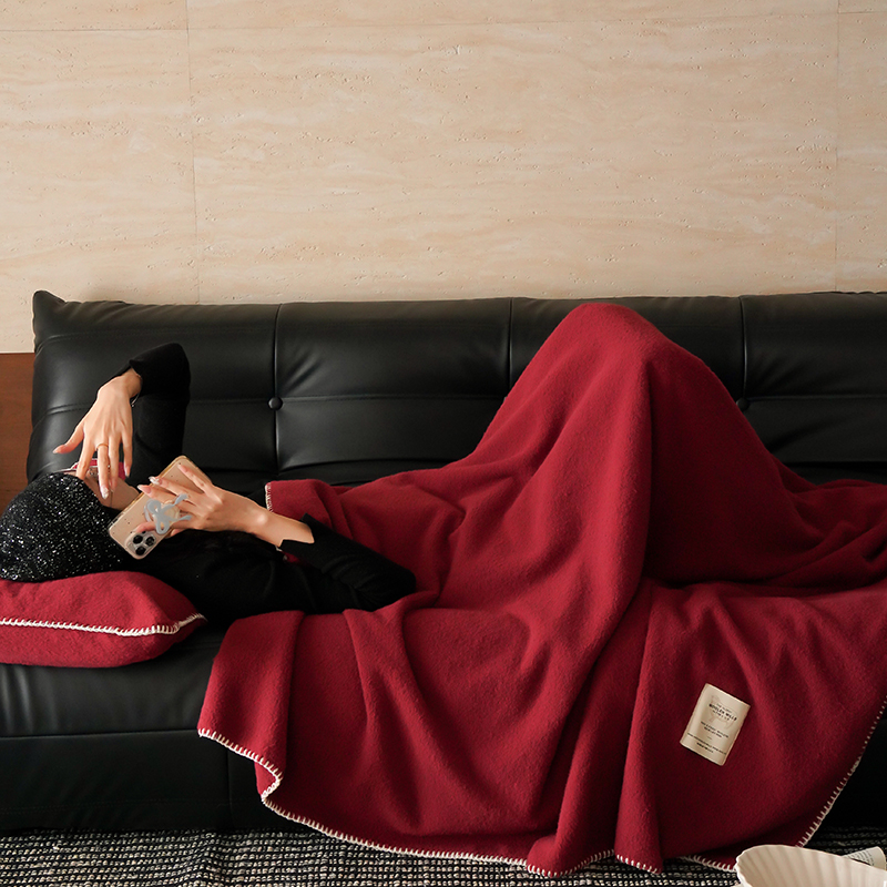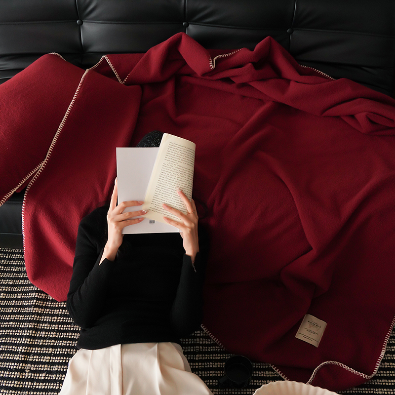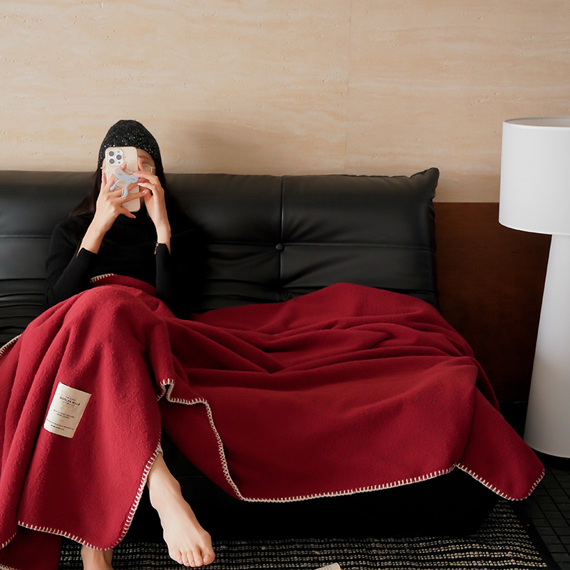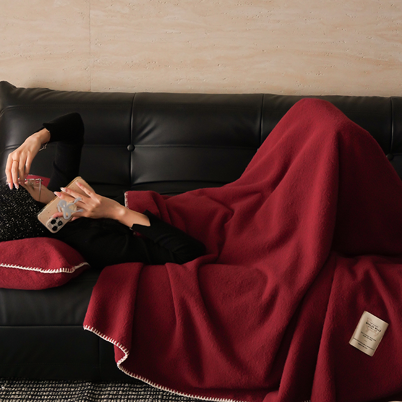 自然醒托斯卡纳仿生羊毛绒毯子大红色喜庆酒红色高级感卧室沙发午睡盖毯休闲纯色MT