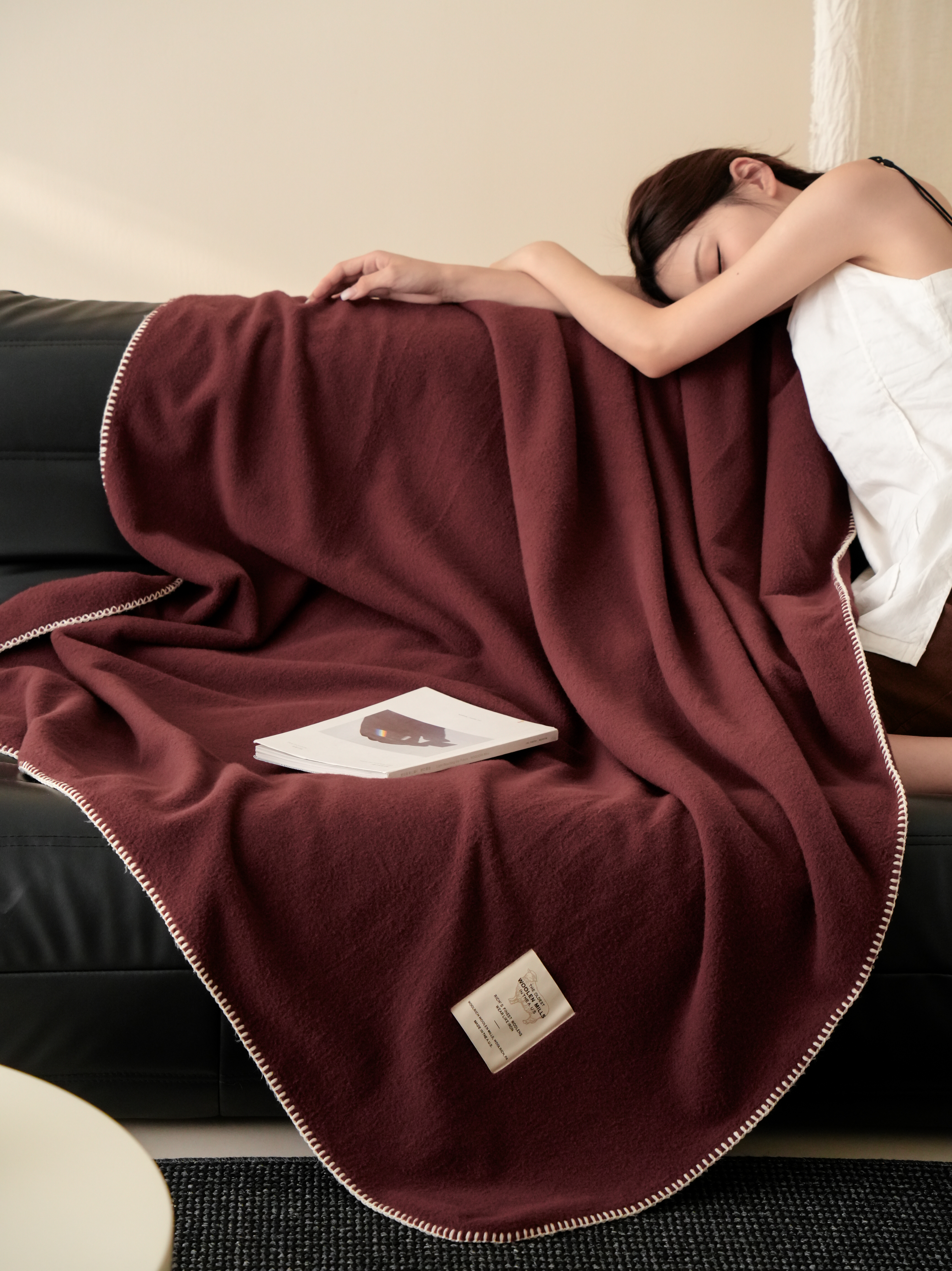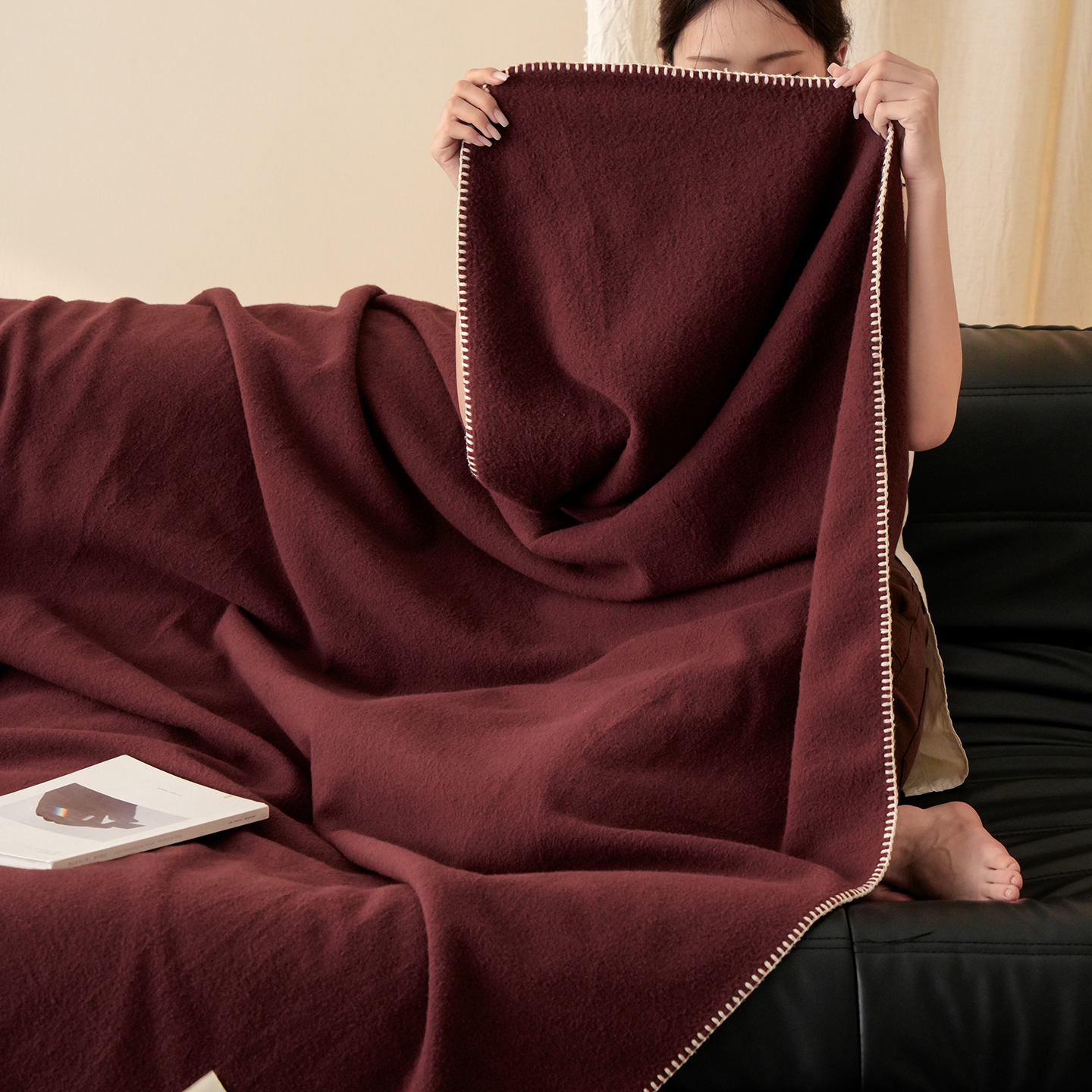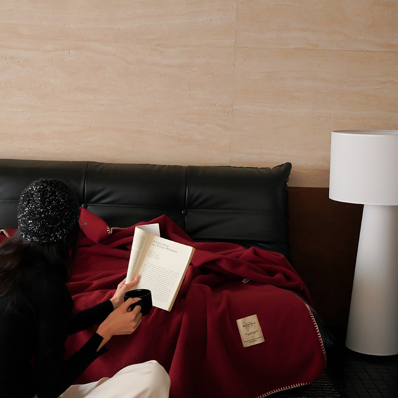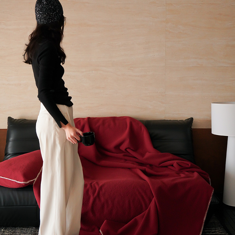 自然醒托斯卡纳仿生羊毛绒毯子大红色喜庆酒红色高级感卧室沙发午睡盖毯休闲纯色MT