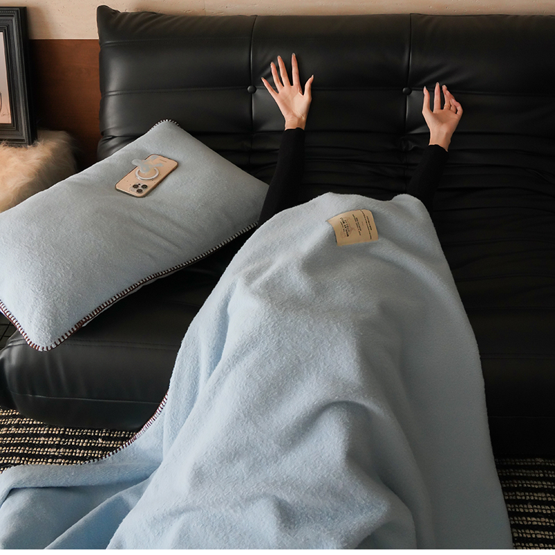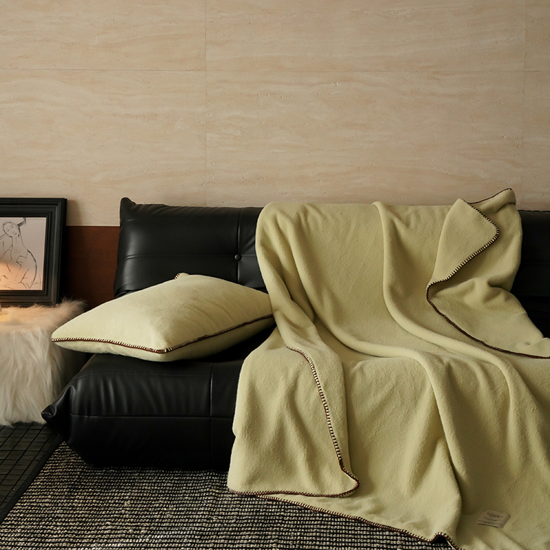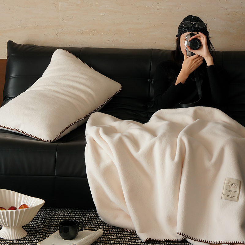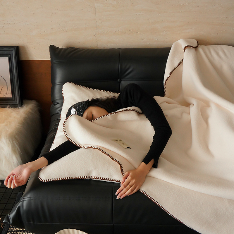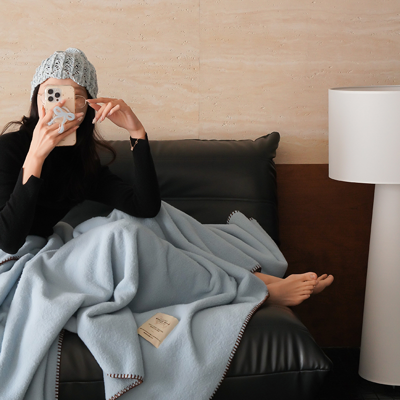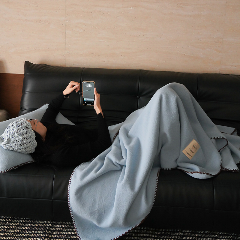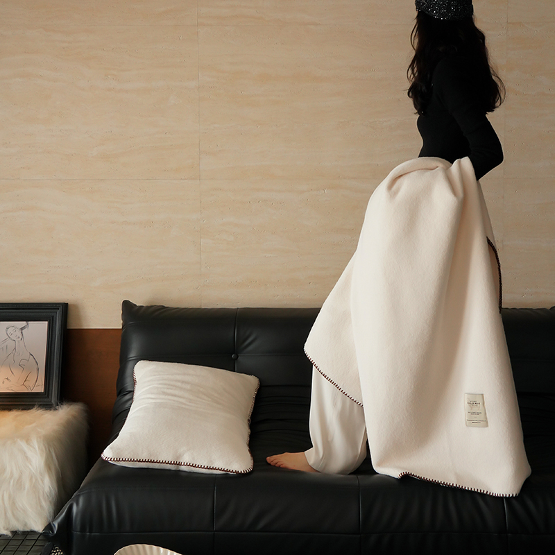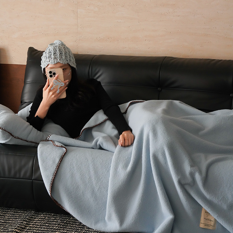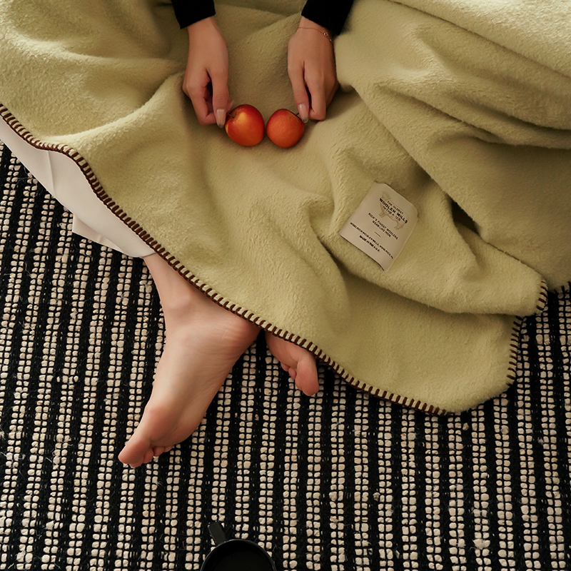 工艺Design:仿羊绒工艺,采用高定成衣手工毛一字绣,毛线绣边,双层高温定型,无缝一体,平整度高,可铺可盖!舒适躺平无负担!