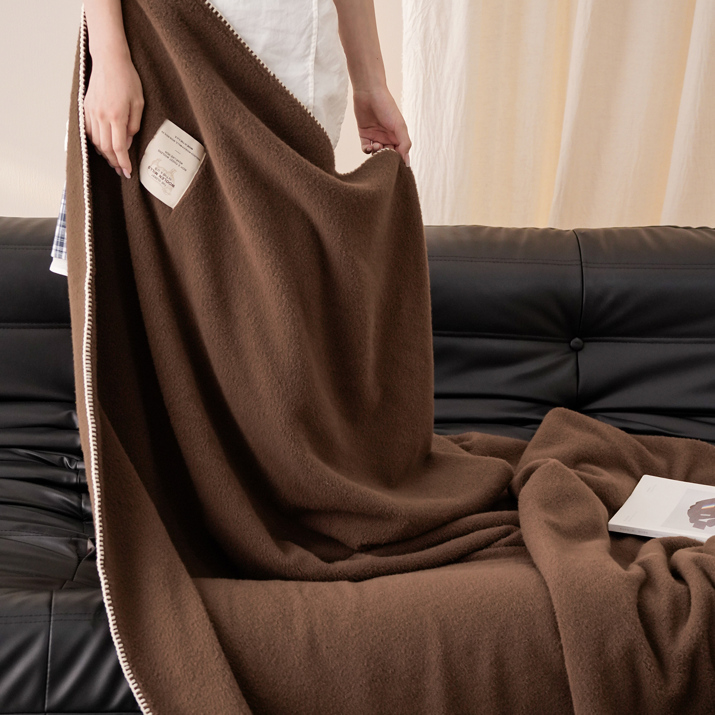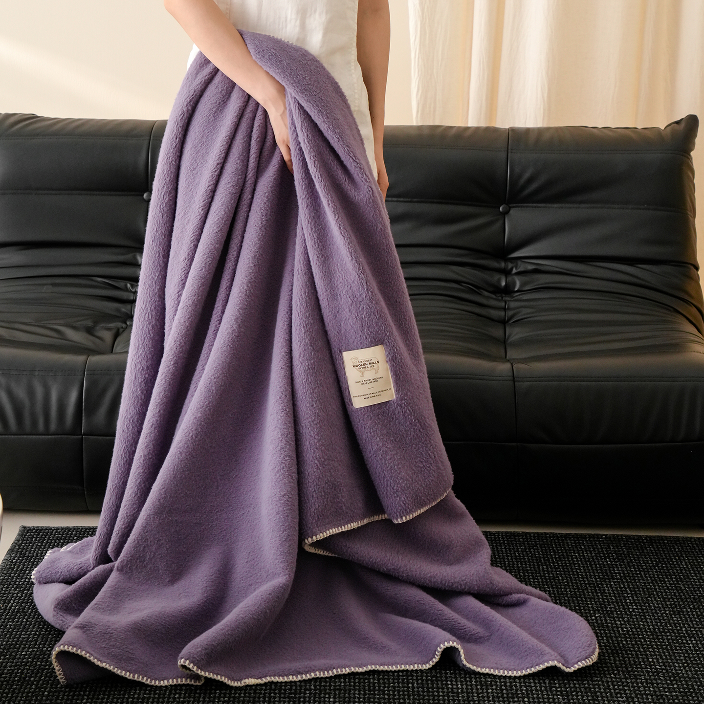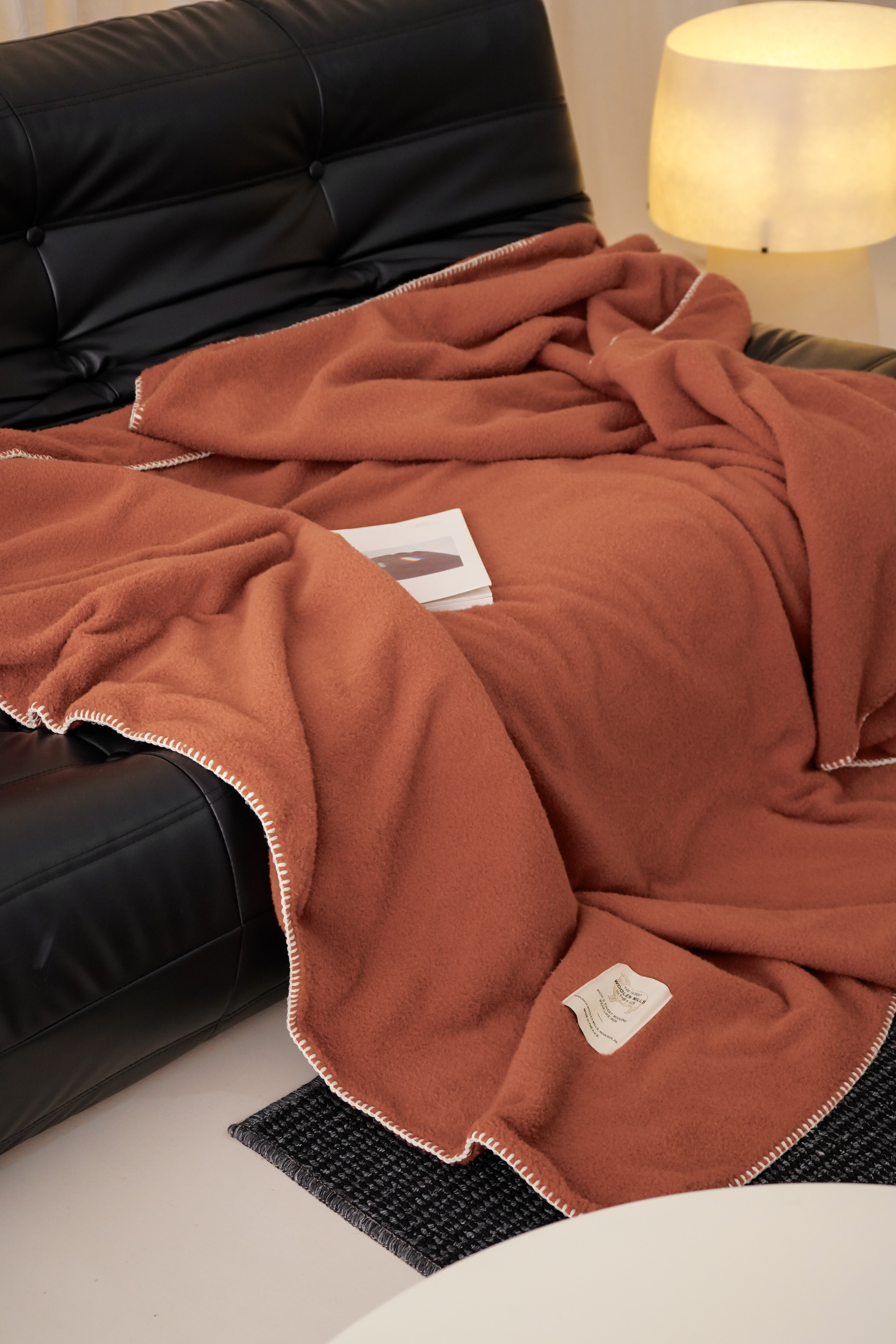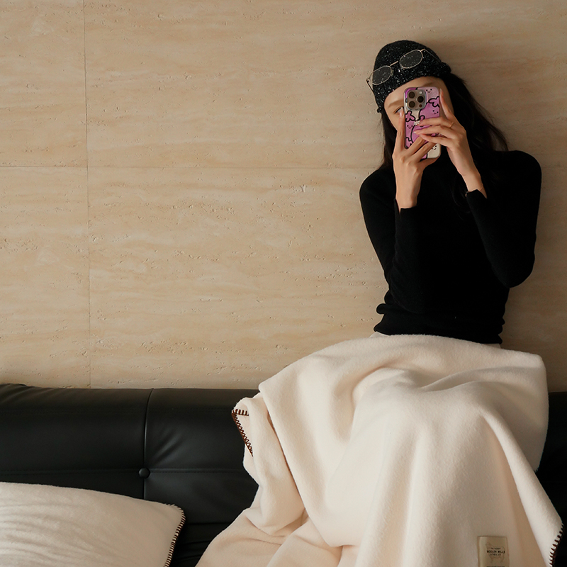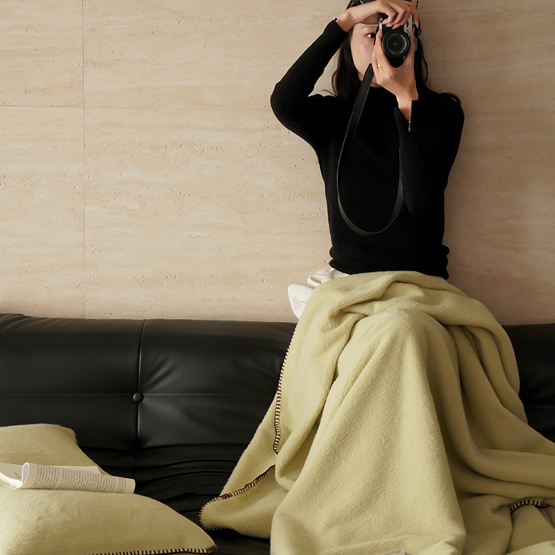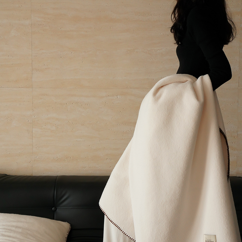 工艺Design:仿羊绒工艺,采用高定成衣手工毛一字绣,毛线绣边,双层高温定型,无缝一体,平整度高,可铺可盖!舒适躺平无负担!