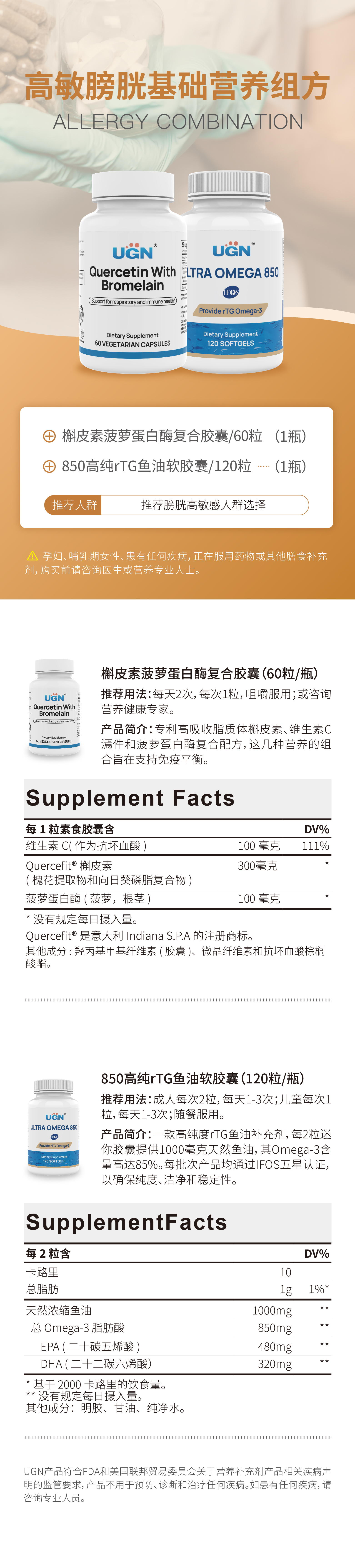 高敏膀胱基础营养组合30天(槲皮素胶囊60粒*1瓶,鱼油软胶囊120粒*1瓶)