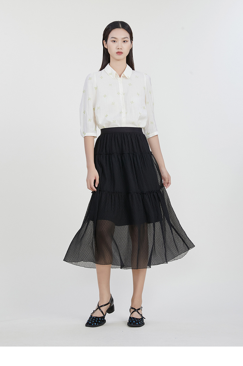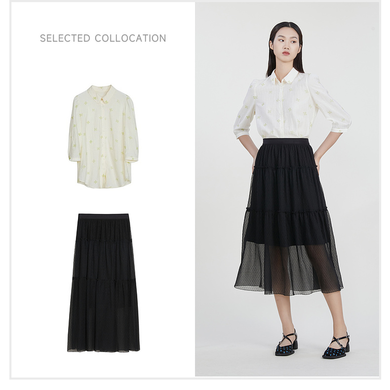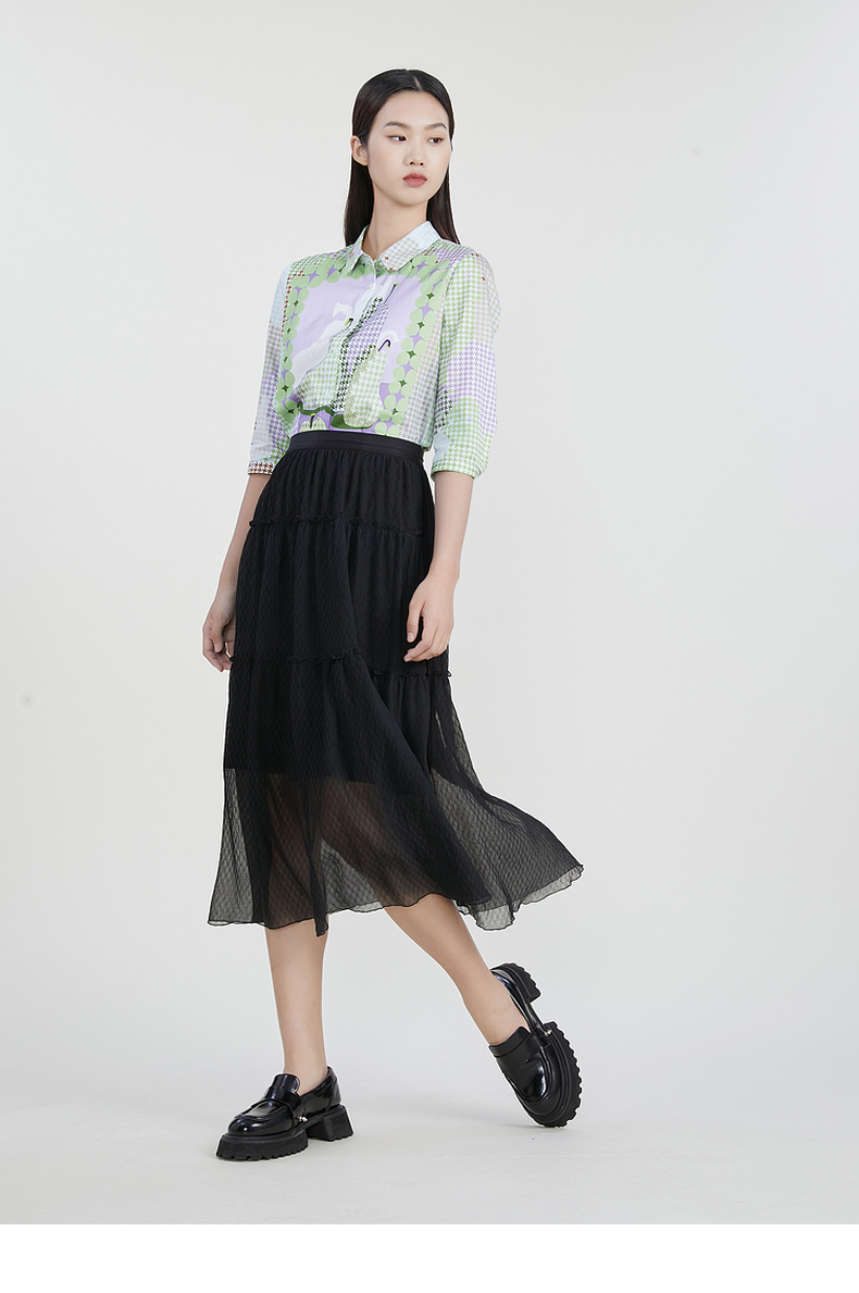 谜底中长款半身裙伞裙2023春新款气质优雅浪漫百搭半裙231MB0097