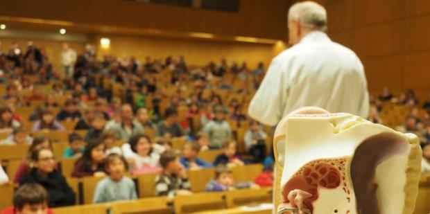 诺贝尔奖获得者沃尔哈德在图宾根儿童大学授课