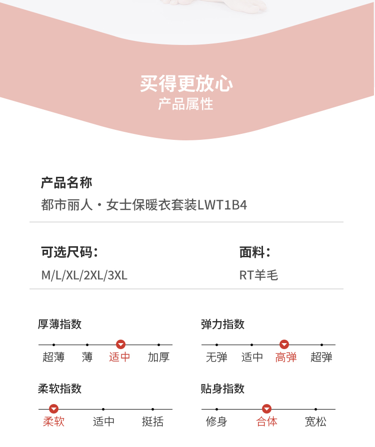 都市丽人保暖衣舒暖套装RT羊毛中厚女士保暖衣套装LWT1B4