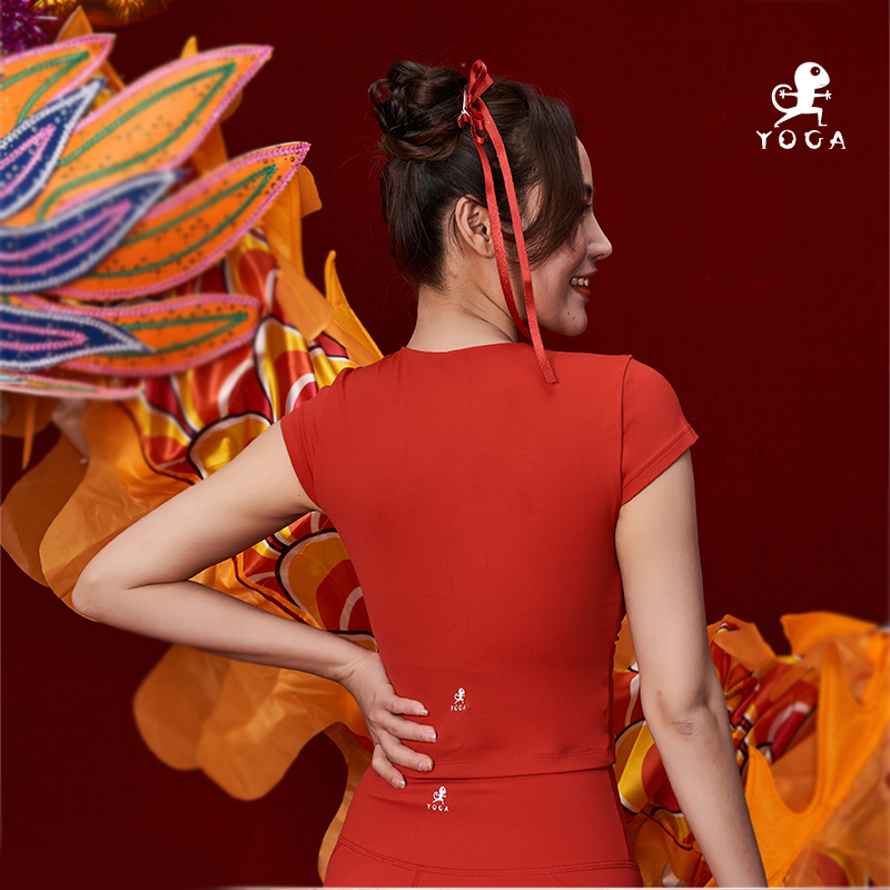 壁虎瑜伽【2312SY269】修腰V领短袖(可拆卸胸垫)清仓不退不换