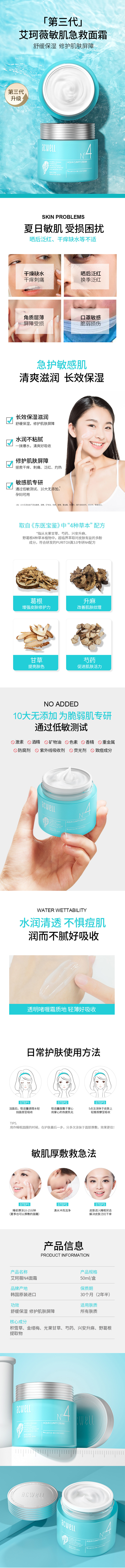 韩国Acwell艾珂薇N4面霜 温和保湿锁水 不油腻 50ml 舒缓保湿“小蓝瓶”,卓效修护
