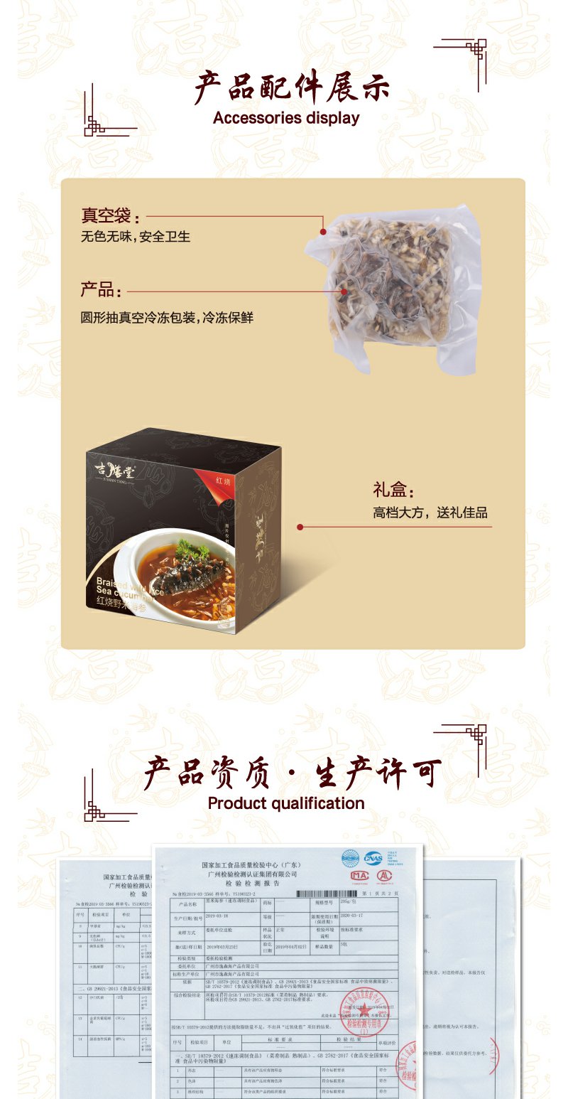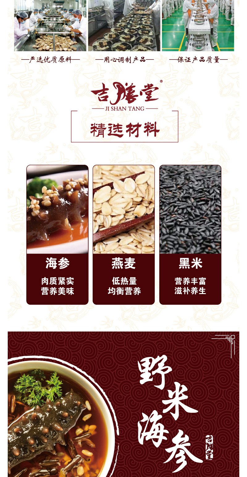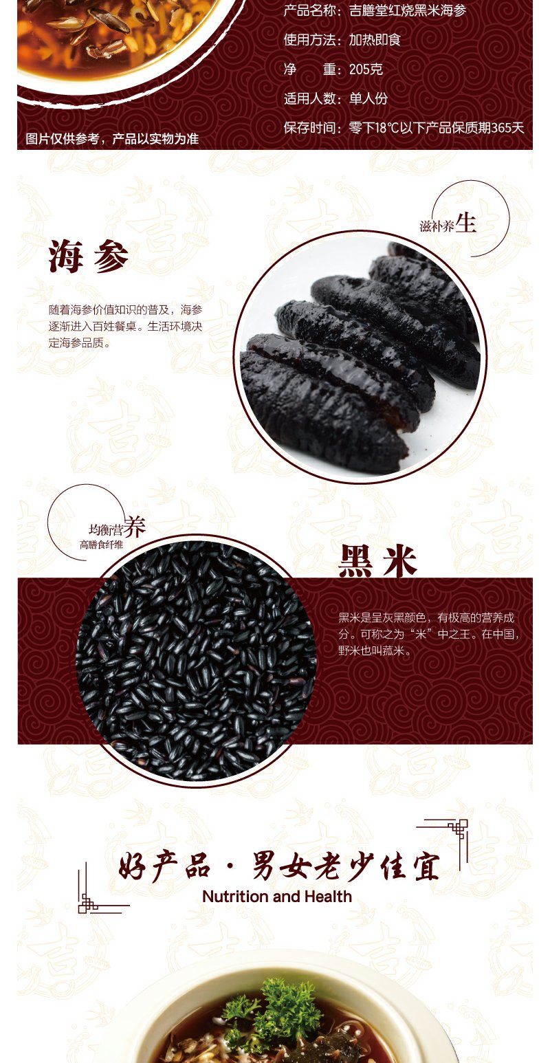 【吉膳堂红烧黑米海参】精选海参十几小时炖煮加热即食单人份205g