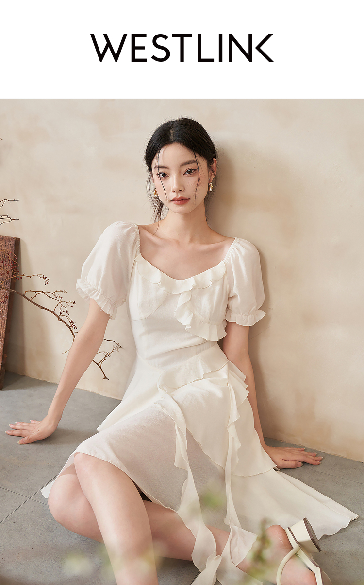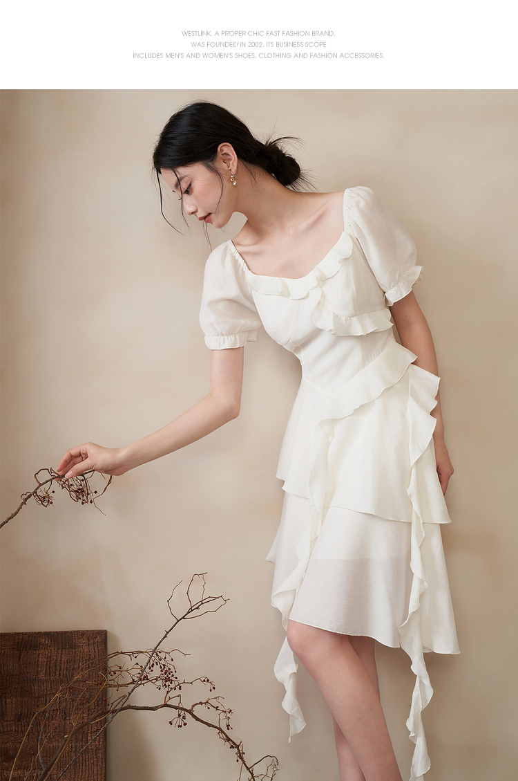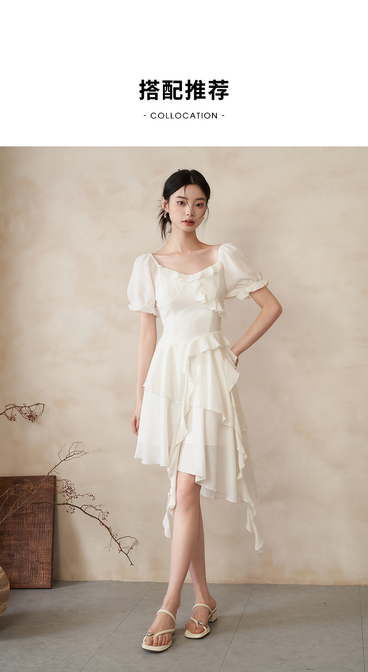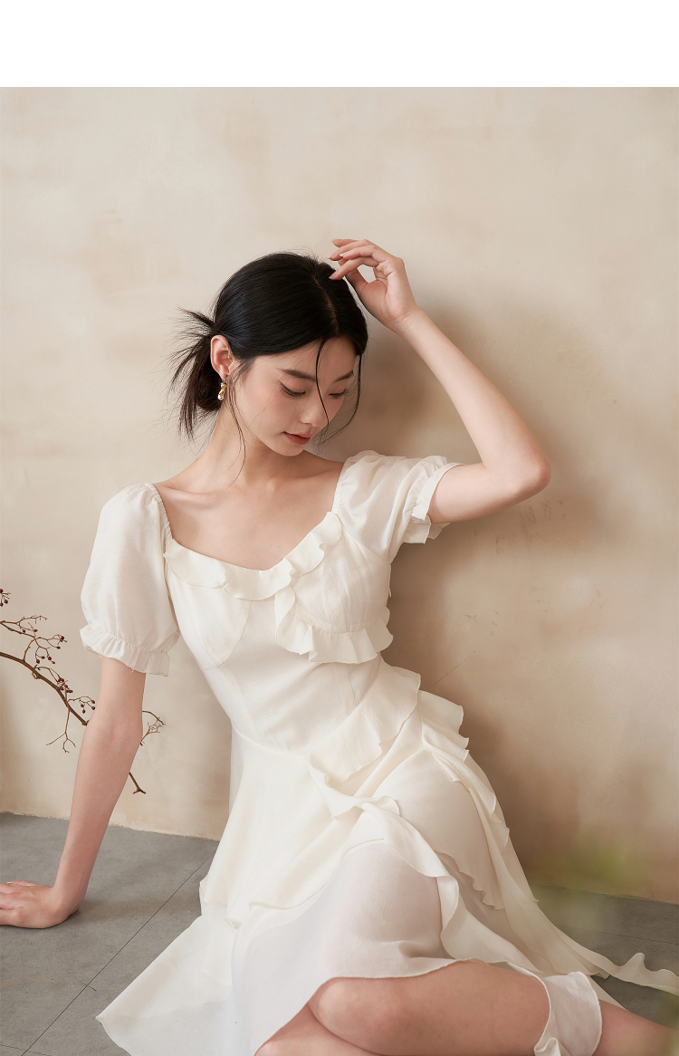 文艺甜美提花肌理感荷叶边连衣裙夏季出片氛围感仙女裙V0041352