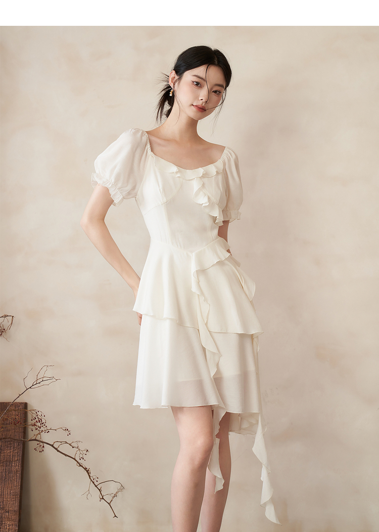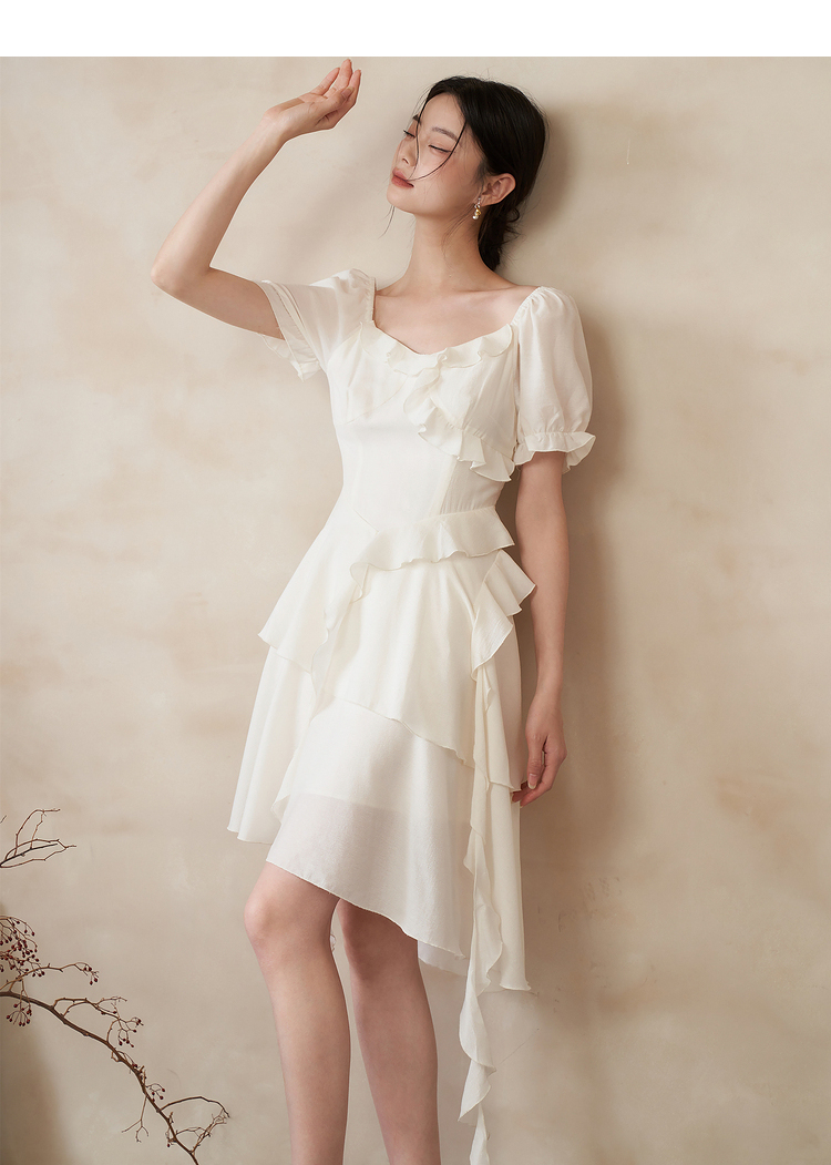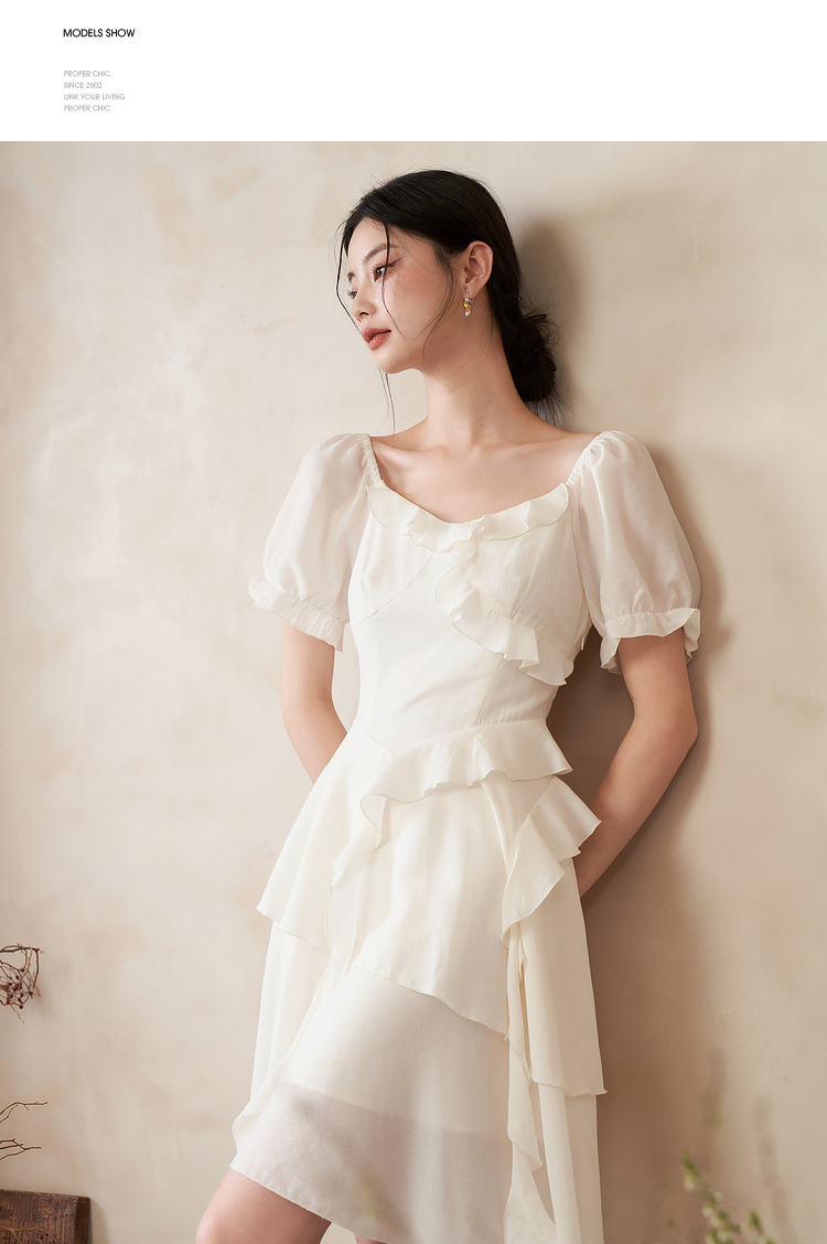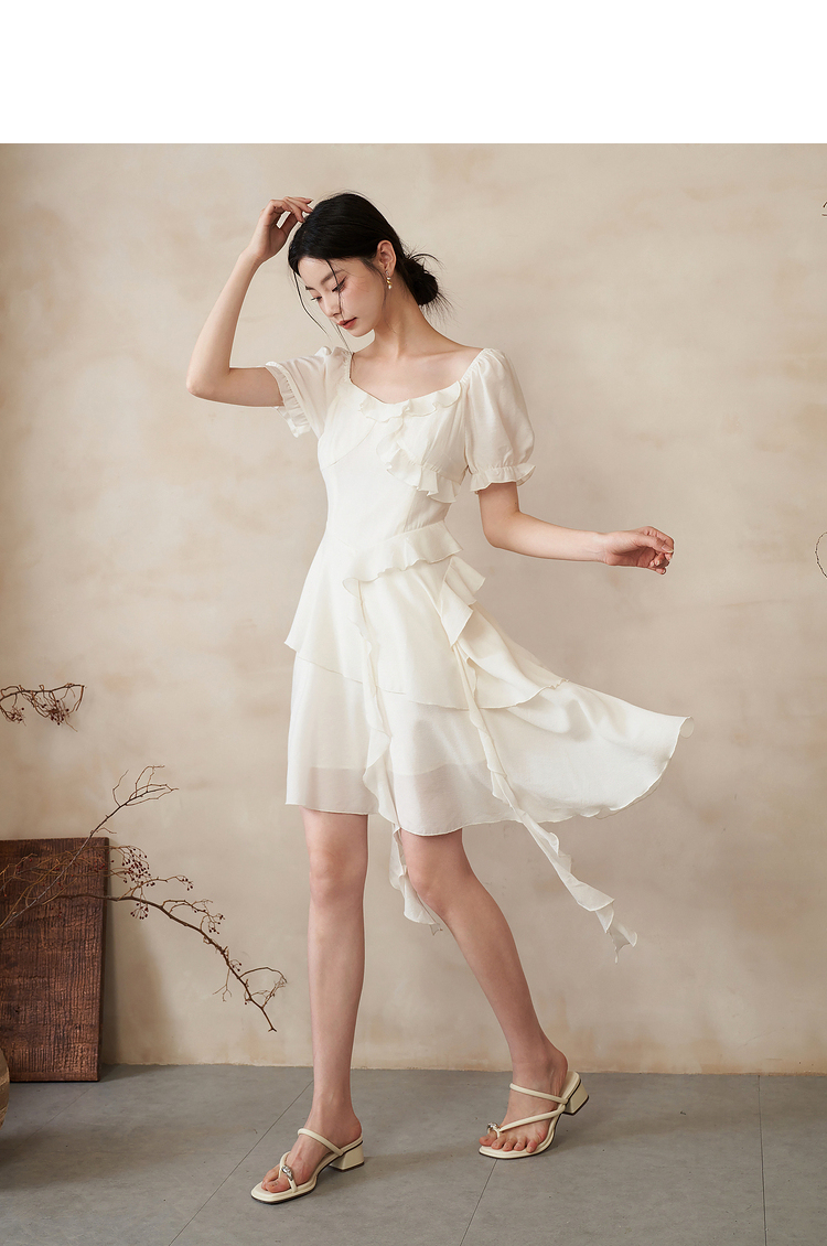 文艺甜美提花肌理感荷叶边连衣裙夏季出片氛围感仙女裙V0041352