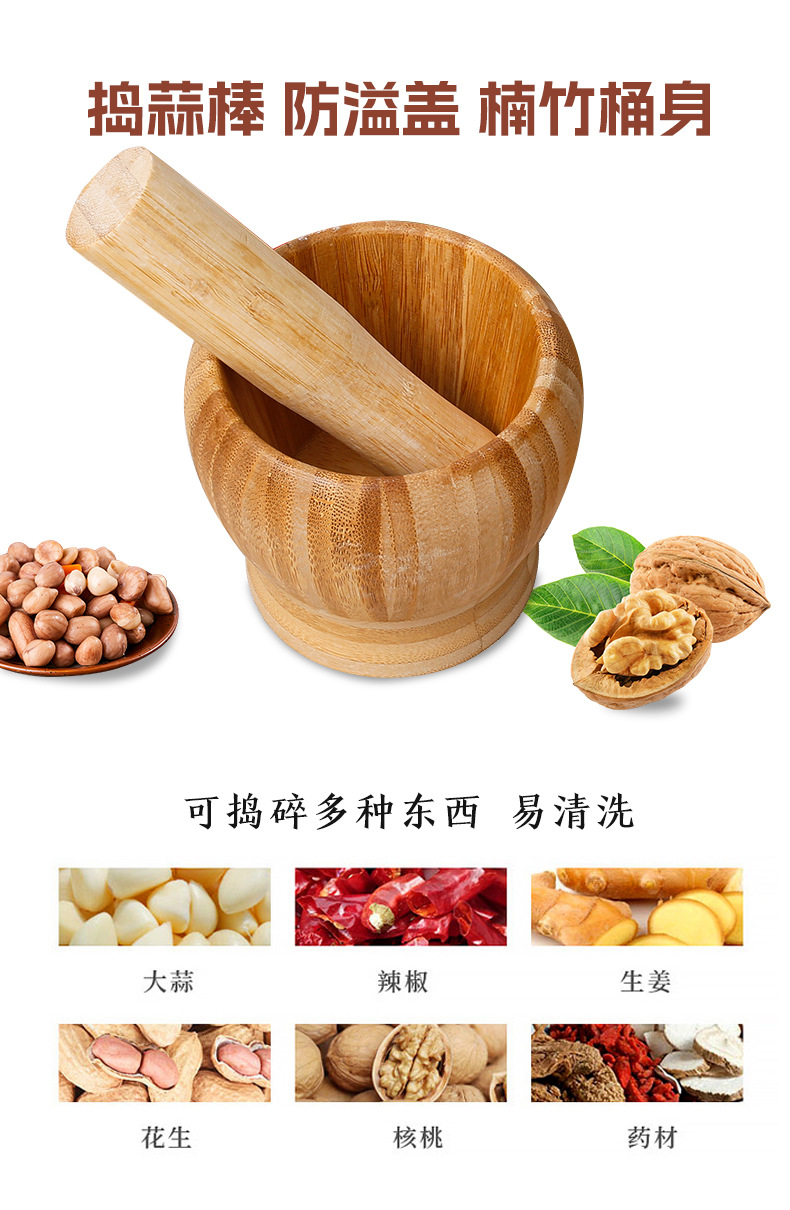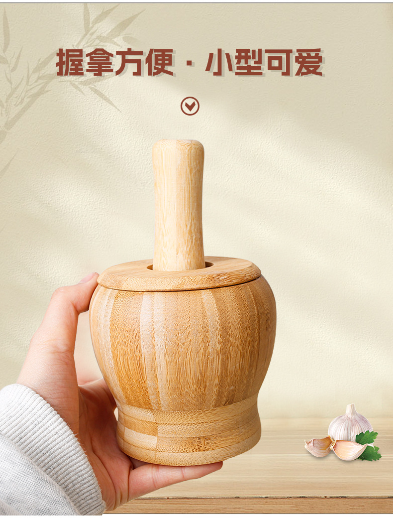 「竹制捣蒜器!三款尺寸」手工蒜泥工具 蒜罐家用竹木蒜臼子压蒜厨房用品
