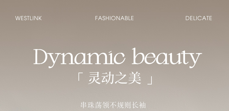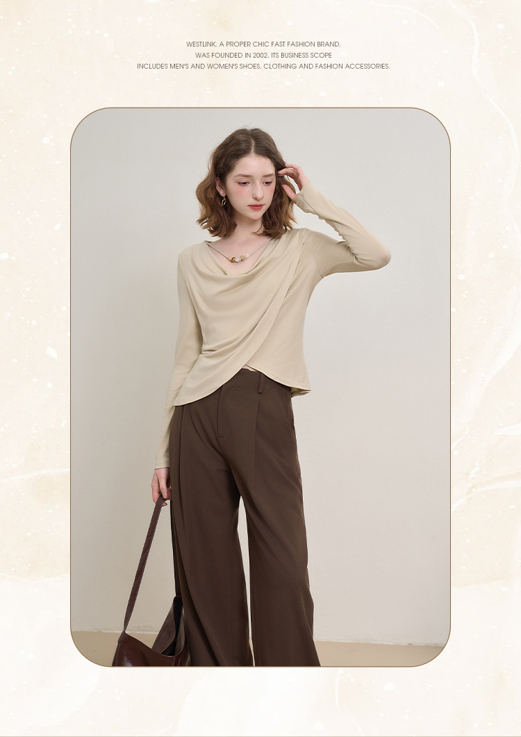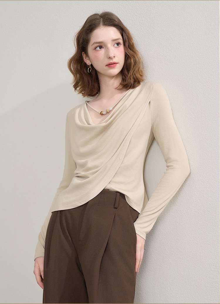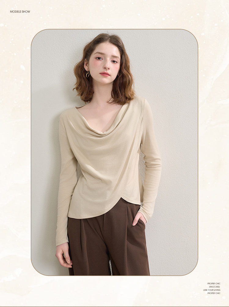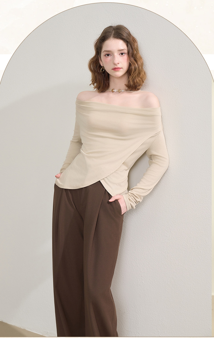西遇串珠荡领不规则长袖T恤女秋季设计感收腰显瘦针织衫V2651147