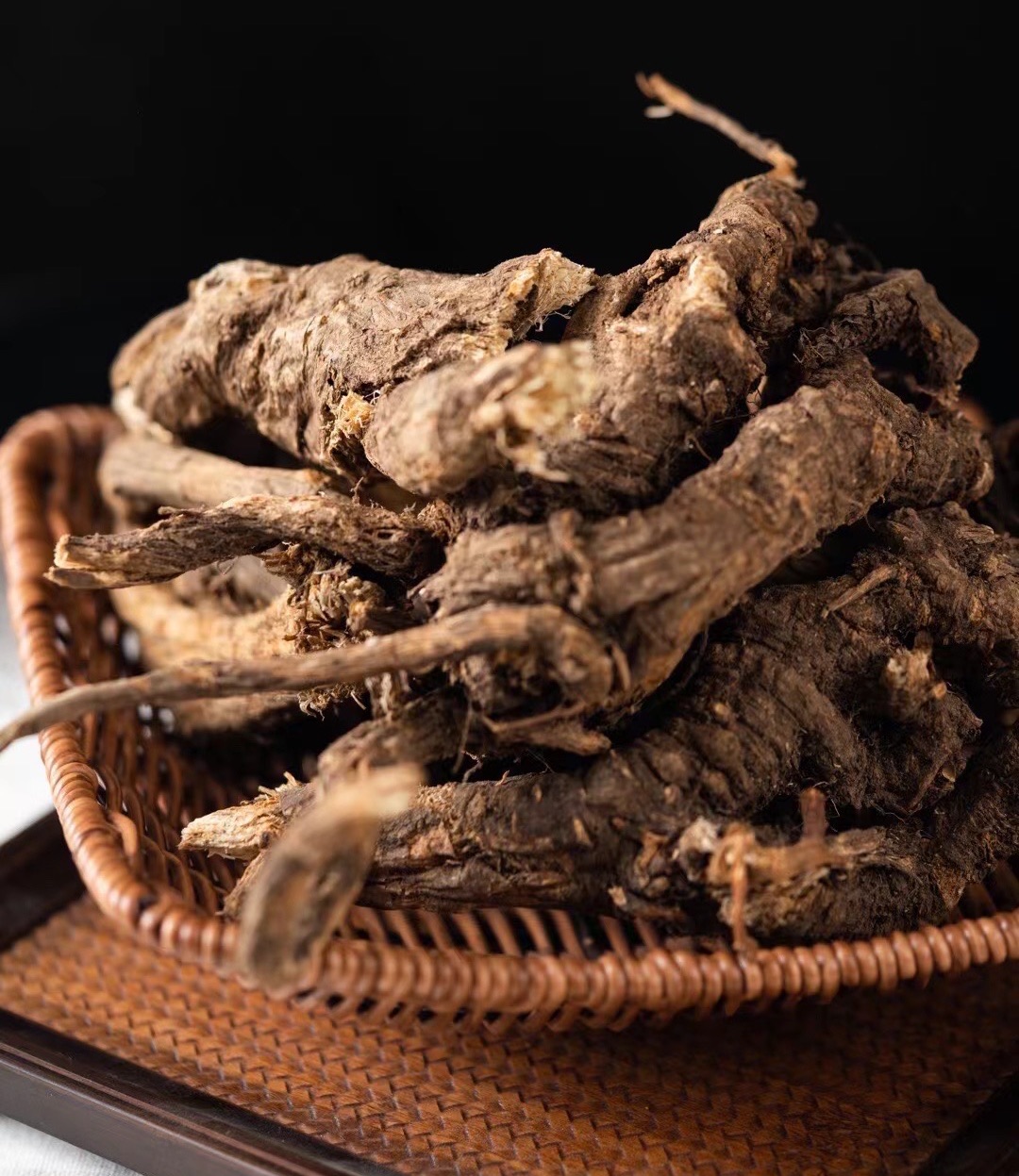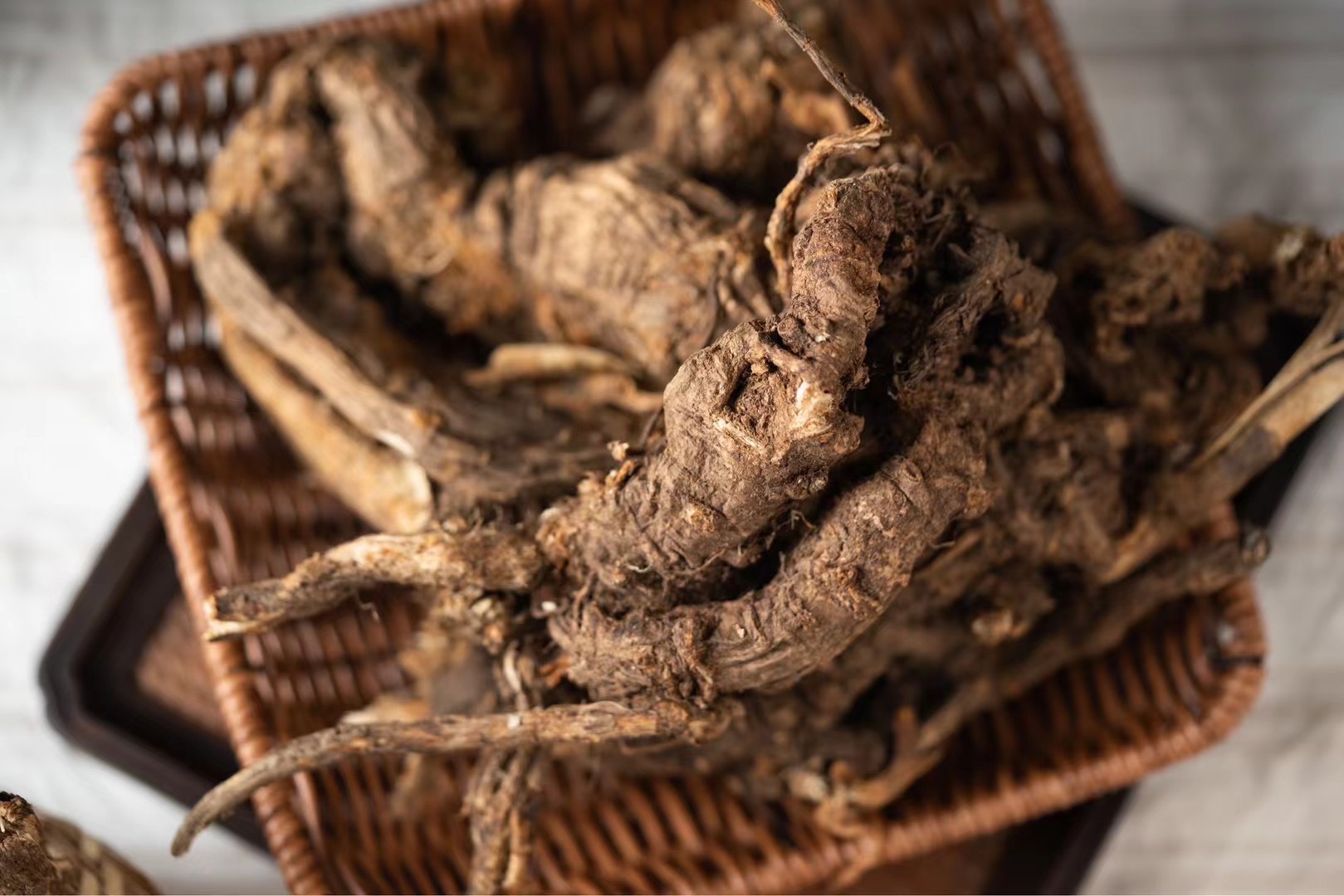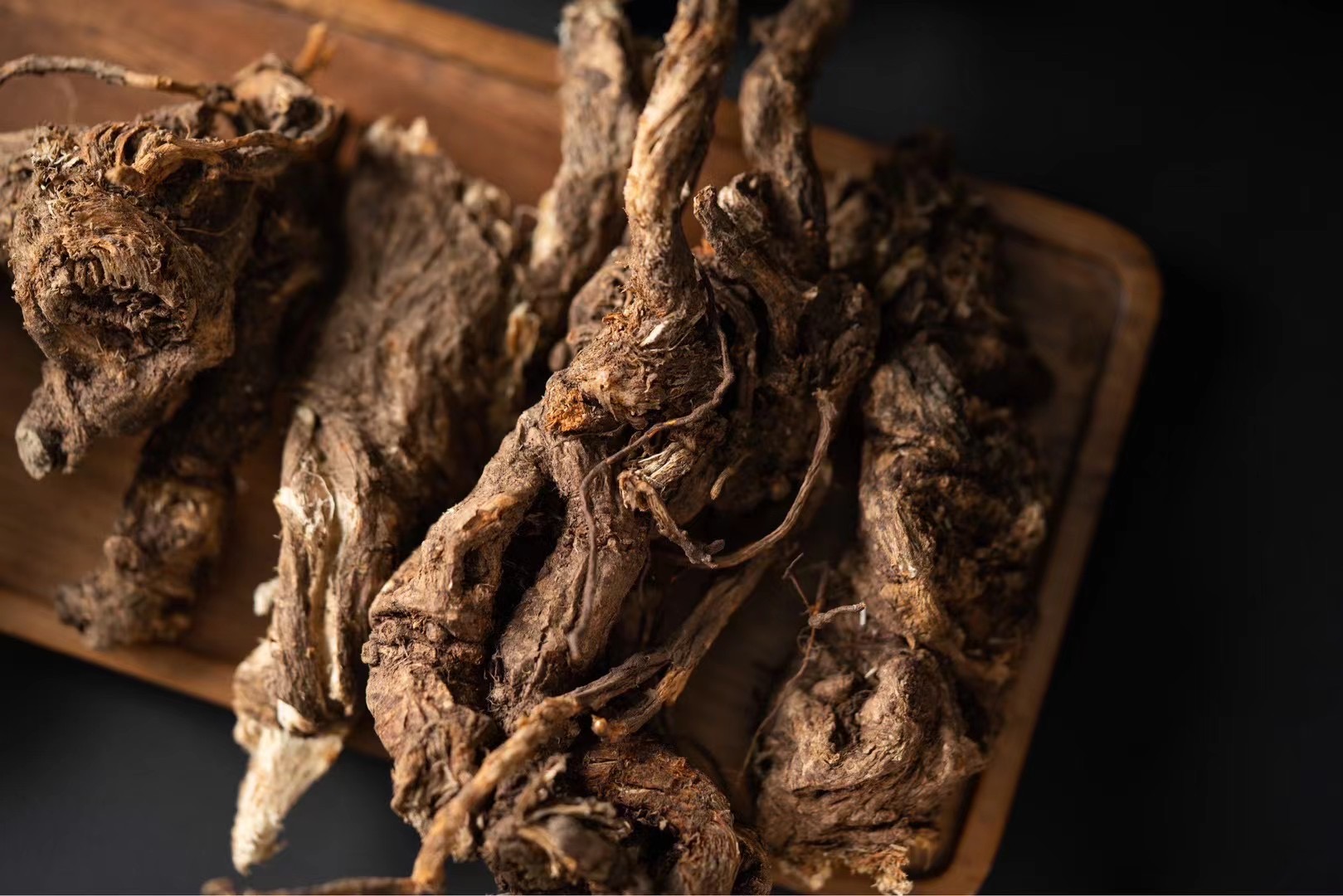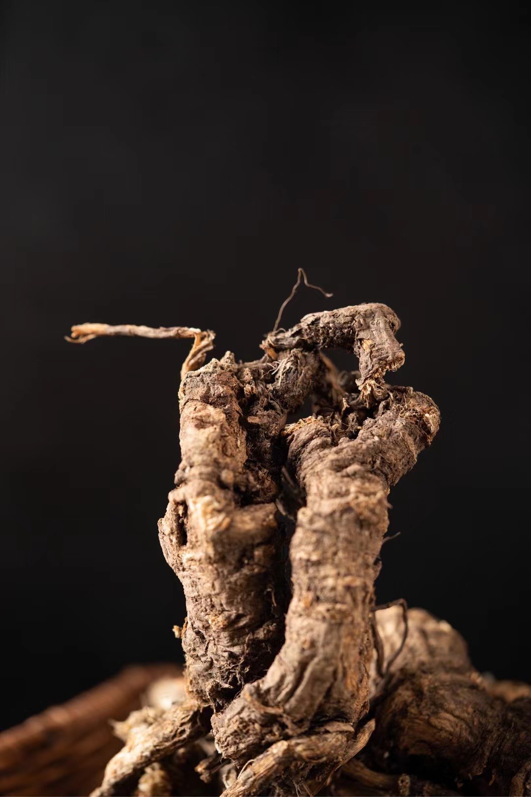 藏当归呈圆锥形,长5~10cm,常有1或数个分枝,以二歧呈“人”字形张开的为常见。根头部直径1~2cm。具横纹,顶端具茎痕,或留有短残茎,茎痕被深褐色鳞片,根外表棕色或黑褐色,具明显的抽沟或纵皱纹,细侧根多已切除。质坚硬,较粗者不易折断,断面黄白色,可见棕色斑点。