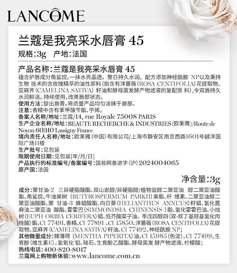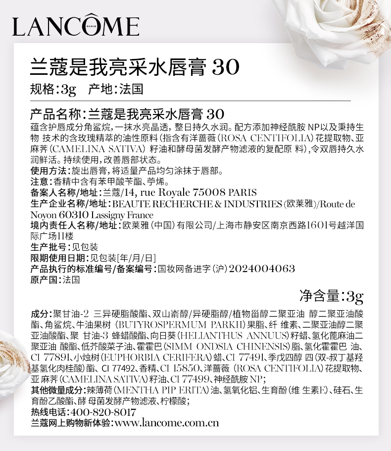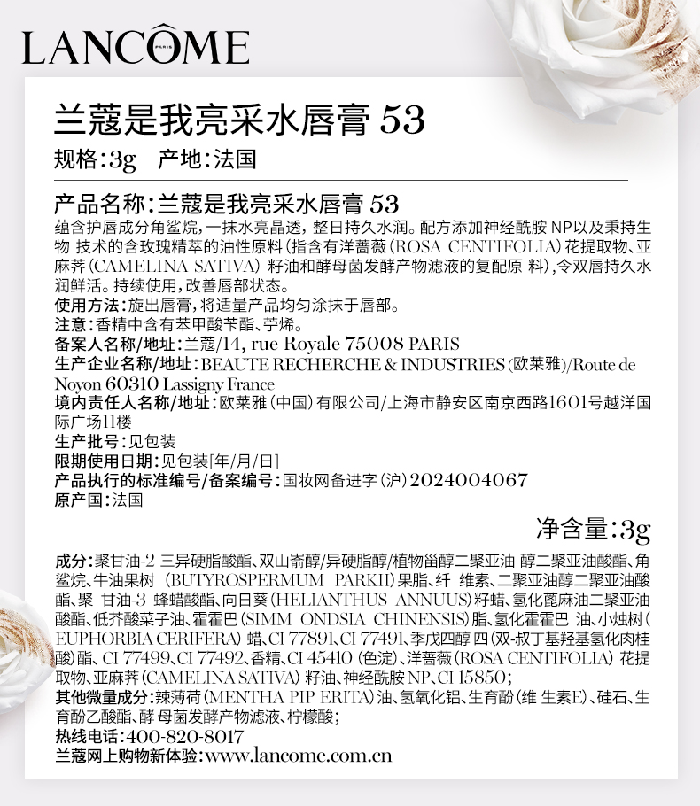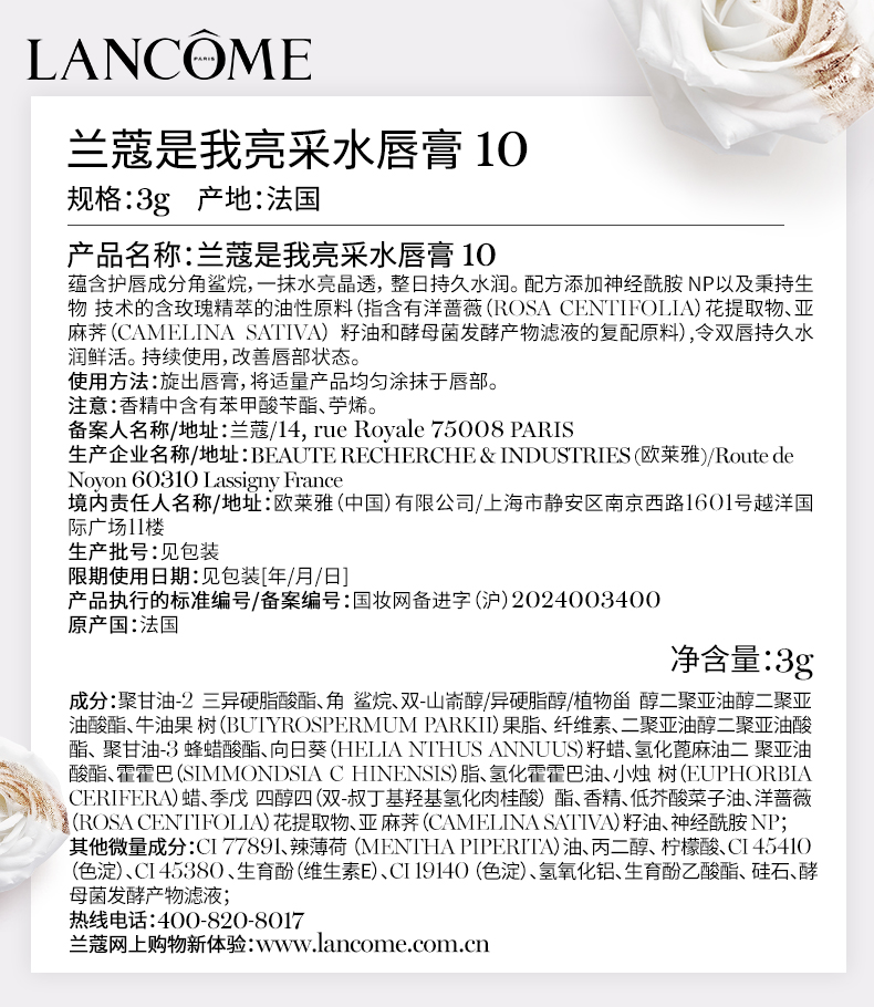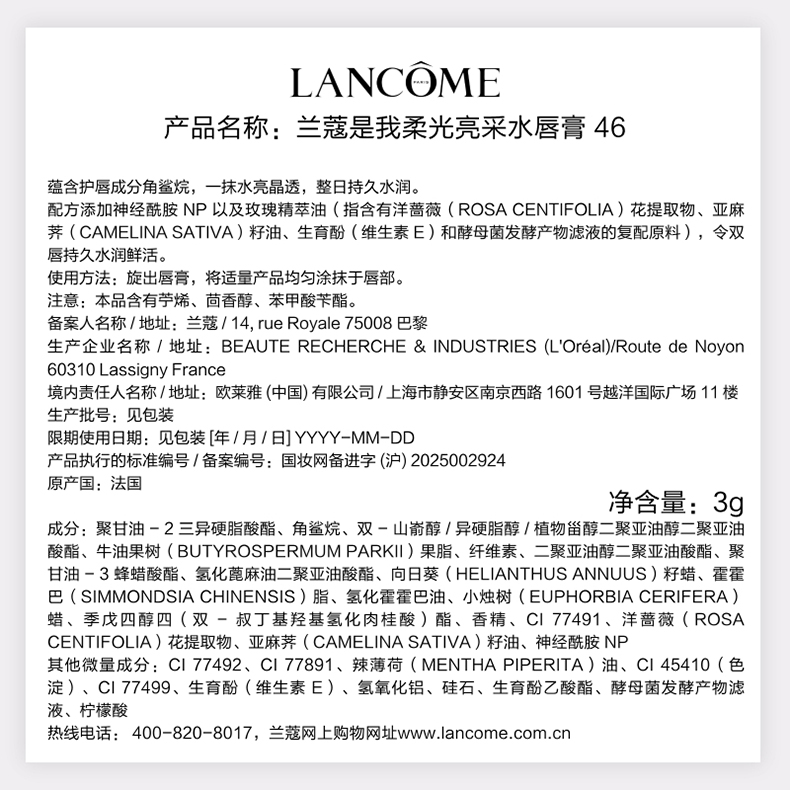 【订单实付低于299元,不发货】兰蔻 是我亮采水唇膏系列