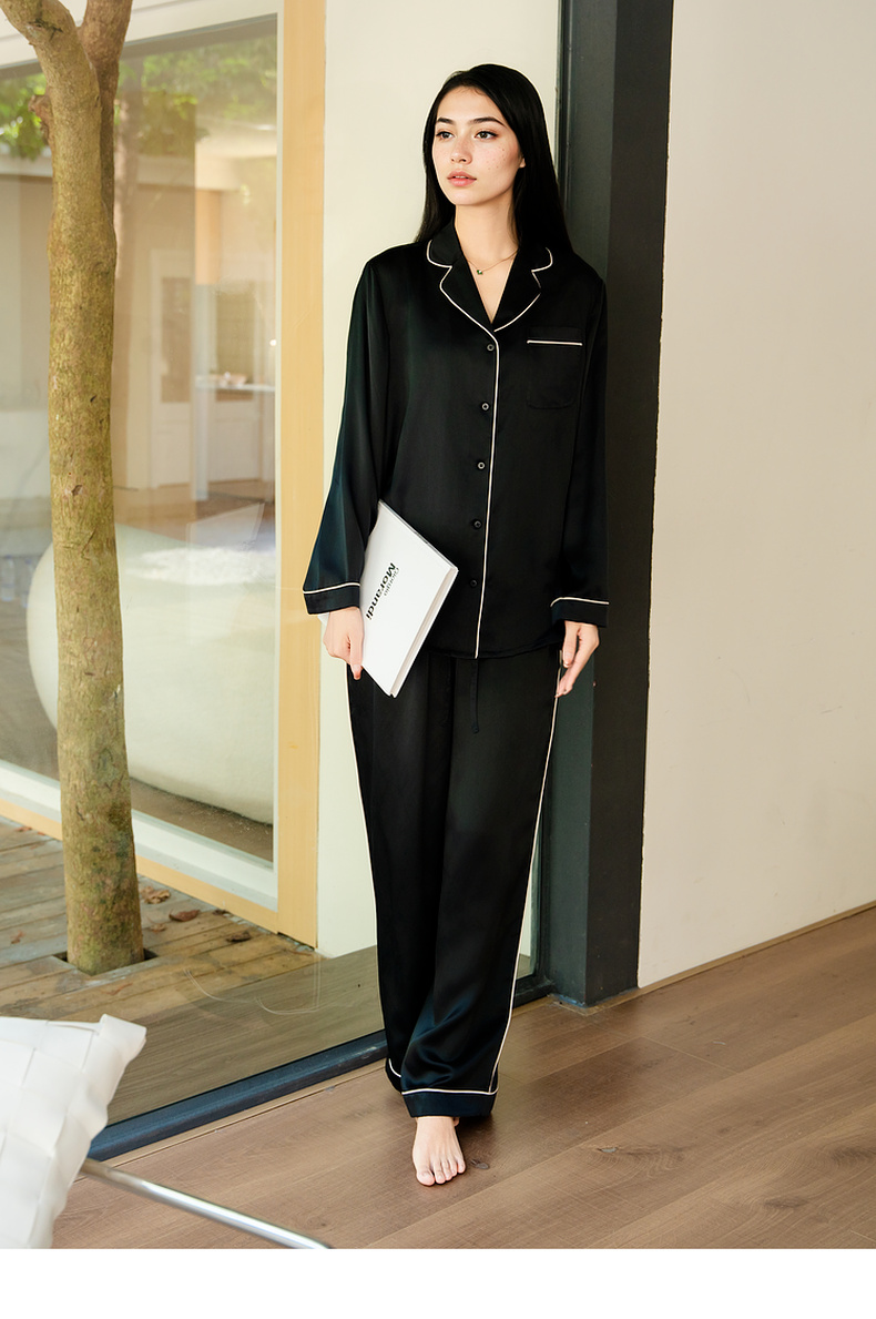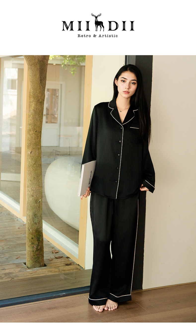 谜底桑蚕丝阔腿裤女士2025秋新款真丝顺滑亲肤宽松长裤25CMK5005