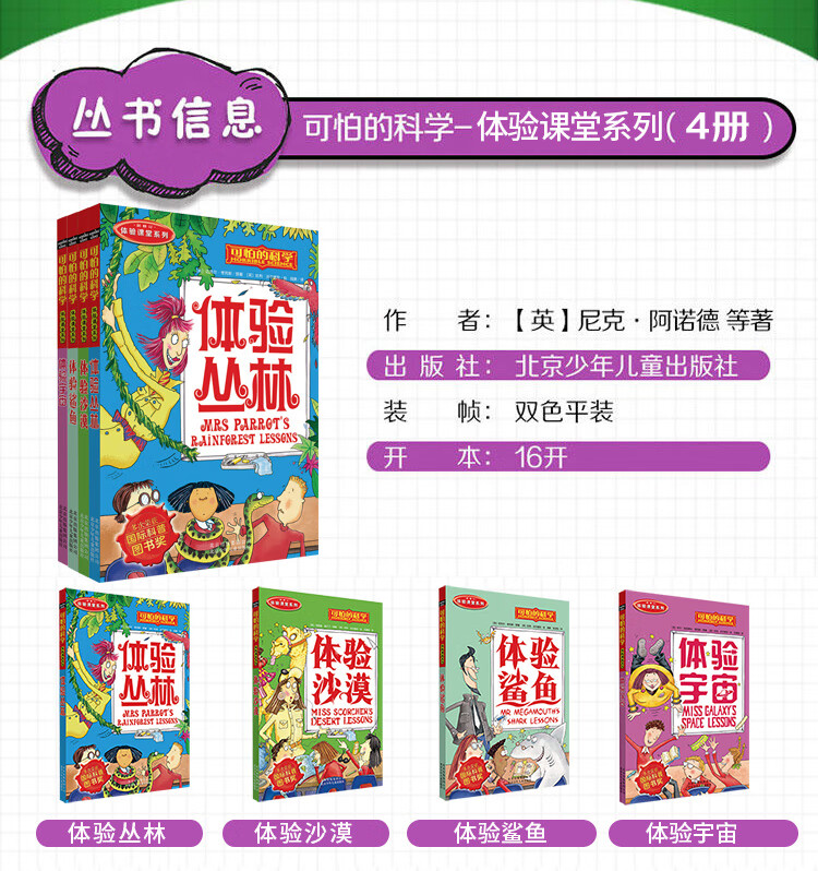 可怕的科学体验课堂共4册体验宇宙鲨鱼沙漠丛林7-15岁中小学生课外书青少年百科全书漫画版