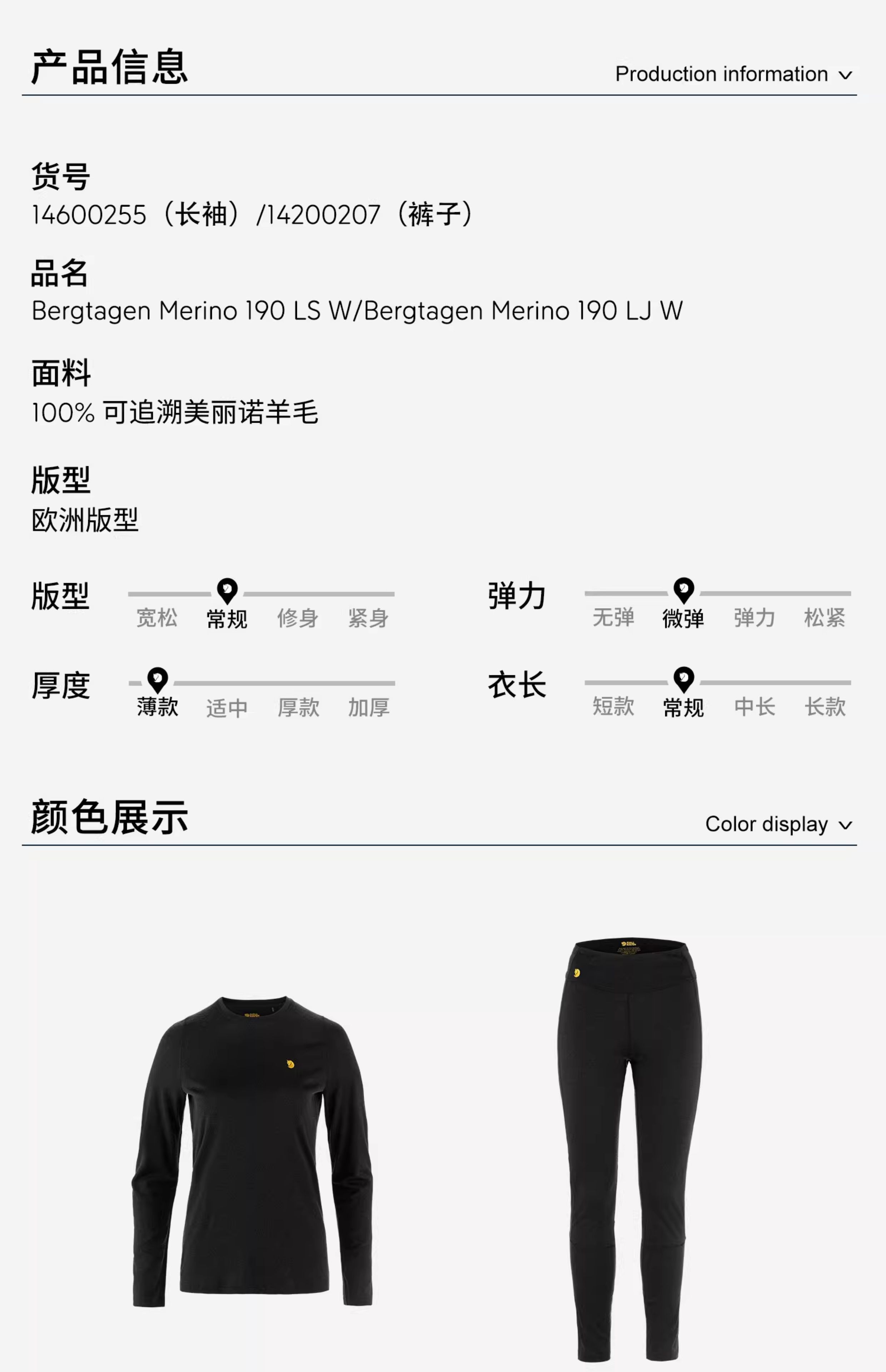 北极狐 100%美利奴羊毛长袖T恤 Bergtagen滑雪保暖打底衫14600255