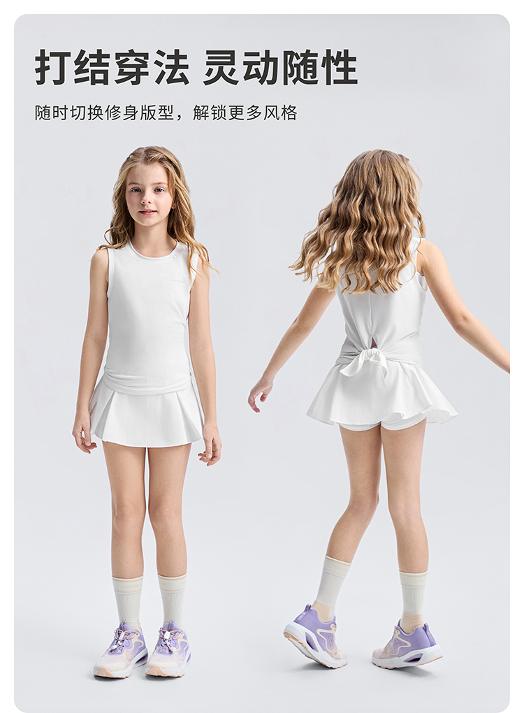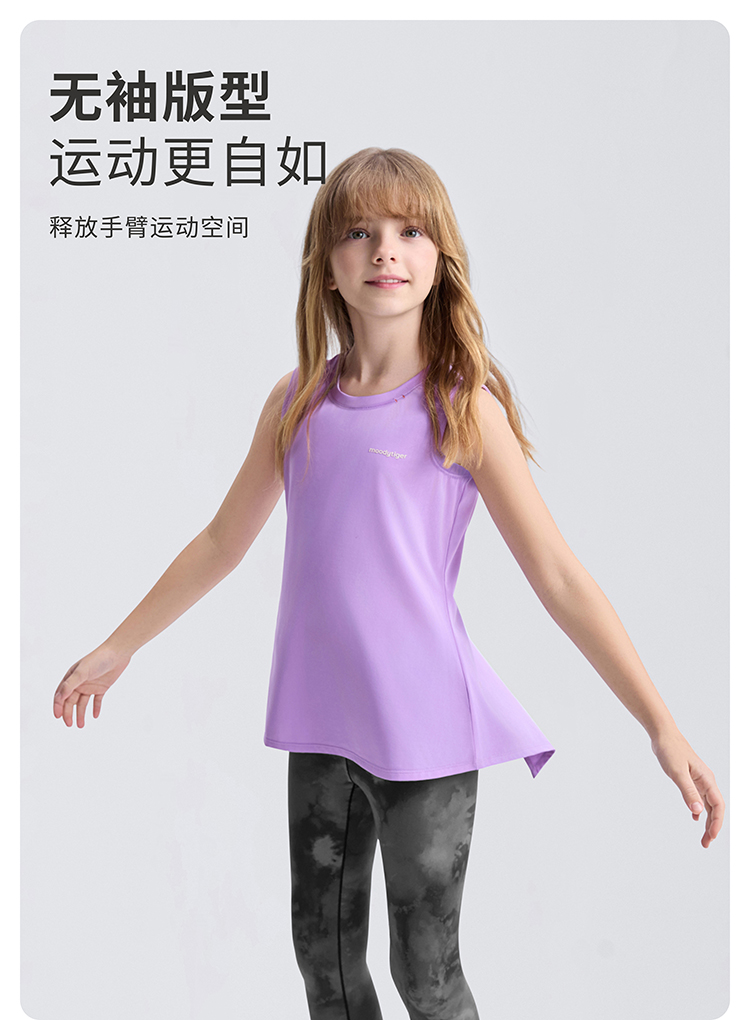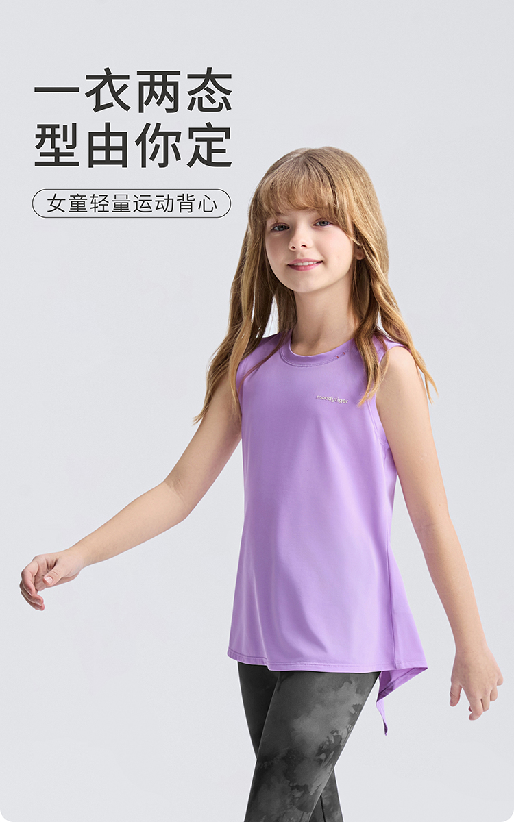 【DR暑假】moodytiger女童T恤25夏新轻量吸湿速干打结两穿无袖背心52211103