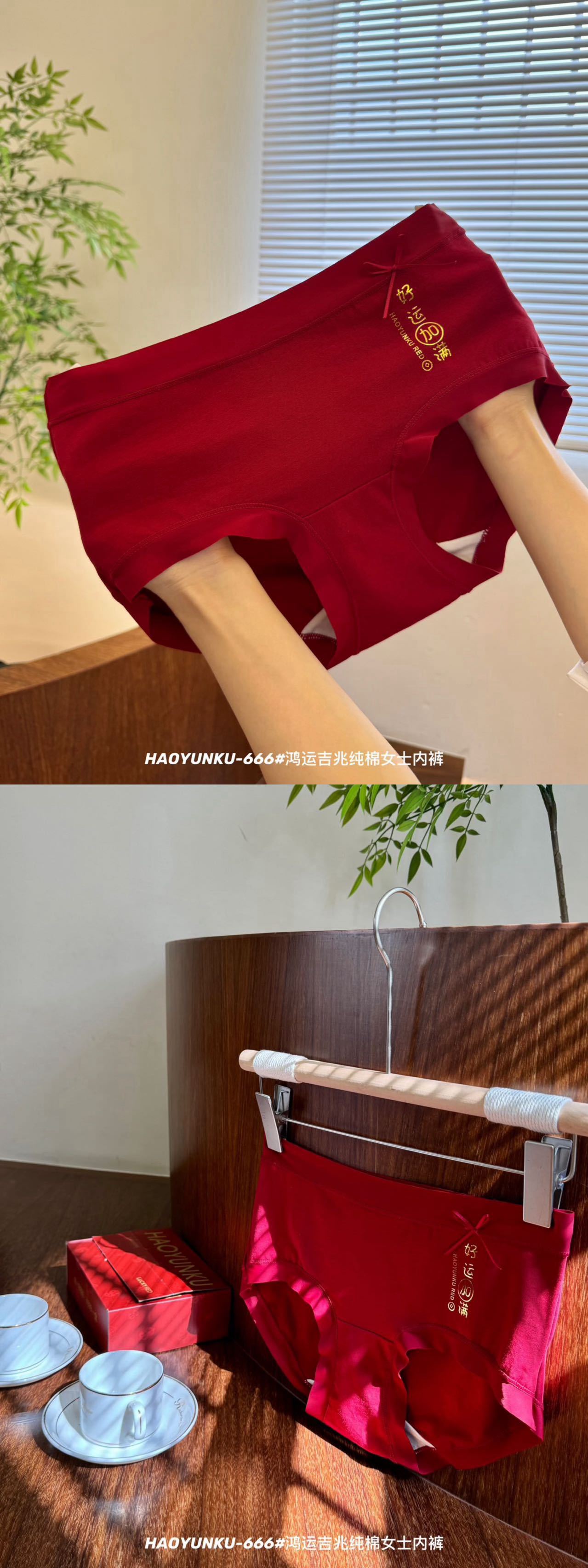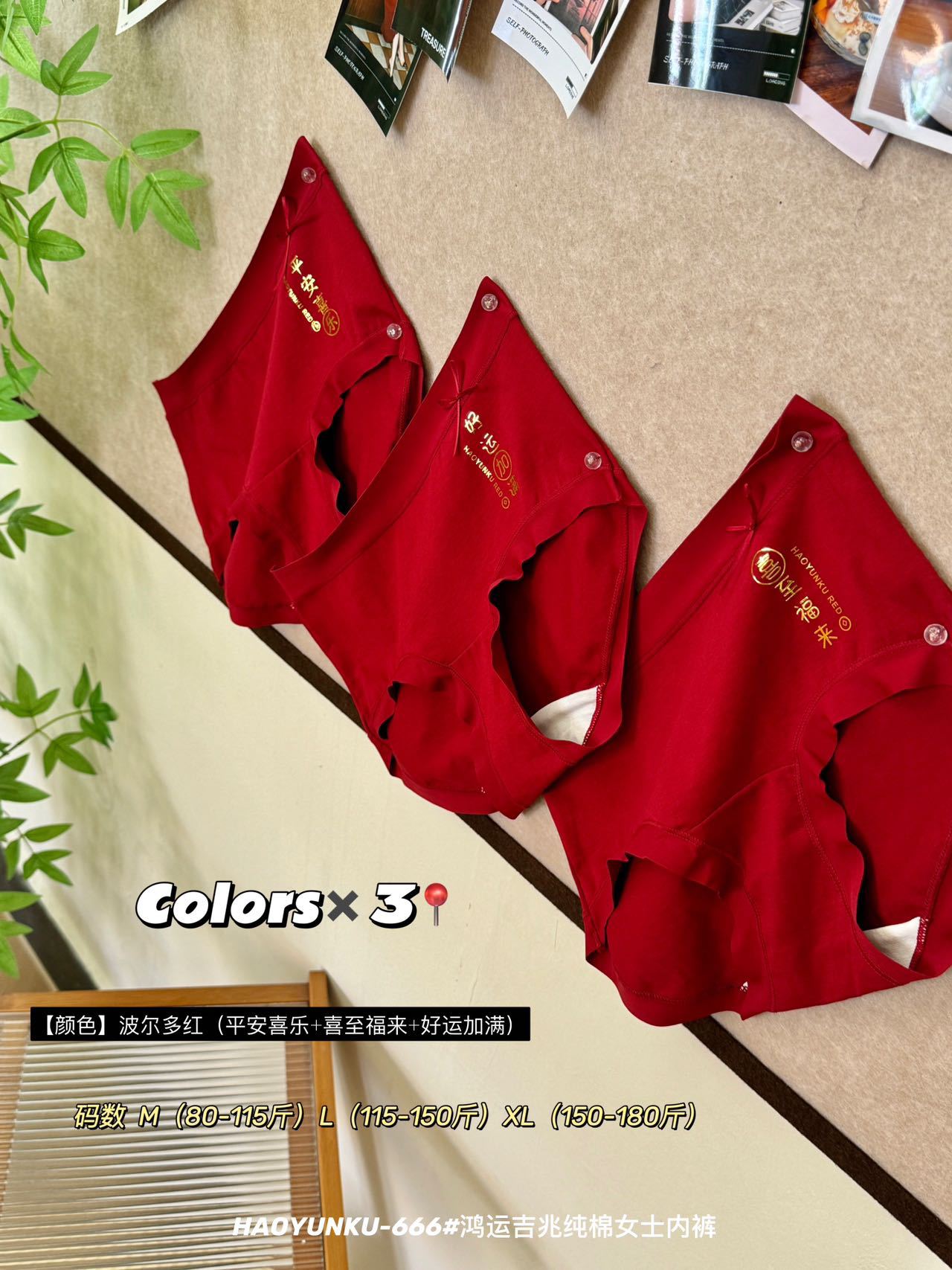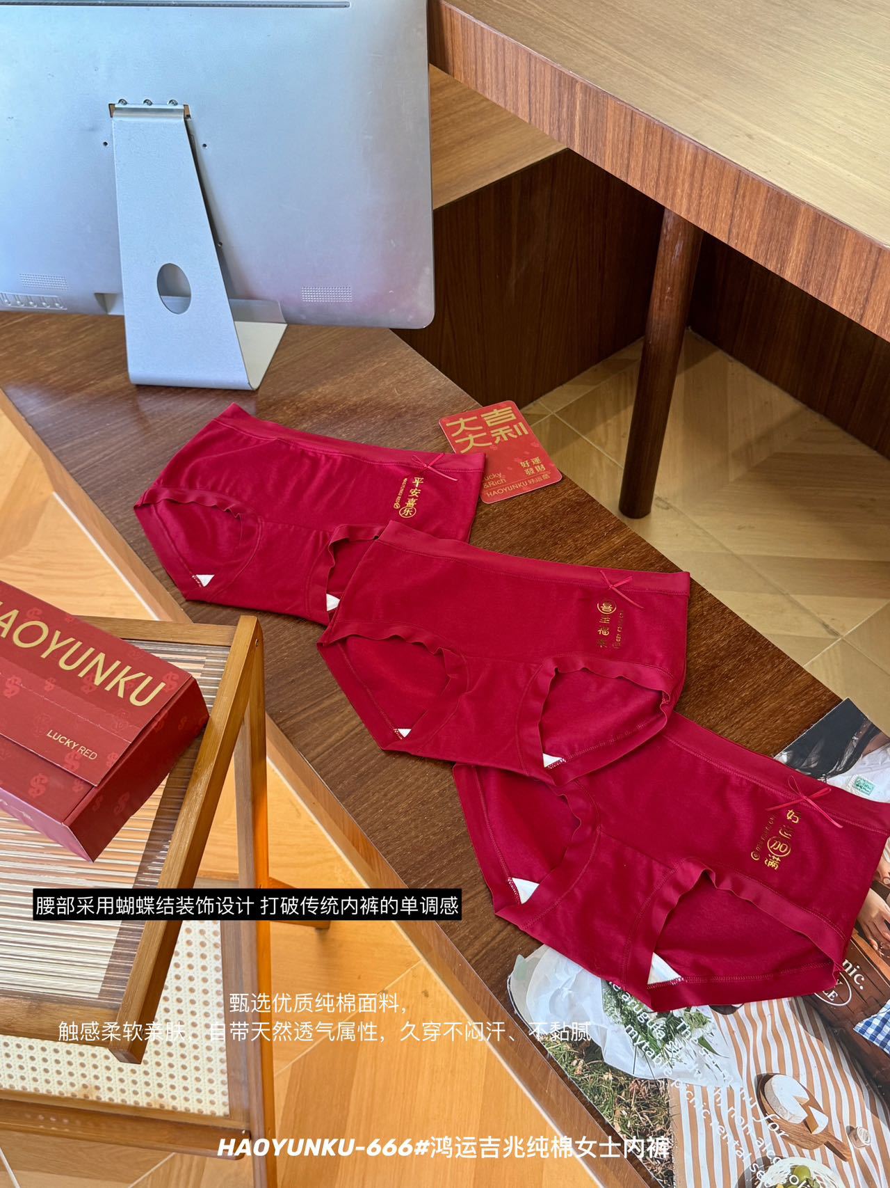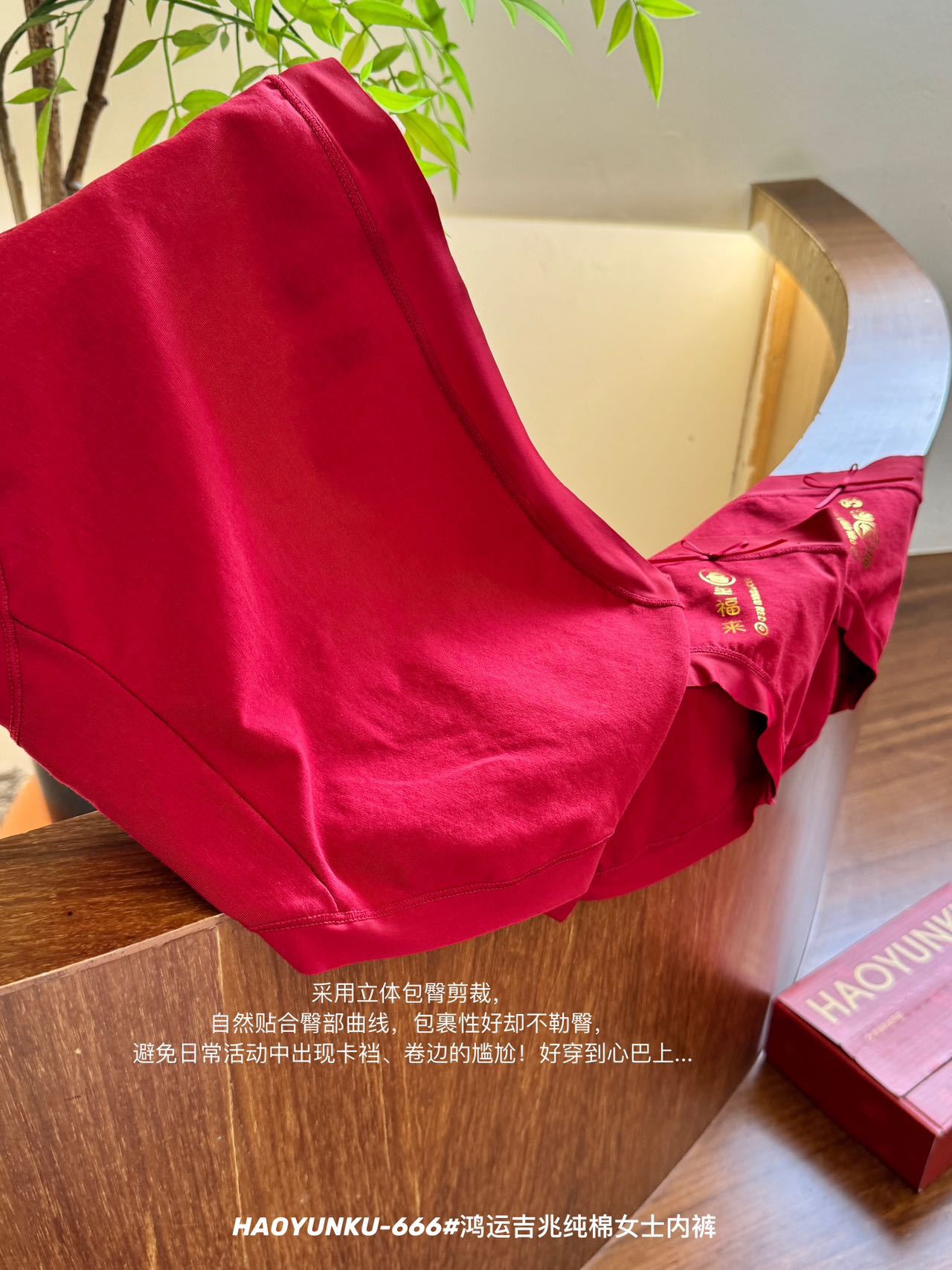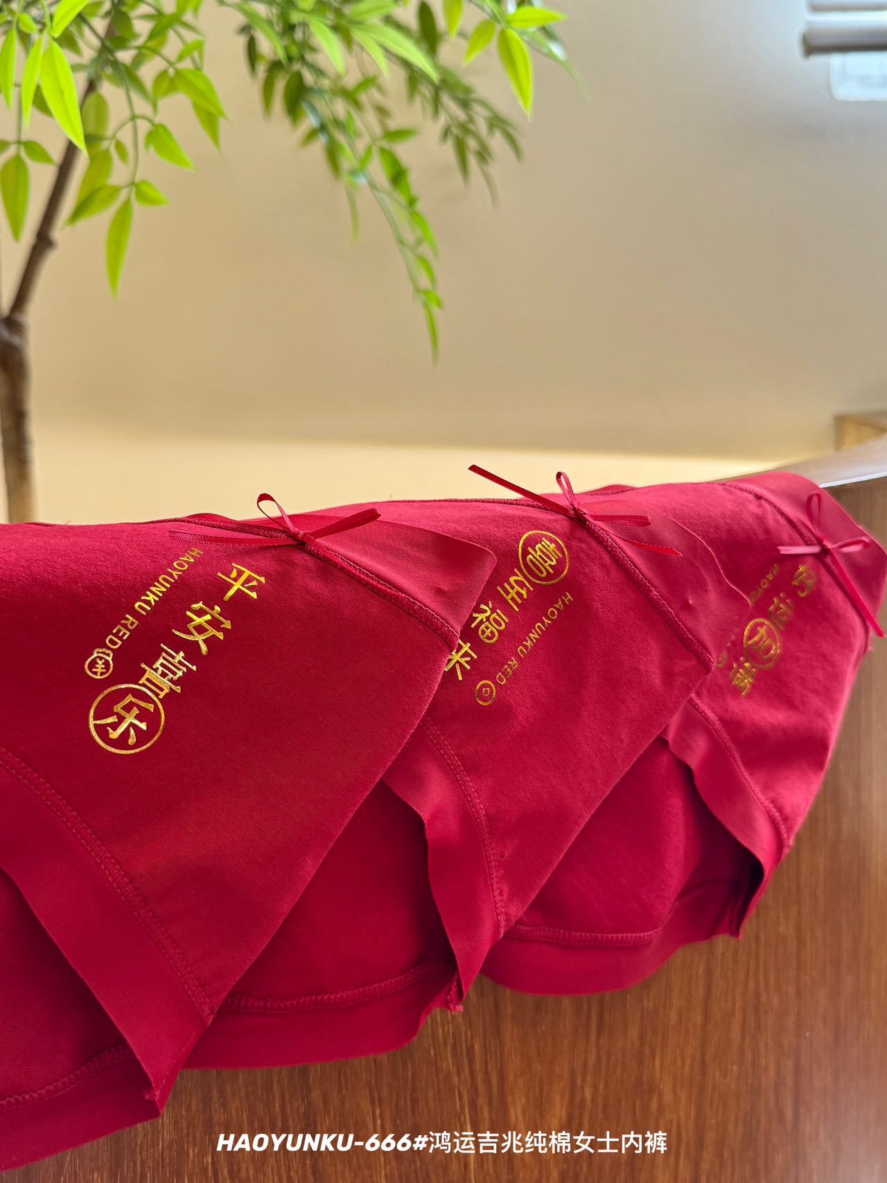 新年元旦【鸿运吉兆❗️3件礼盒装纯棉内裤】666#女生裸感无痕舒适透气内裤 本命年大红女士三角裤