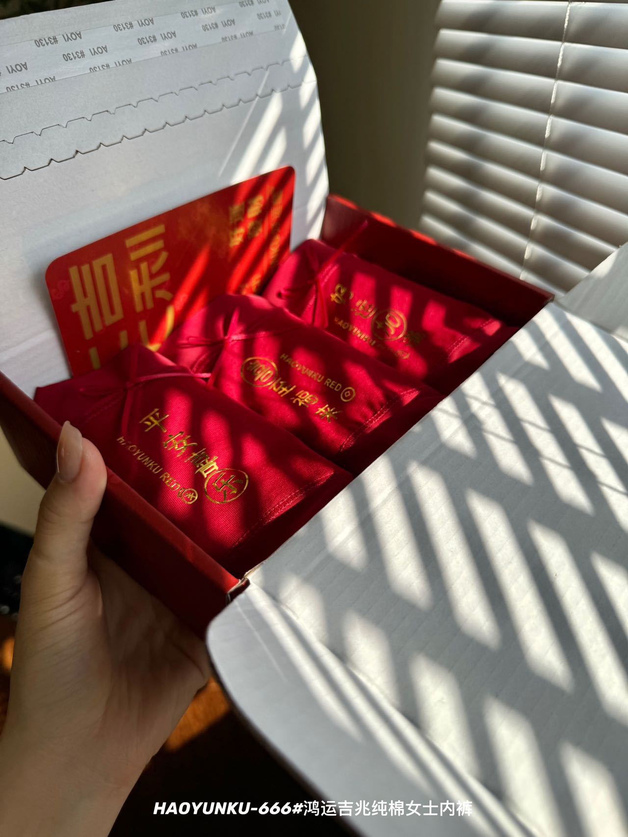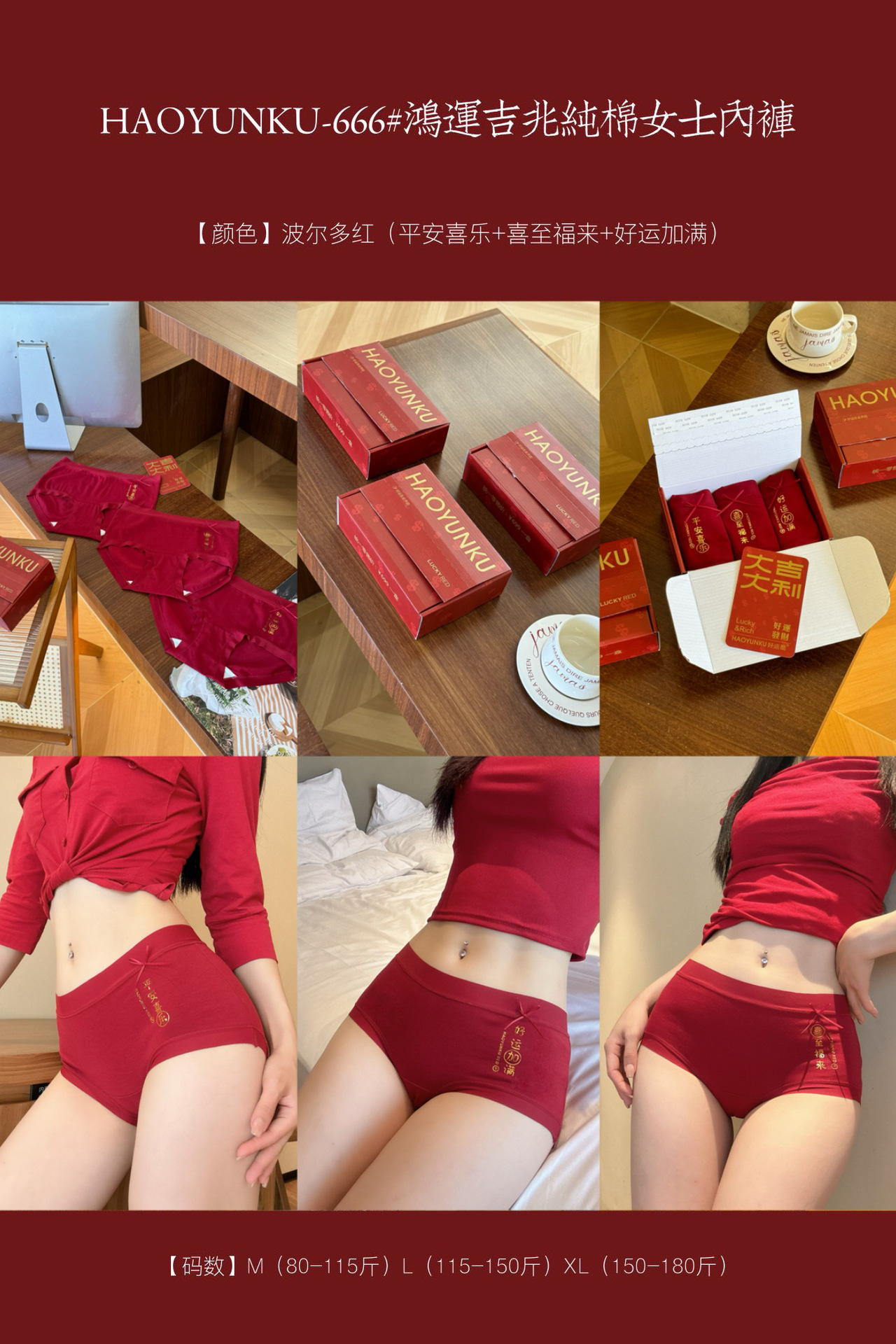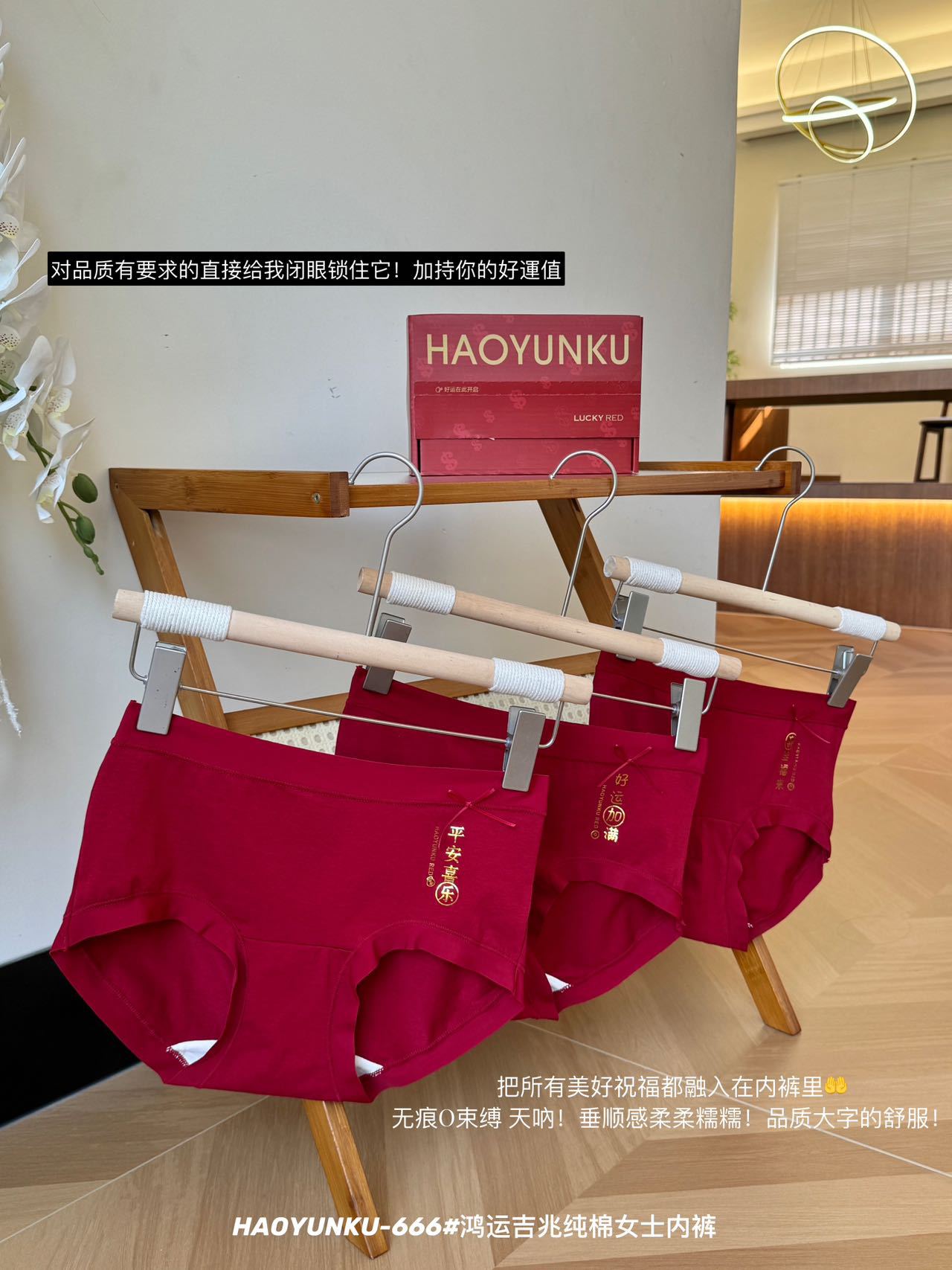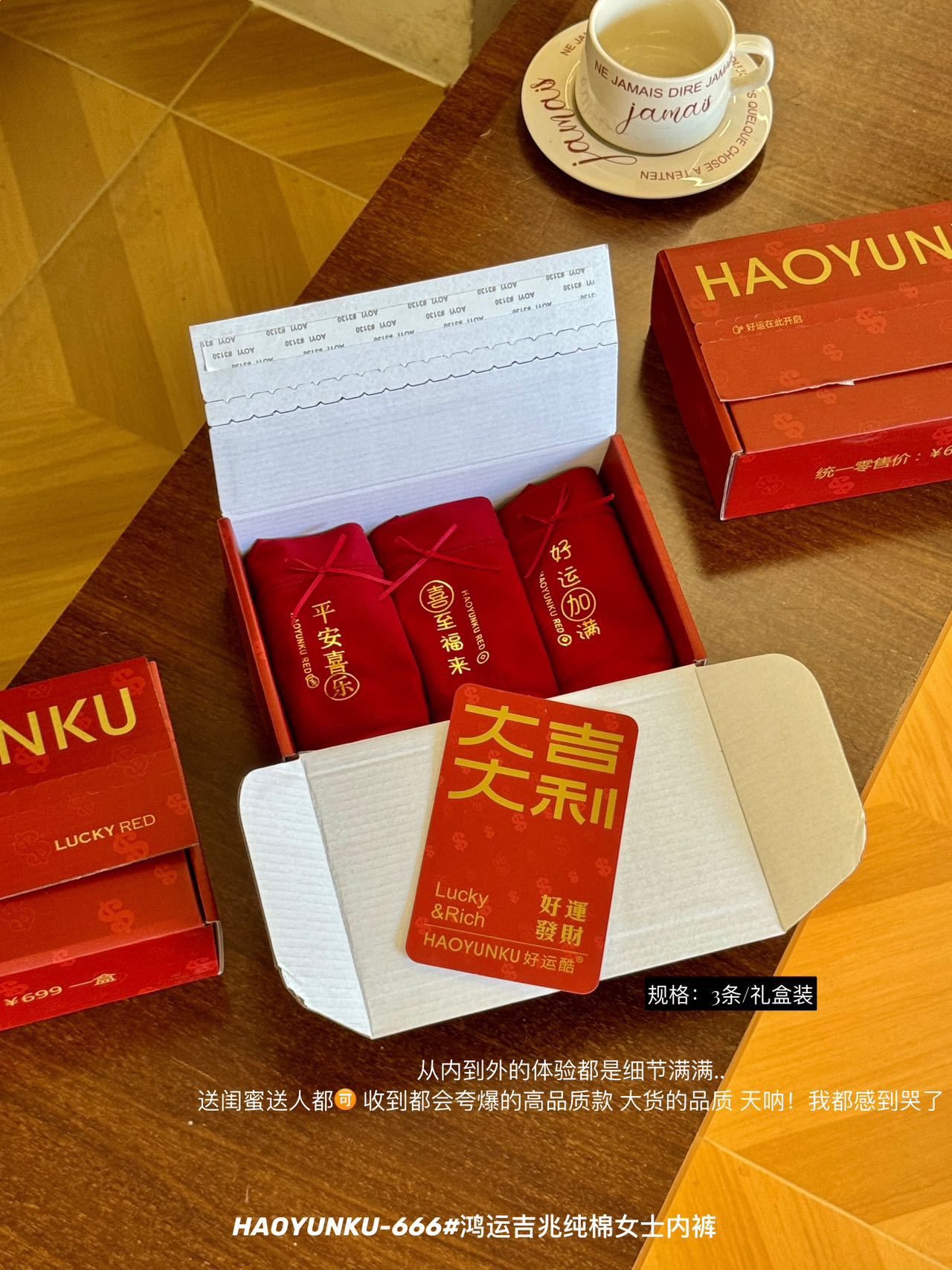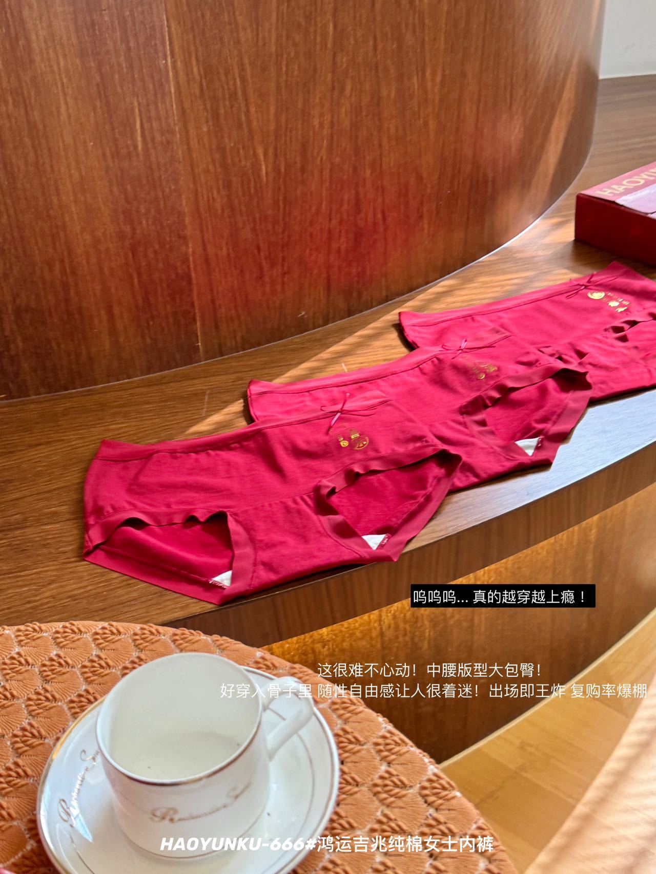 新年元旦【鸿运吉兆❗️3件礼盒装纯棉内裤】666#女生裸感无痕舒适透气内裤 本命年大红女士三角裤