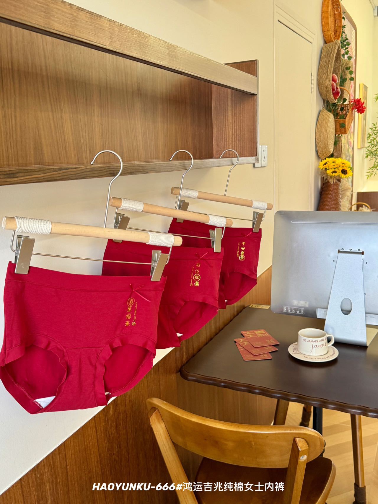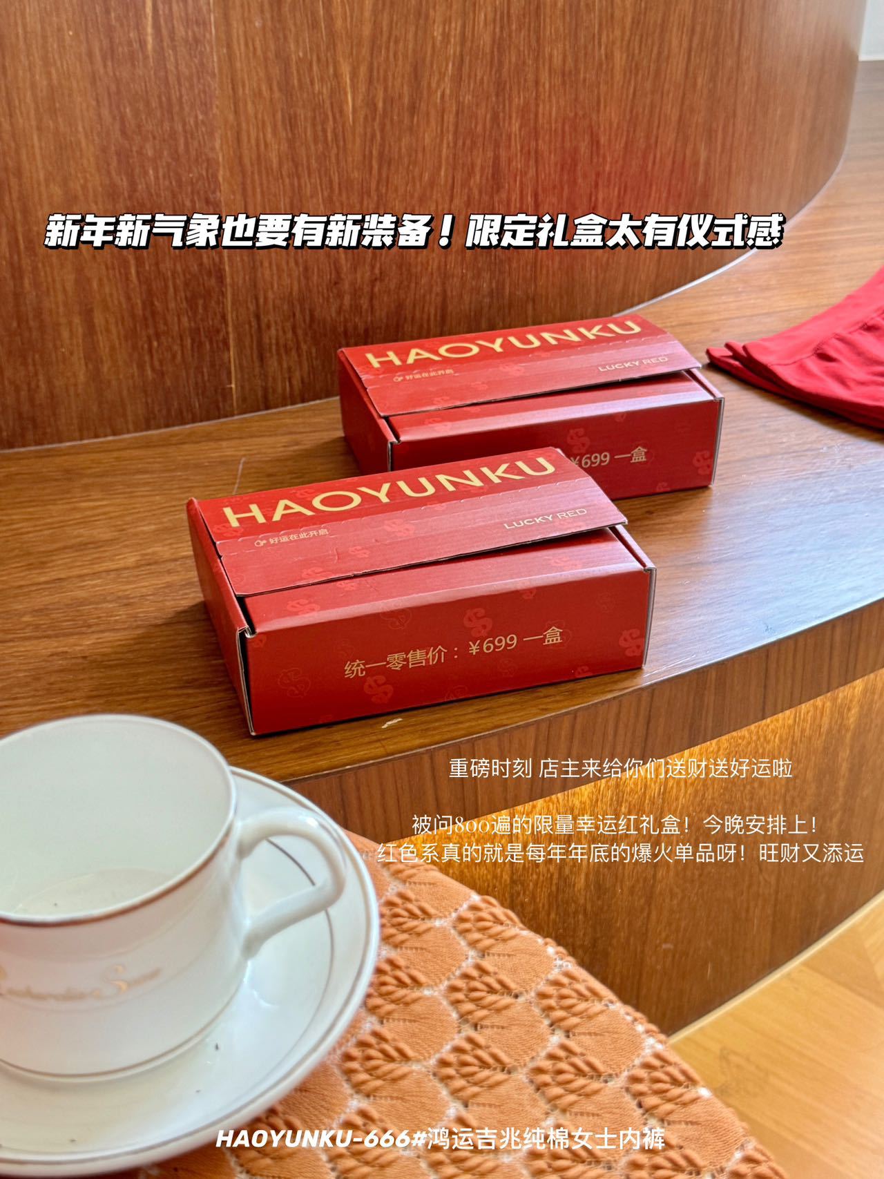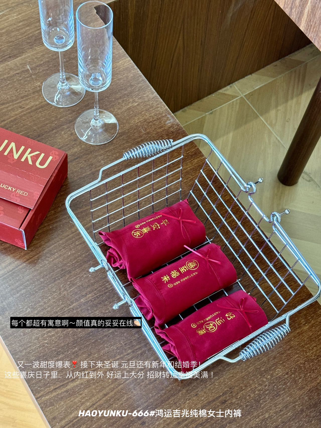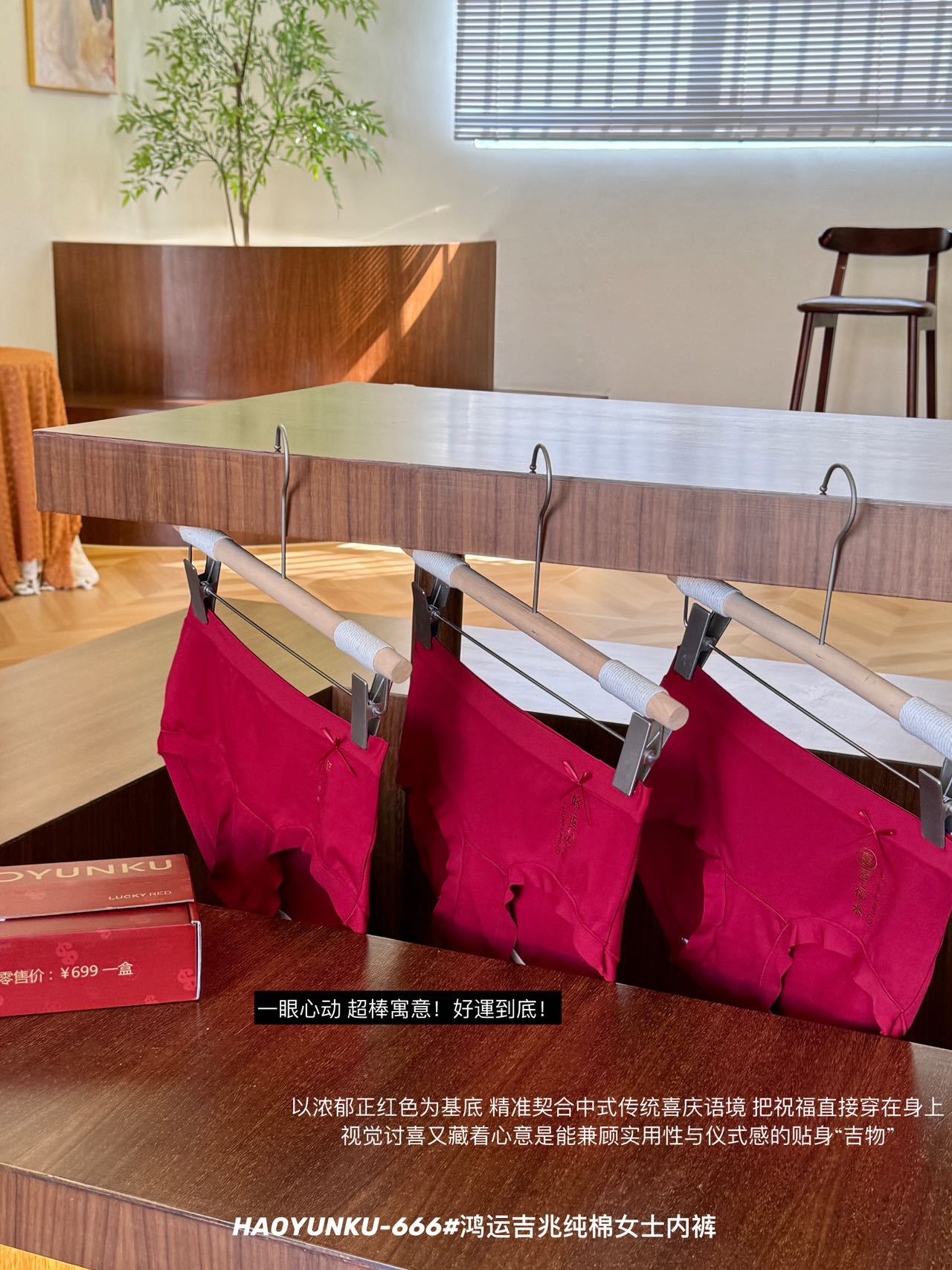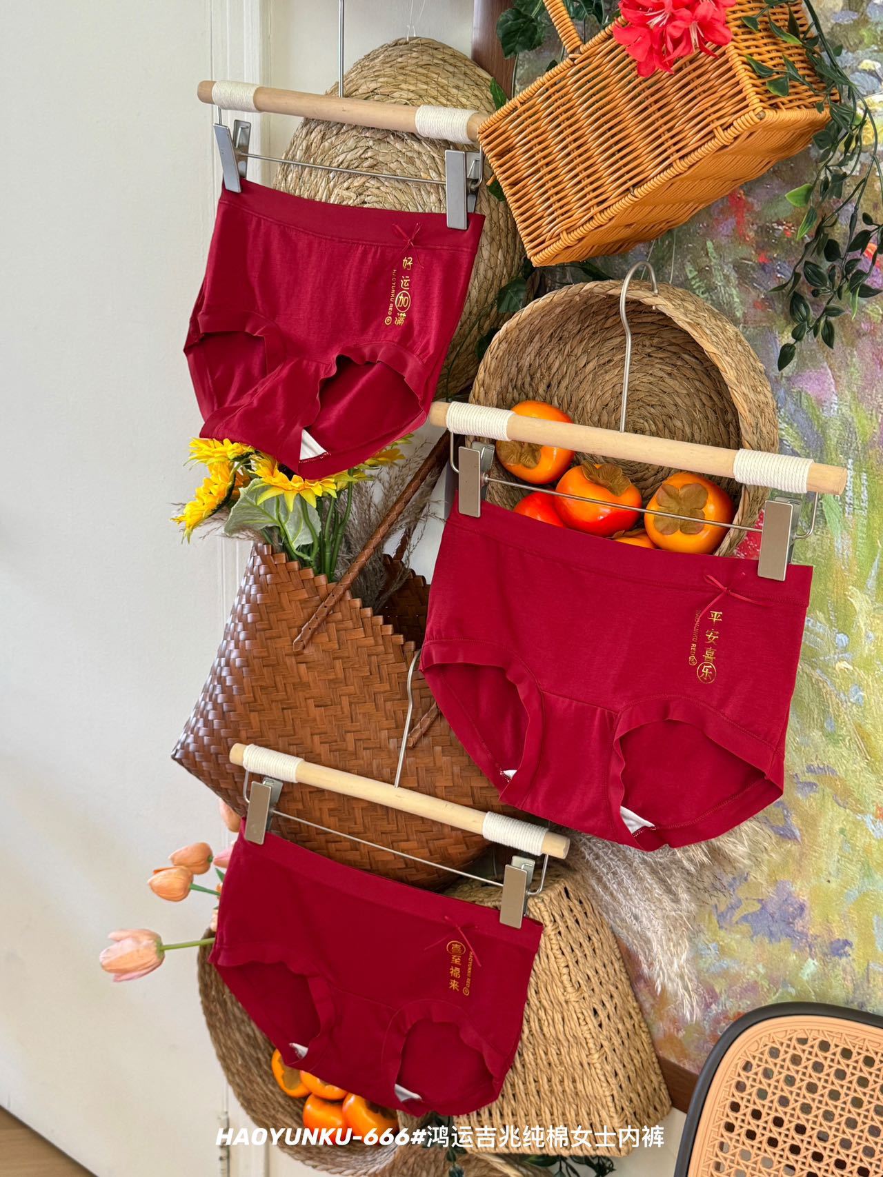 新年元旦【鸿运吉兆❗️3件礼盒装纯棉内裤】666#女生裸感无痕舒适透气内裤 本命年大红女士三角裤