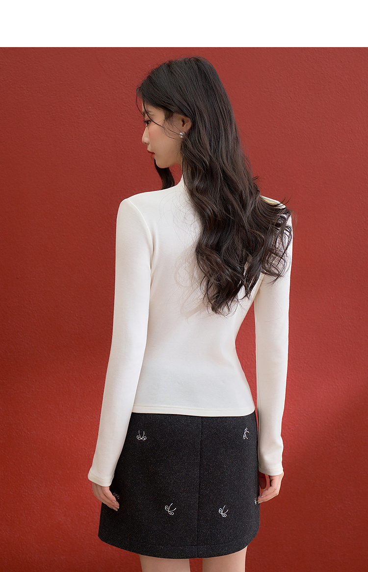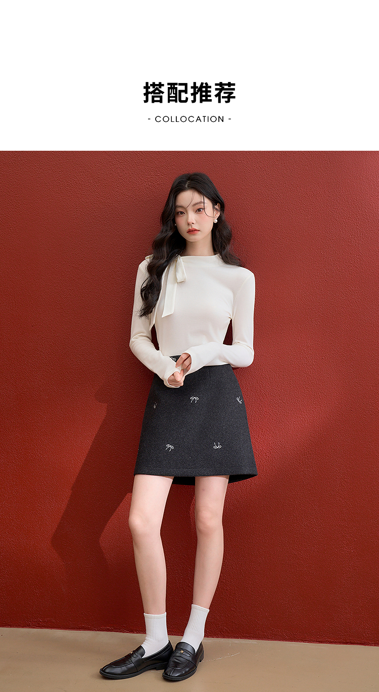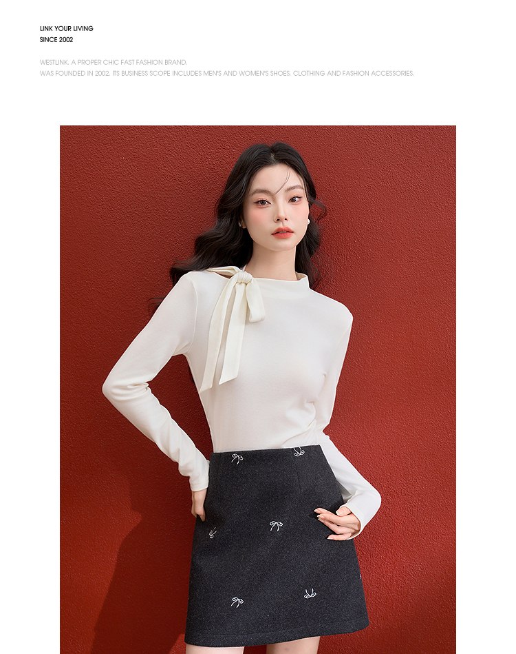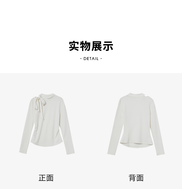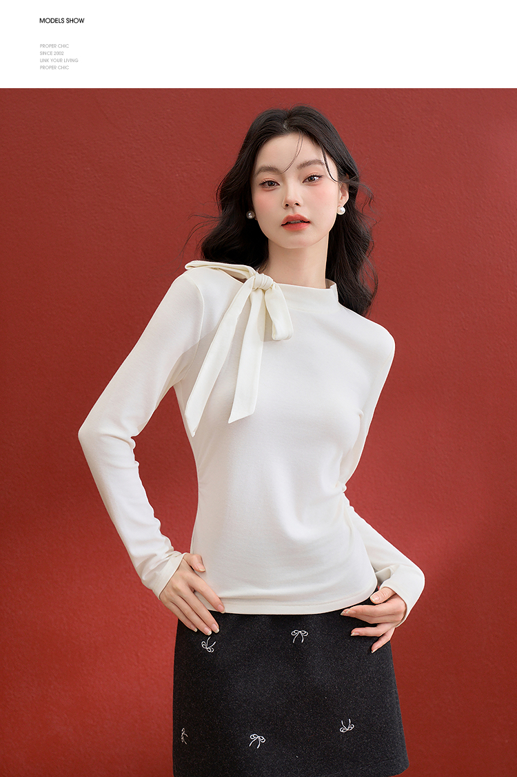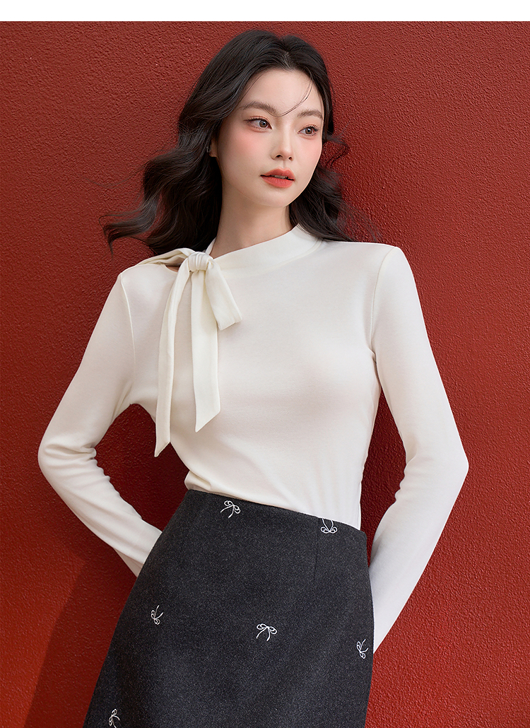 西遇氛围感蝴蝶结长袖T恤女冬季新款修身显瘦针织打底衫上衣V3955367
