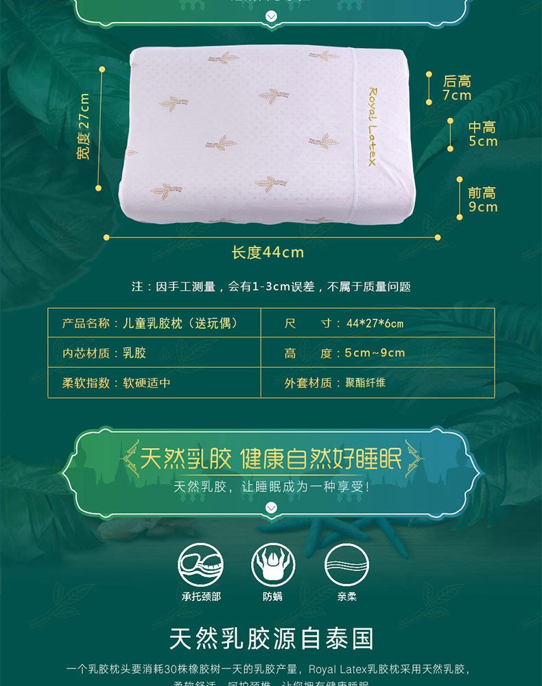 ROYAL LATEX 皇家儿童乳胶枕头1-6岁适用(送玩偶)44*27*6cm 泰国