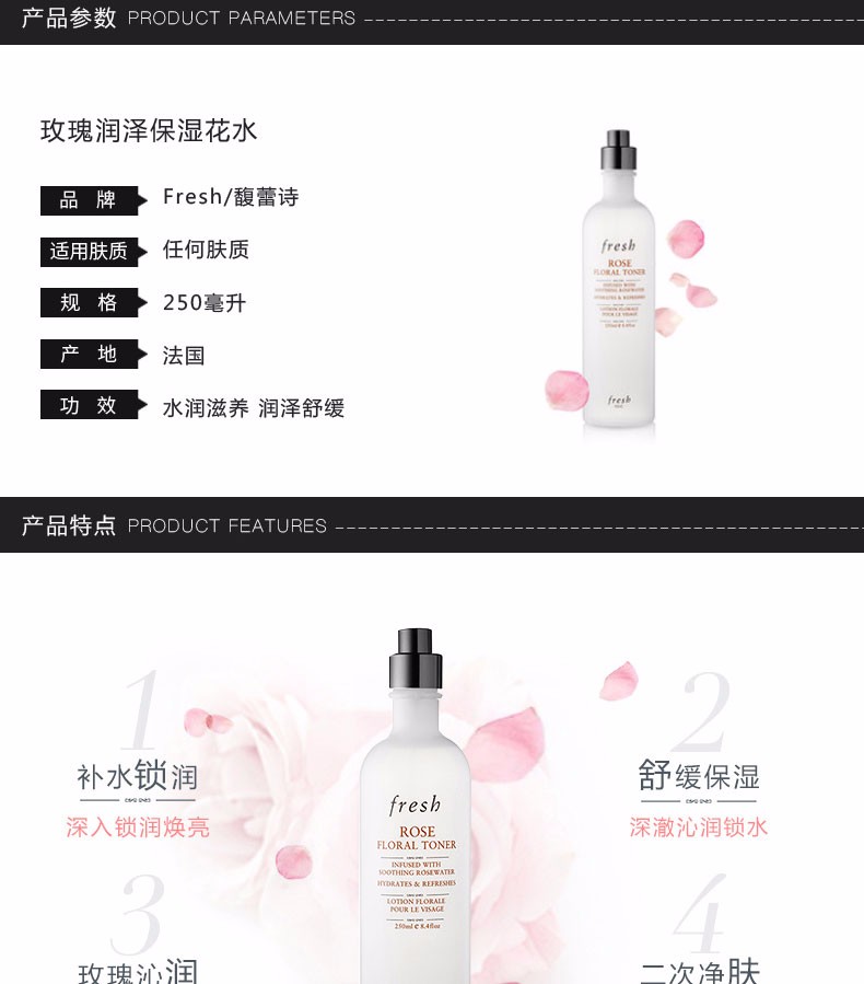 法国 FRESH馥蕾诗 玫瑰水爽肤水 250ML 包装随机