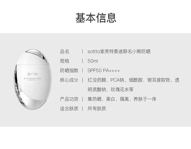 索肤特&泰迪联名款小熊防晒SPF50持久不脱妆