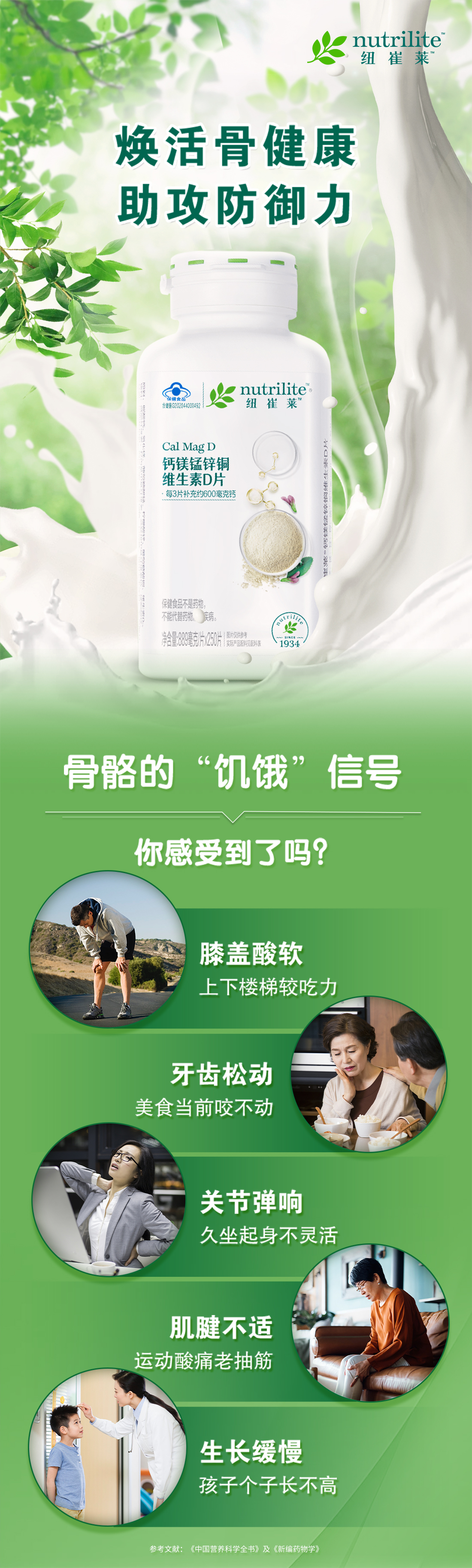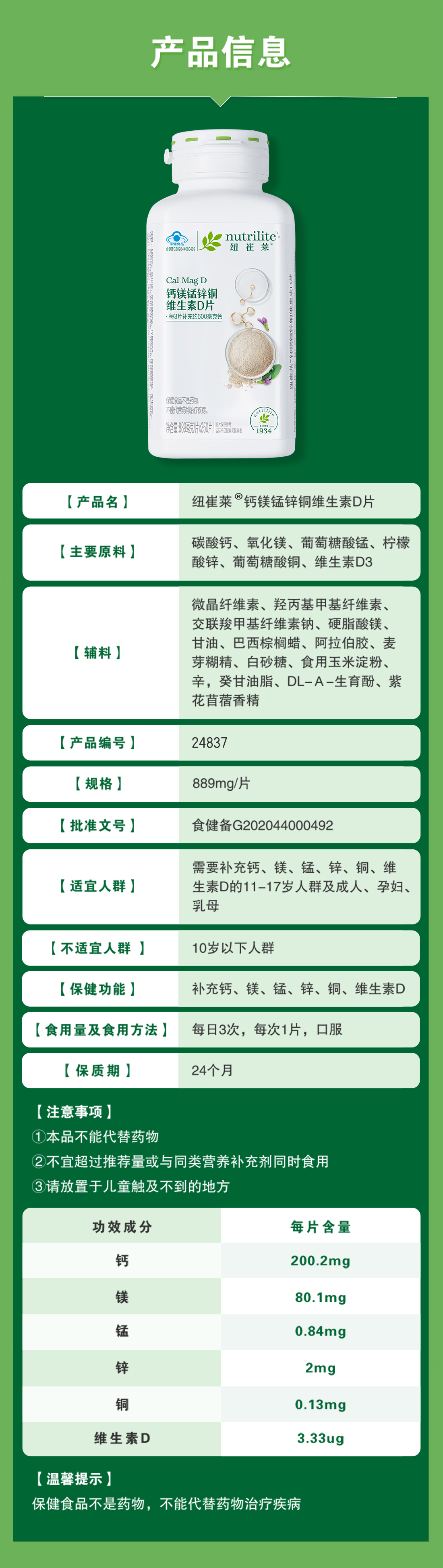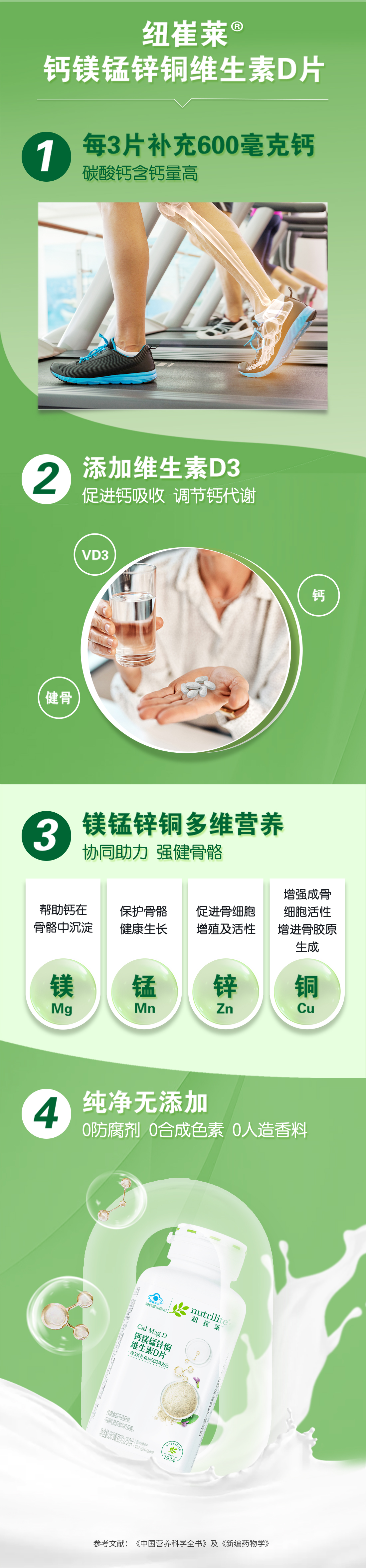 安利纽崔莱钙镁锰锌铜维生素D片250片[每3片补充600mg高钙]