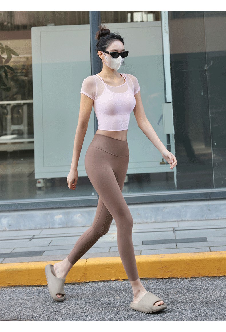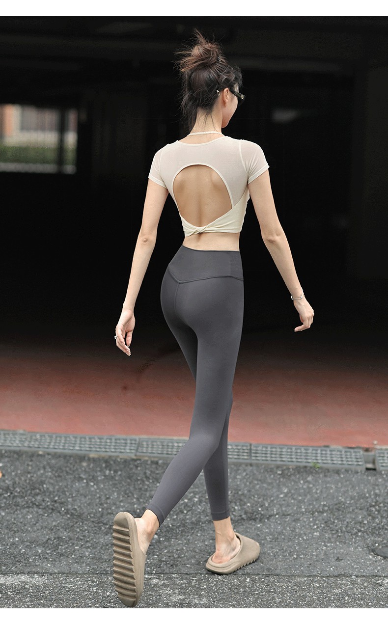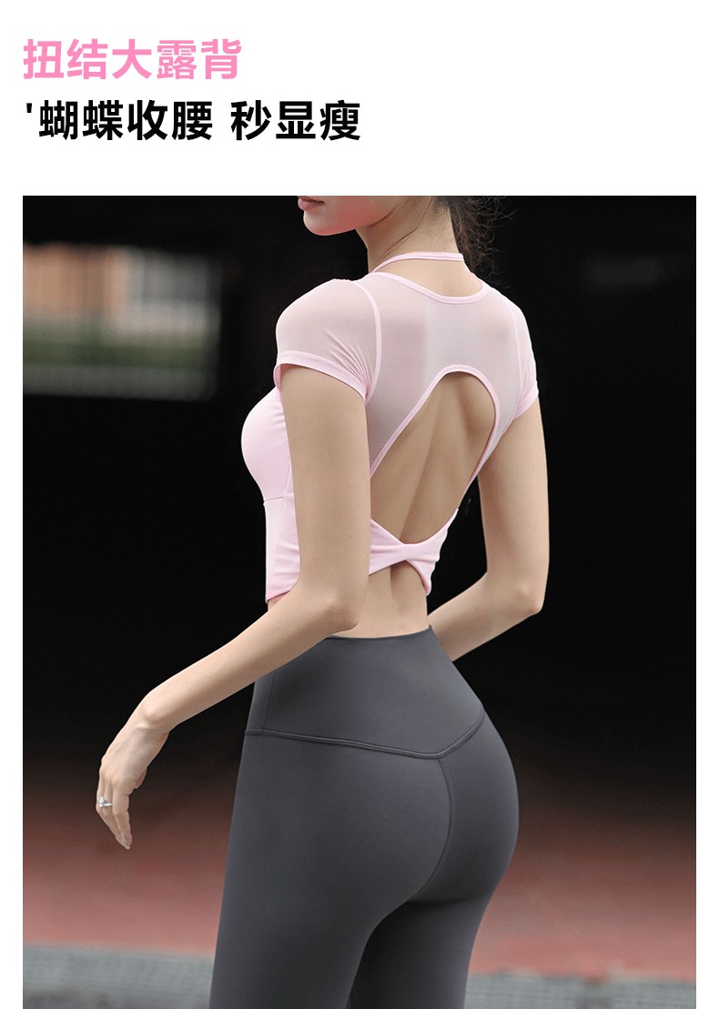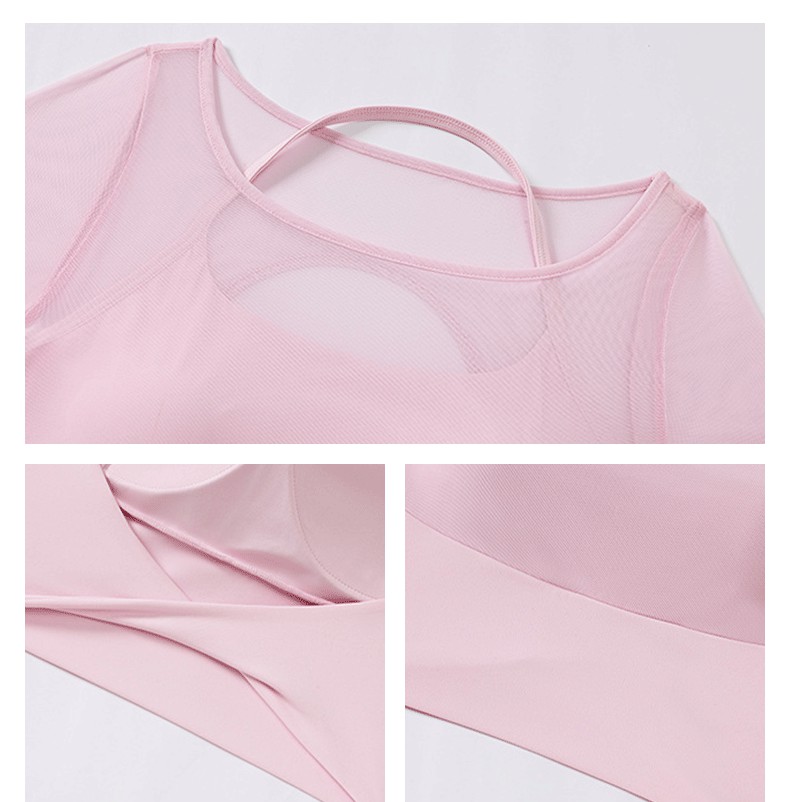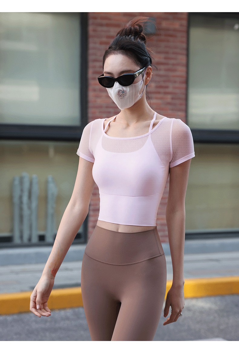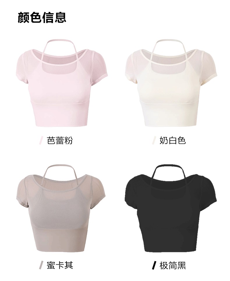 Beemen网纱拼接假俩件瑜伽服 显瘦露背挂脖网纱瑜伽服 固定一体杯透气速干 普拉提瑜伽日常